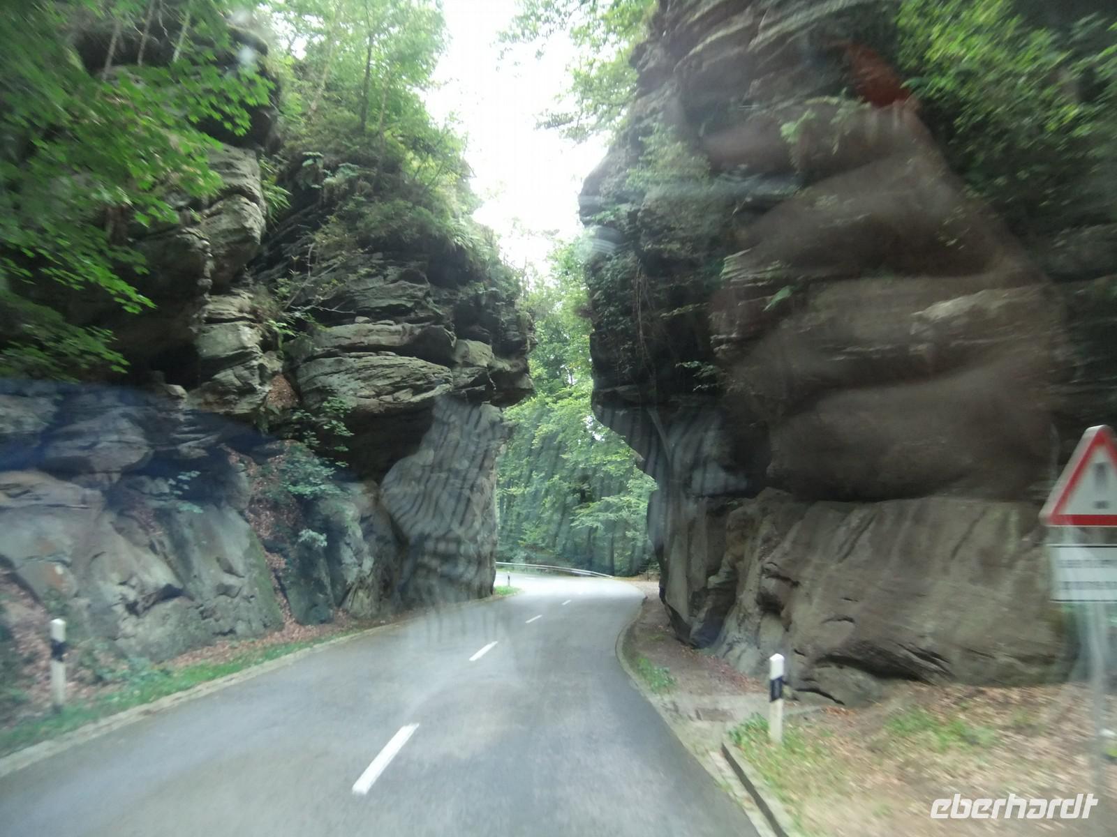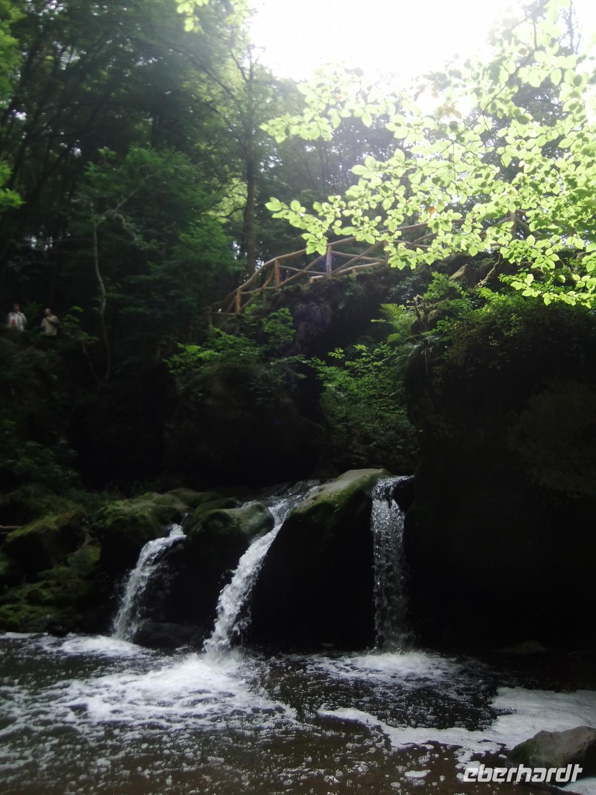 Sie erinnert sehr an die viel größere Sächsisch-Böhmische Schweiz und ist ein wahres Wanderparadies. Wir nutzen die Gelegenheit für einen einstündigen Spaziergang auf einem gut ausgebauten Wanderweg. Höhepunkt ist der Schiessentümpel, ein dreiteiliger kleiner Wasserfall unter einer uralten steinernen Brücke.