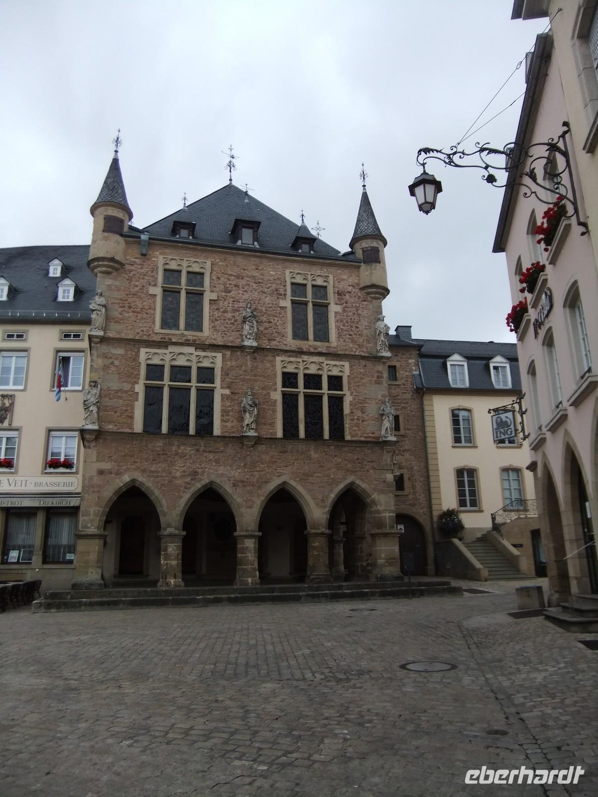 Es gibt in Echternach noch viel zu entdecken, das Touristenbüro liefert ein Faltblatt mit einem empfohlenen Rundgang. Teile der Stadtmauer und der Türme sind erhalten, die Kirche einer zweiten Abtei, ein Gerichtshaus aus dem 13.Jhdt. (Denzelt am Markt) und schöne Parkanlagen. Auch die Geschäfte locken, aber sie schließen leider 12 Uhr.