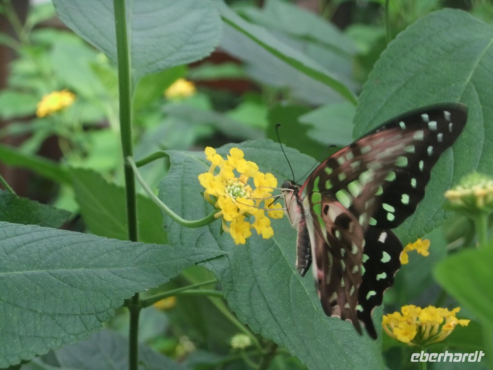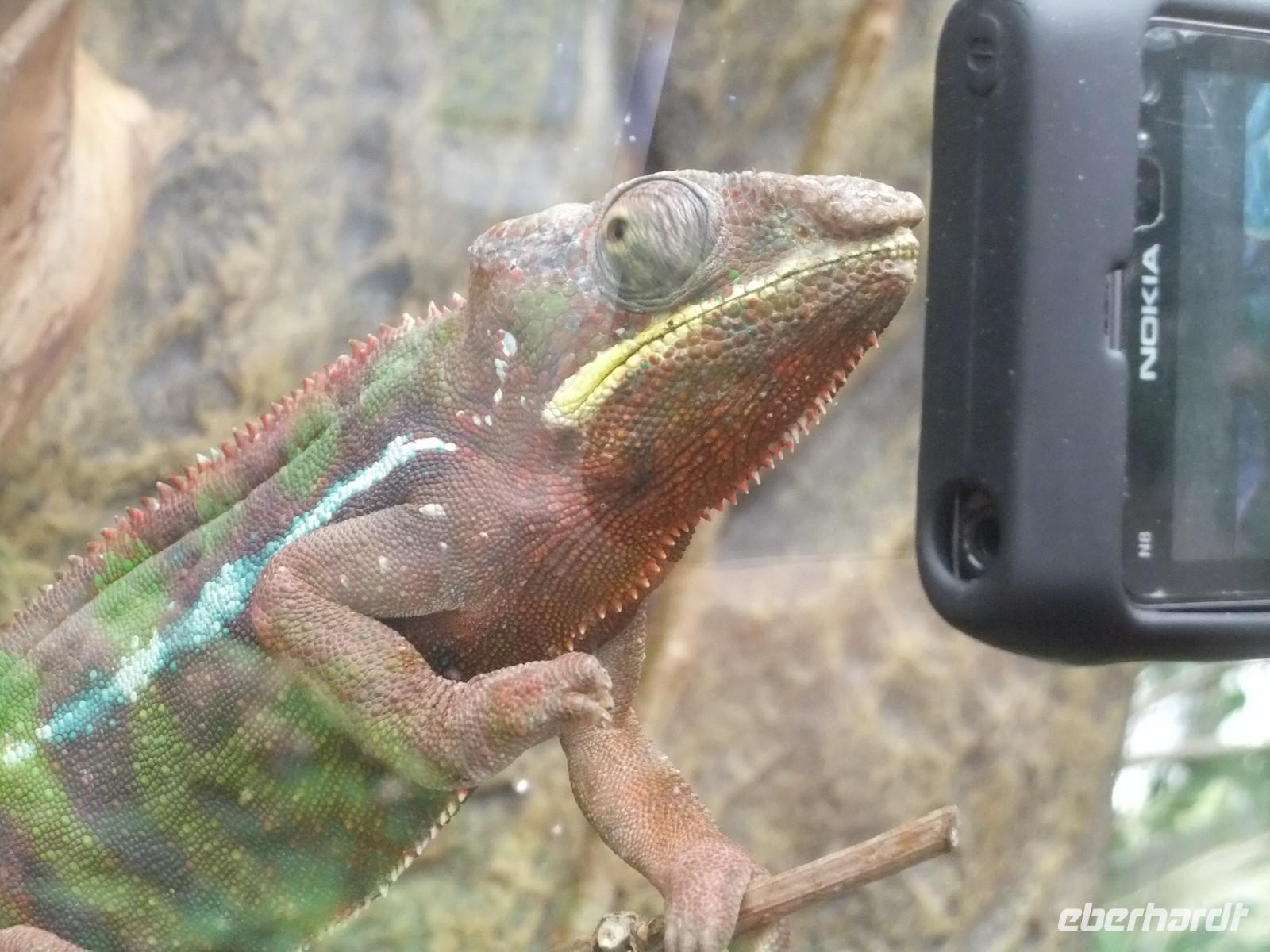 Nach Our und Sauer geht es heute zum 3. Grenzfluss mit Deutschland. Es ist die Mosel, die Musel oder die Moselle. Das kleine Land hat offiziell 3 Sprachen, Man redet luxemburgisch, liest deutschsprachige Zeitungen und blättert in französischsprachigen Gesetzen. Jedes Kind wächst mit den 3 Sprachen auf, sicher aber ein großes Problem für die vielen Ausländer (43 %), die vor allem zu einem Drittel aus Portugal gekommen sind. Die 42 km lange Moselstrecke ist eine alte Weinkulturlandschaft. Bei einem renommierten Unternehmen verkosten wir den vorzüglichen Schaumwein (der sich nicht „Champagner" oder „hergestellt nach der Champagner-Methode" nennen darf). Dafür ist er auch wesentlich preiswerter. Ein kleiner Spaziergang entlang der Mosel führt uns zum Jardin des Papillons, einem kleinen Bau mit tropischen Pflanzen und tropischer Hitze. Überall schwirren große, bunte Schmetterlinge herum, lassen sich auf Blüten nieder und falten gerade in dem Moment, wenn man den Auslöseknopf des Fotoapparates drückt, ihre Flügel zusammen. Ein Chamäleon schaut in seinem Glaskasten gelassen zu. Heuschrecken haben sich in Farbe und Gestalt so der Umgebung angepasst, dass man sie erst auf den zweiten Blick erkennt. Ein Falter benutzt die Gelegenheit, um am Hosenbein eines Gastes in die Freiheit zu fliehen. Er wird wieder zu seinen Kollegen zurückgebracht.