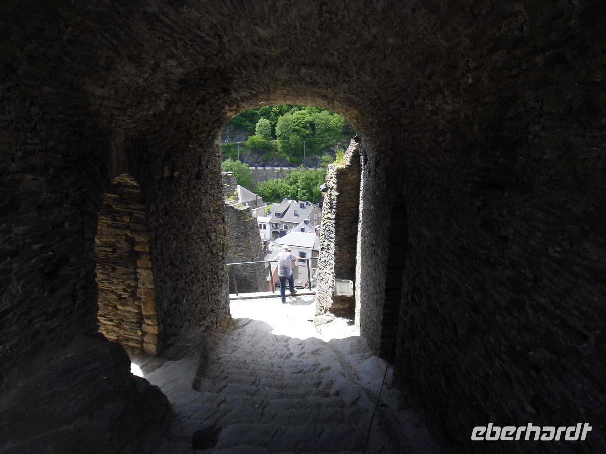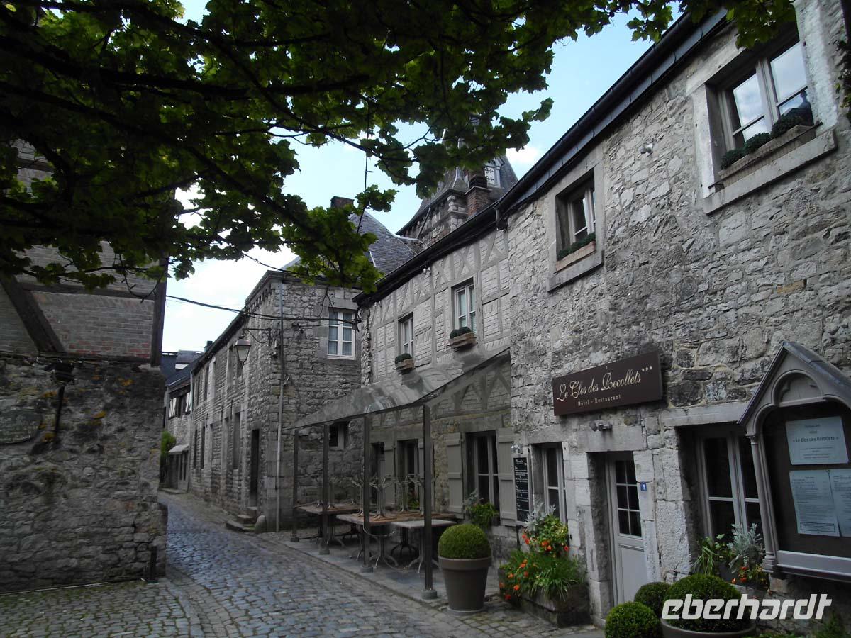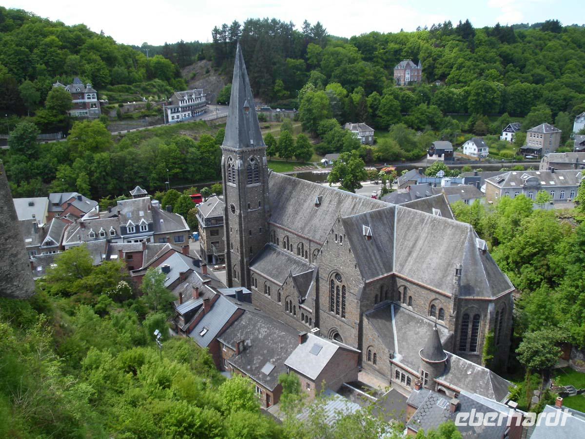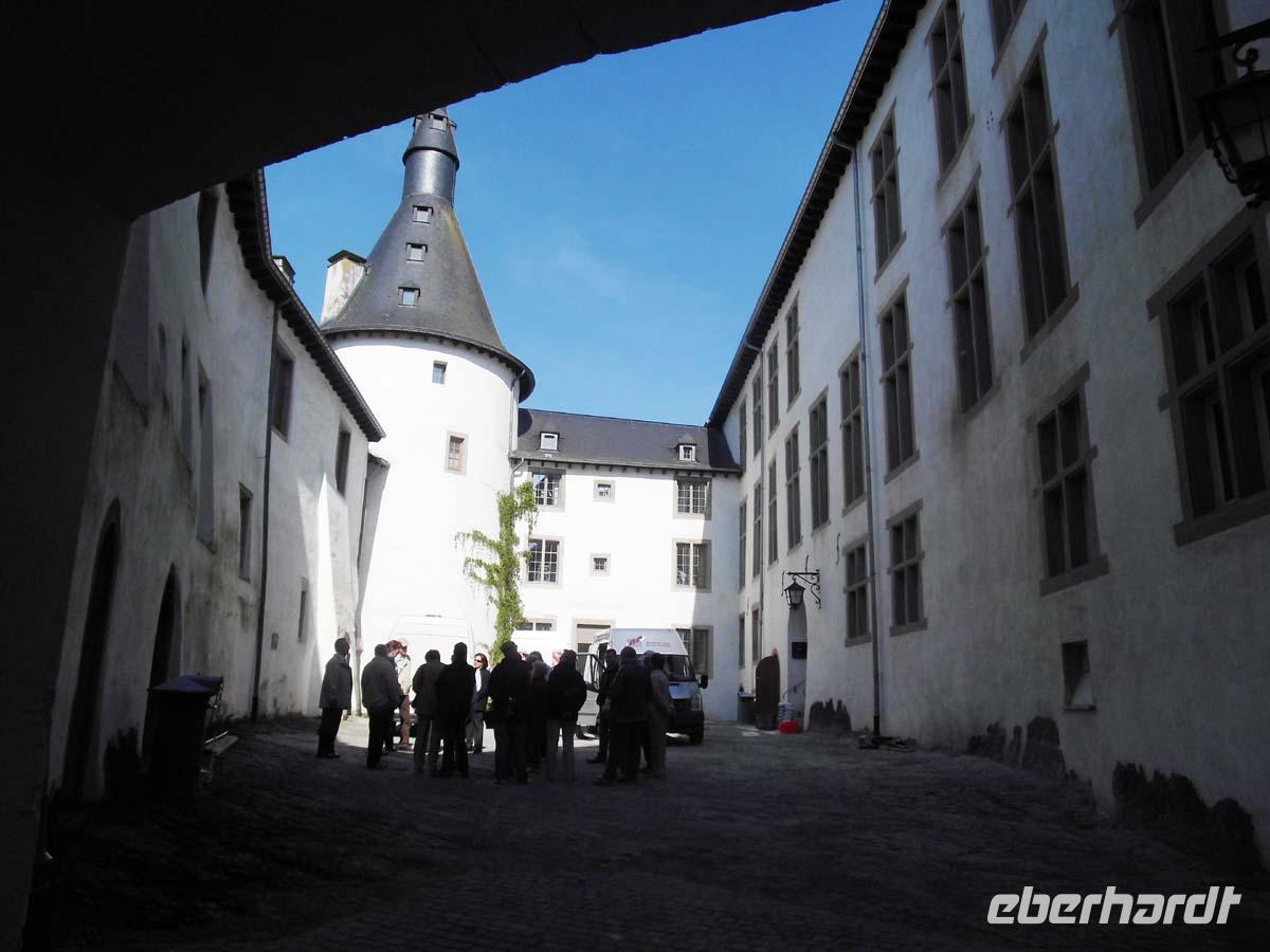 Am Vormittag lernen wir unser winziges Städtchen besser kennen. Unsere Gästeführerin vermittelt uns den Eindruck: Klein aber fein. Mit nur 1900 Einwohnern liegt es inmitten der tiefen Ardennenwälder. Das hell getünchte mittelalterliche Schloss und die Pfarrkirche überragen weit die kleinen Häuser. Wir erklimmen einen der Berge zwecks Besuch der dort angesiedelten Benediktinerabtei.