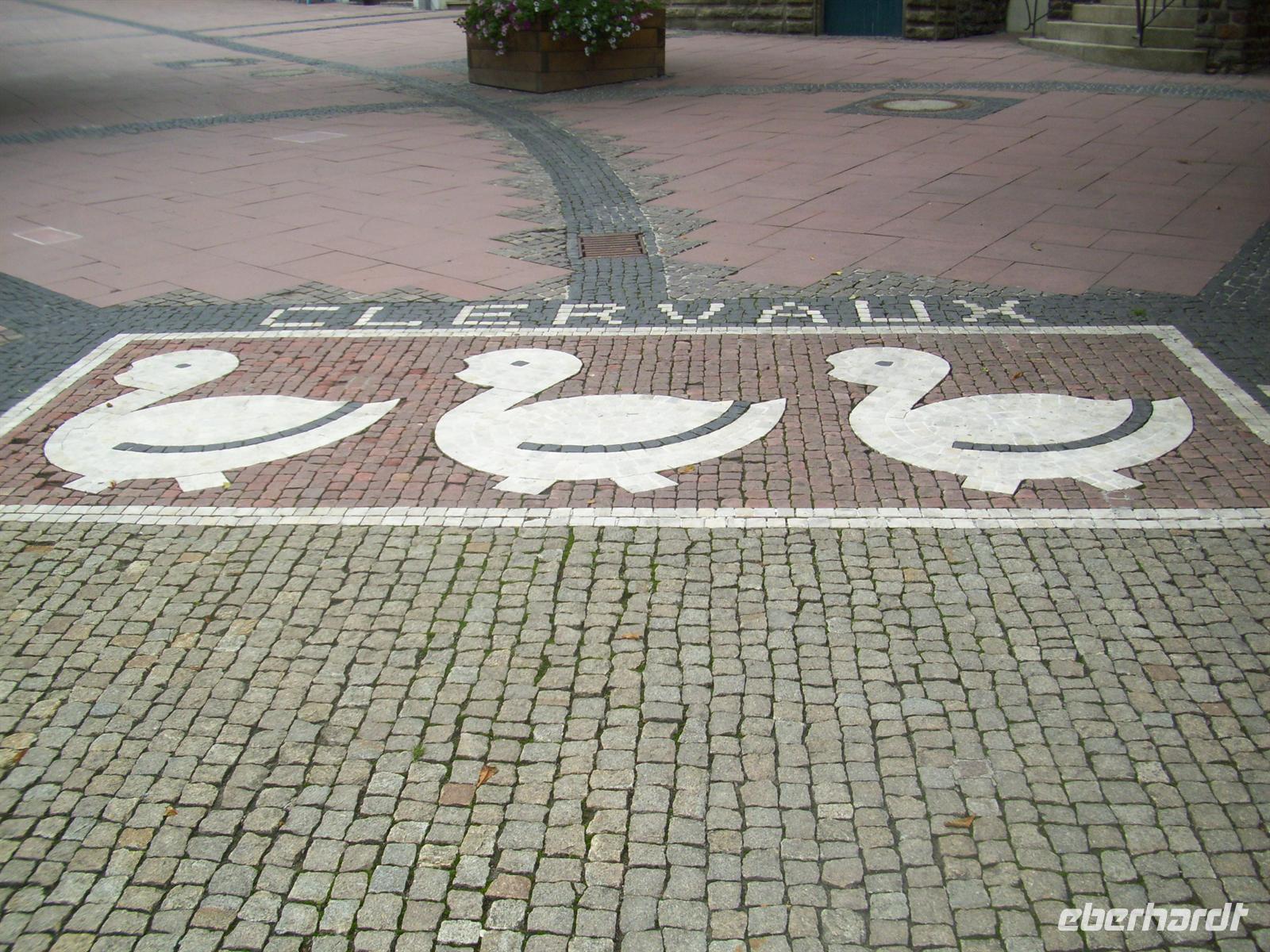 Den nächsten Tag starteten wir mit einem Stadtrundgang in Clervaux. Unser Führer Jean zeigte uns die Stadt und erklärte alles ausführlich. Zunächst sahen wir das Stadtwappen als Mosaik auf dem Boden - warum die Vögel keine Schnäbel hatten, wird uns auf ewig ein Mysterium bleiben…Wir besichtigten auch die Kirche der Stadt. Auf Nachfrage