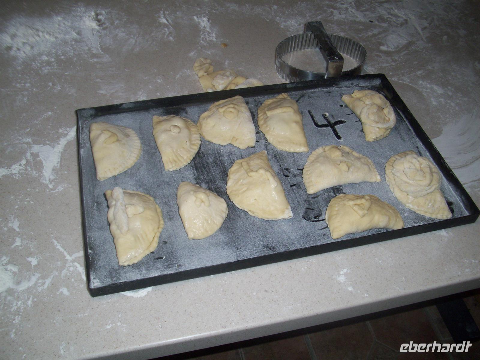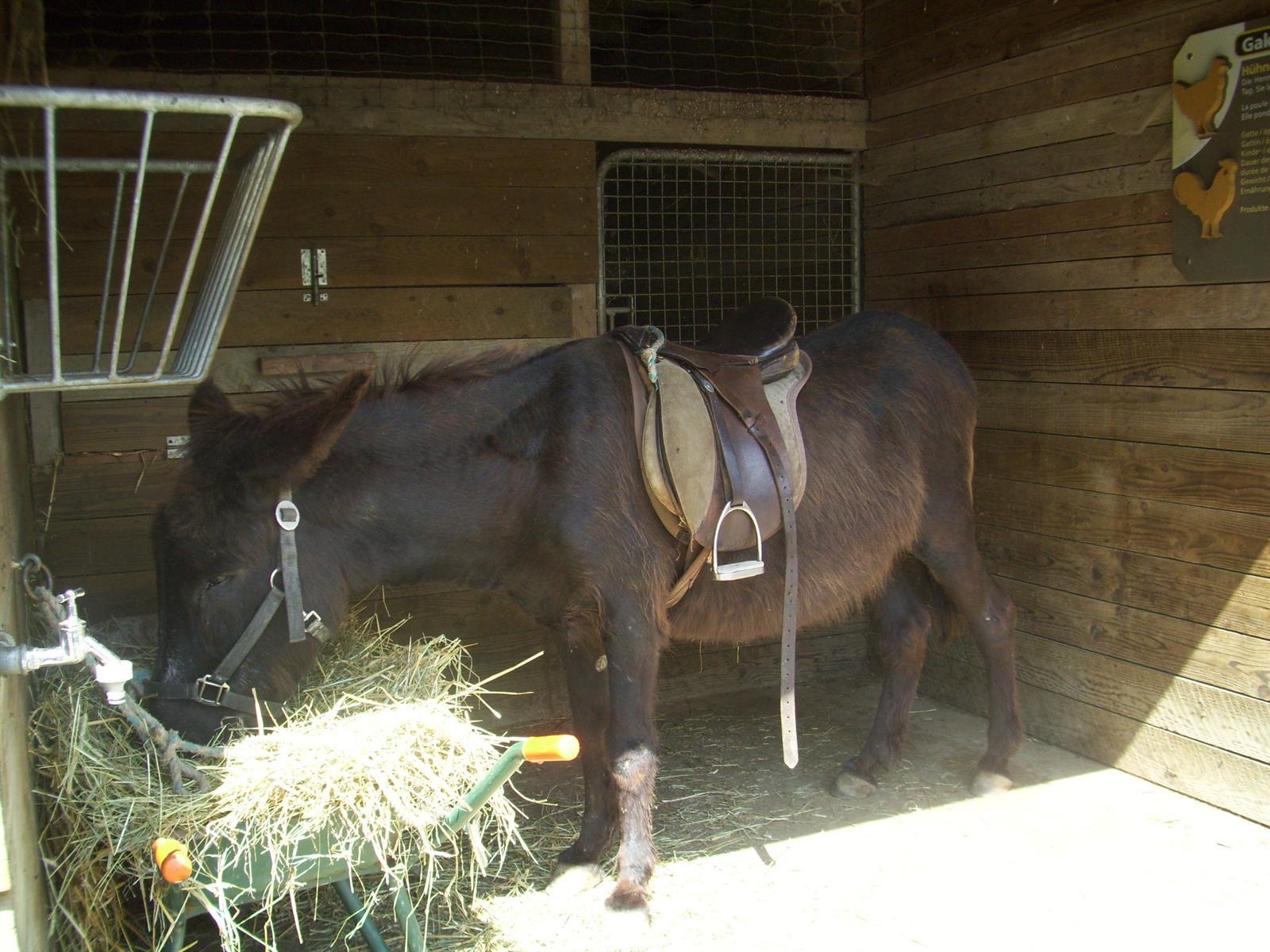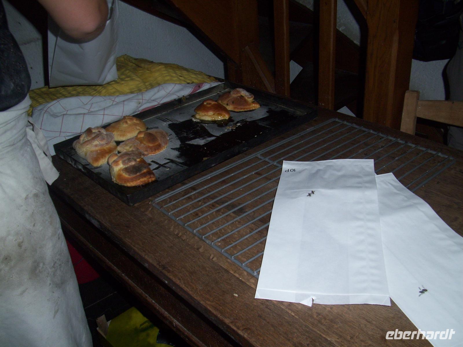 Drei-Gänge-Menü auftischen - Blumenkohlsuppe, Hähnchenschenkel mit diversen Beilagen und Pfirsichen als Dessert - und rollten danach wohlgenährt aus dem Restaurant. Wir ahnten schon, dass trotz einer Woche Wandern wohl kein Pfund purzeln würde…Denn der nächste Stopp in Robbesscheier war die Backstube, in der wir selber Apfeltaschen backten, eigentlich keine große Kunst. Nur Hefeteig ausrollen, Apfelstückchen darauf verteilen, Marmelade oben drauf und das Ganze dann zusammenkleben, und rein in den Ofen. Aber Spaß machte es uns allemal! Auf einer Pferdekutschfahrt konnten wir dann das Ganze Areal des Gutes erblicken. Das, was mir wohl am besten in Erinnerung bleiben wird, war eine Stute, ein Pony, mit ihrem Fohlen. Nach der Kutschtour zeigte uns die etwas außergewöhnliche Gärtnerin von Robbesscheier ihr Gewächshaus mit angrenzenden Garten. Oftmals wusste sie selber nicht genau, welches Kraut da munter im Garten wucherte, da sie nur außergewöhnliche Pflanzen gesät hatte und die Schilder durcheinandergeraten waren. Also wurde die Führung zu einem Ratespiel, in das alle mit einbezogen wurden und das uns besonders Spaß machte ;-) Nach einem Besuch des Shops des Gutes ging es dann weiter auf unsere zweite und letzte Etappe des Tages. Von Munshausen nach Clervaux waren es auf der "abgespeckten" Variante (O-Ton unseres Wanderreiseleiters Dieter) nur eine Stunde. In Clervaux angekommen setzten wir uns in die Sonne und ließen uns unsere Apfeltaschen schmecken, eine schöne Belohnung und gelungener Abschluss eines regnerischen aber sonnigen, anstrengenden, aber wunderbaren Tages.