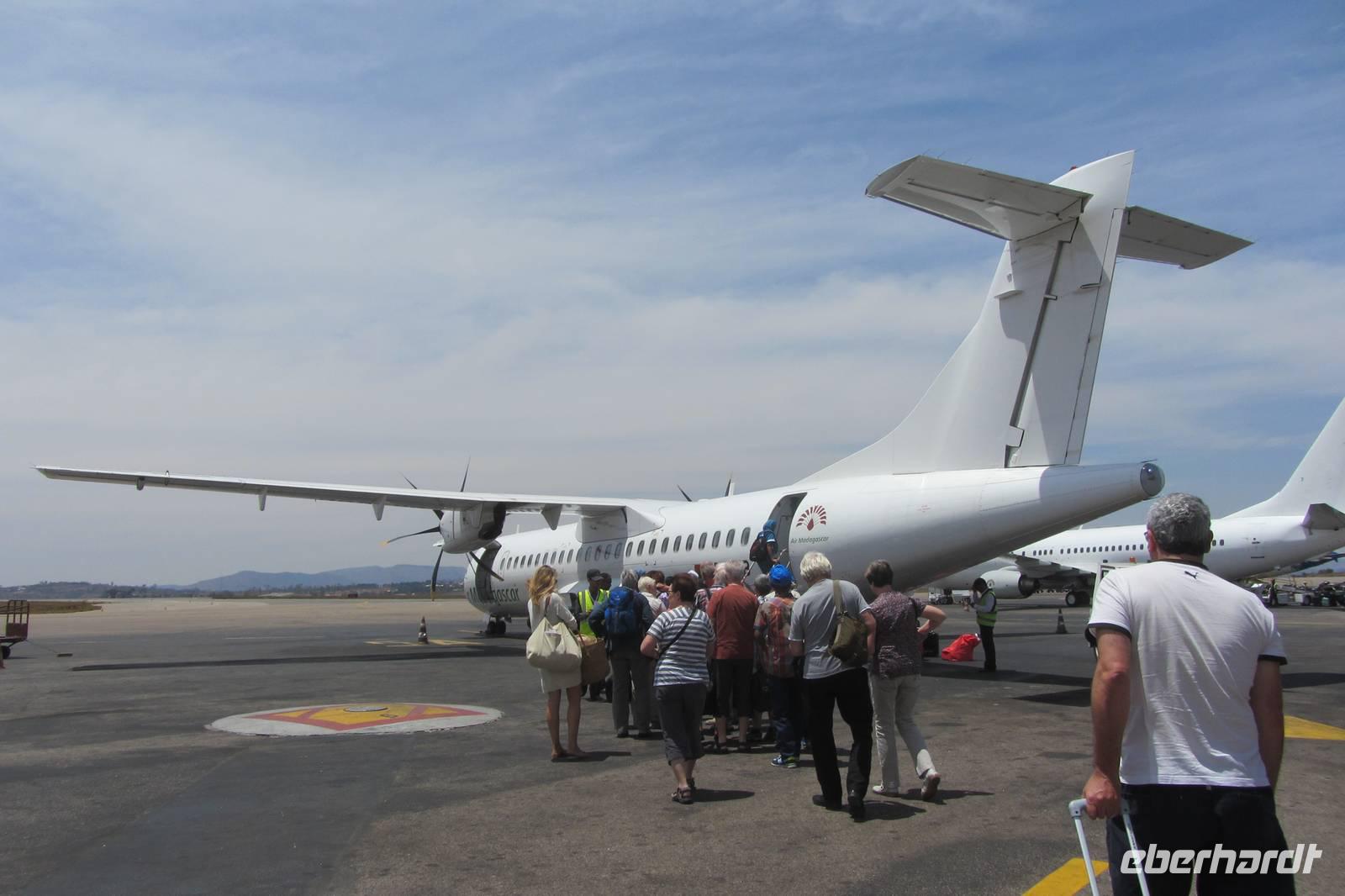 Mitten in der Nacht beginnt unser Abenteuer Madagaskar. Wir treffen uns alle gemeinsam am Abflughafen Berlin Tegel. Gegen 5 Uhr sind alle Reisenden eingetroffen und wir stärken uns bei einem gemeinsamen Frühstück. Beim Check-In benötigen wir etwas Geduld, aber das Flugzeug hebt pünktlich nach Paris ab. Hier geht die Reise weiter nach Antananarivo. Der Flug ist ruhig und wir freuen uns auf Madagaskar. Es ist ein Flug am Tage, so dass man einige interessante Aussichten im Nahen Osten genießen kann. Kurz vor Mitternacht erreichen wir unser Ziel und lernen nun, was „mora mora" bedeutet - „langsam langsam". Wir müssen etwas Geduld aufbringen bis die Passkontrolle erfolgt ist und wir endlich unsere Koffer haben