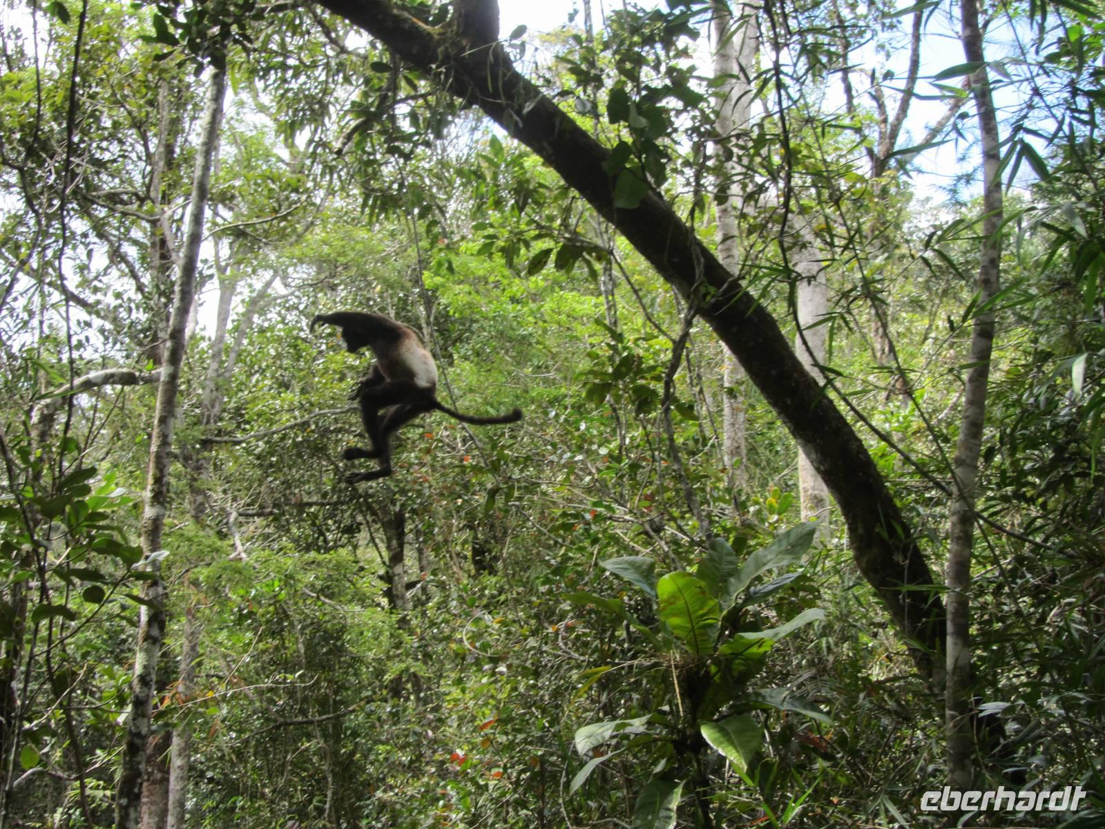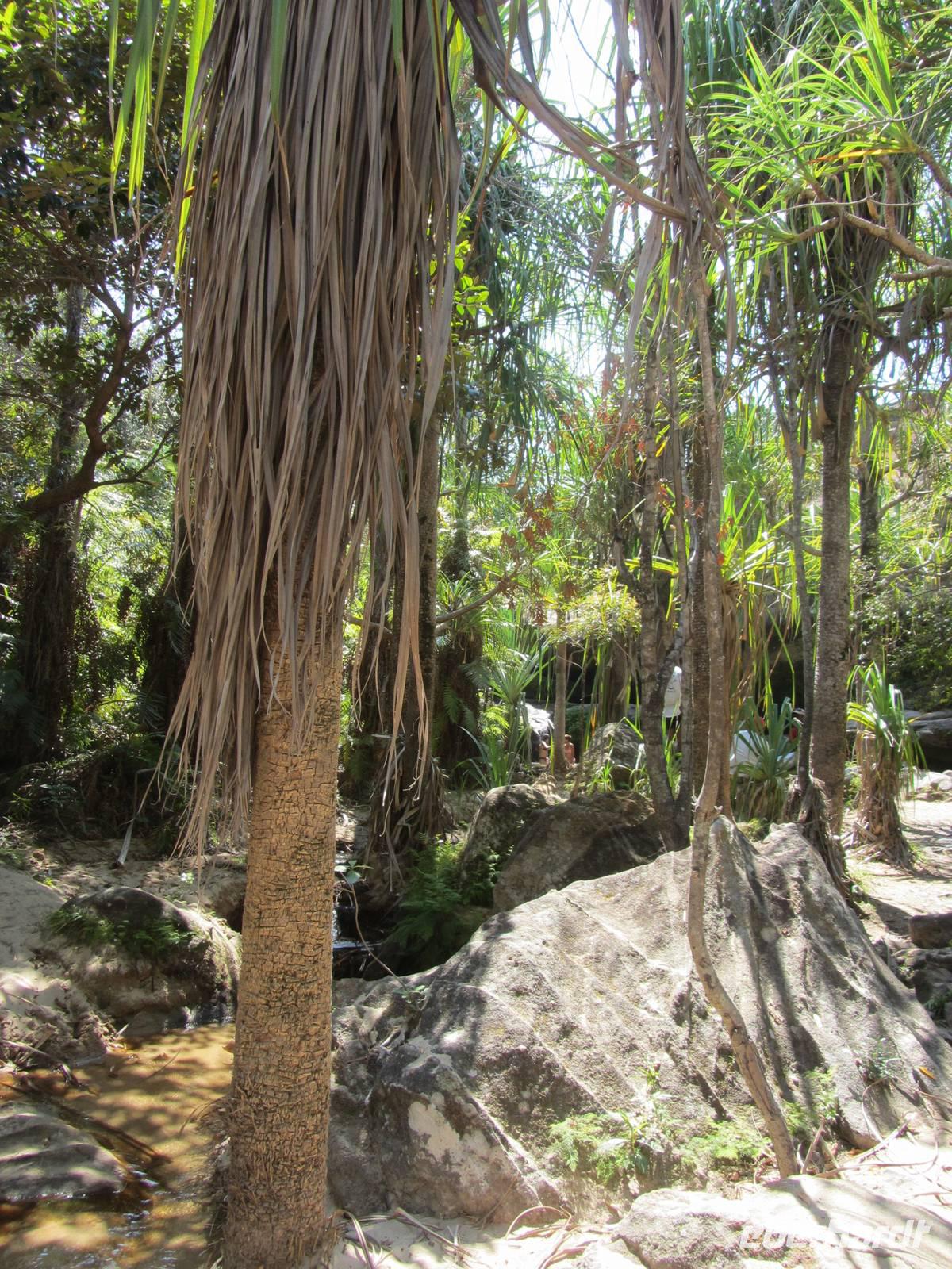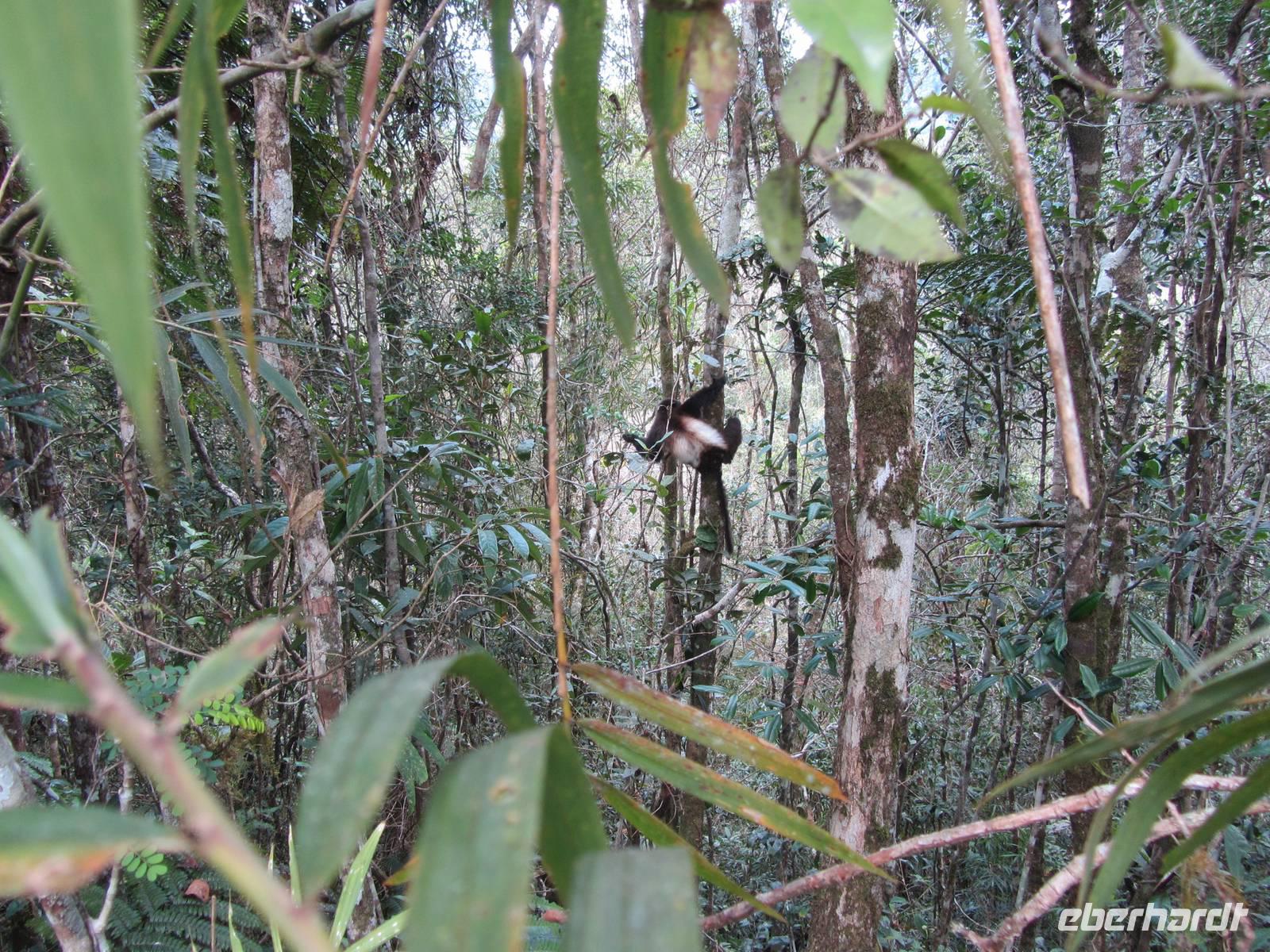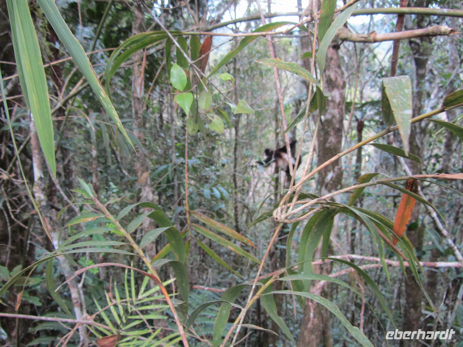 Im Nationalpark angekommen, treffen wir unsere einheimischen Führer und machen uns auf den Weg zu unserer 3-stündigen Wanderung durch den am Namorona-Fluss gelegenen ca 40000 Hektar großen Nationalpark. Wir bestaunen die einzigartige Flora und Fauna. Unsere Führer zeigen und erklären und die Pflanzen und haben ein Auge für jeden Vogel und jedes Chamäleon.Es dauert nicht lange und es kehrt Unruhe ein. Wir nehmen einen anderen Weg als geplant mitten durch den Regenwald über Stock und Stein und dann haben wir wieder großes Glück, denn die Führer haben Lemuren entdeckt. So sehen wir hoch in den Bäumen die erst 1986 entdeckten Goldenen Bambuslemuren. Wir folgen den Lemuren ein Stück und sie lassen sich nicht stören und springen munter von Ast zu Ast - ein tolles Erlebnis. Weiter geht es zu einem schönen Aussichtpunkt über den Regenwald. Unser Reiseleiter Jocelyn trägt uns ein Gedicht vor: