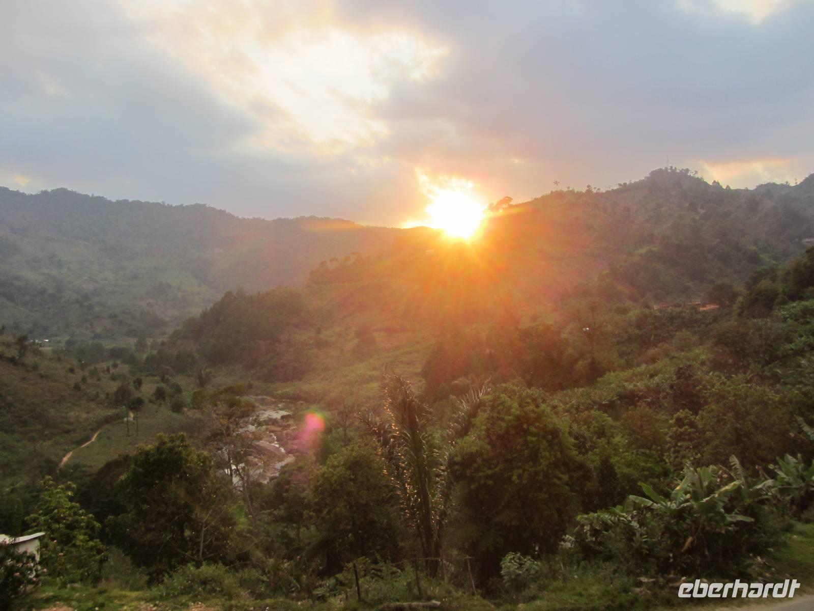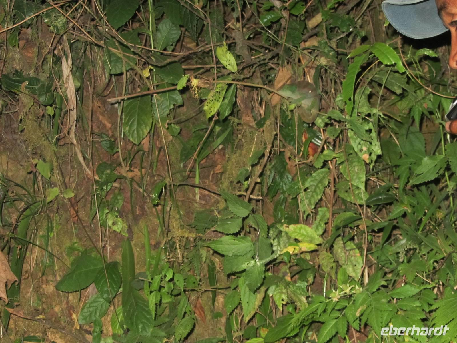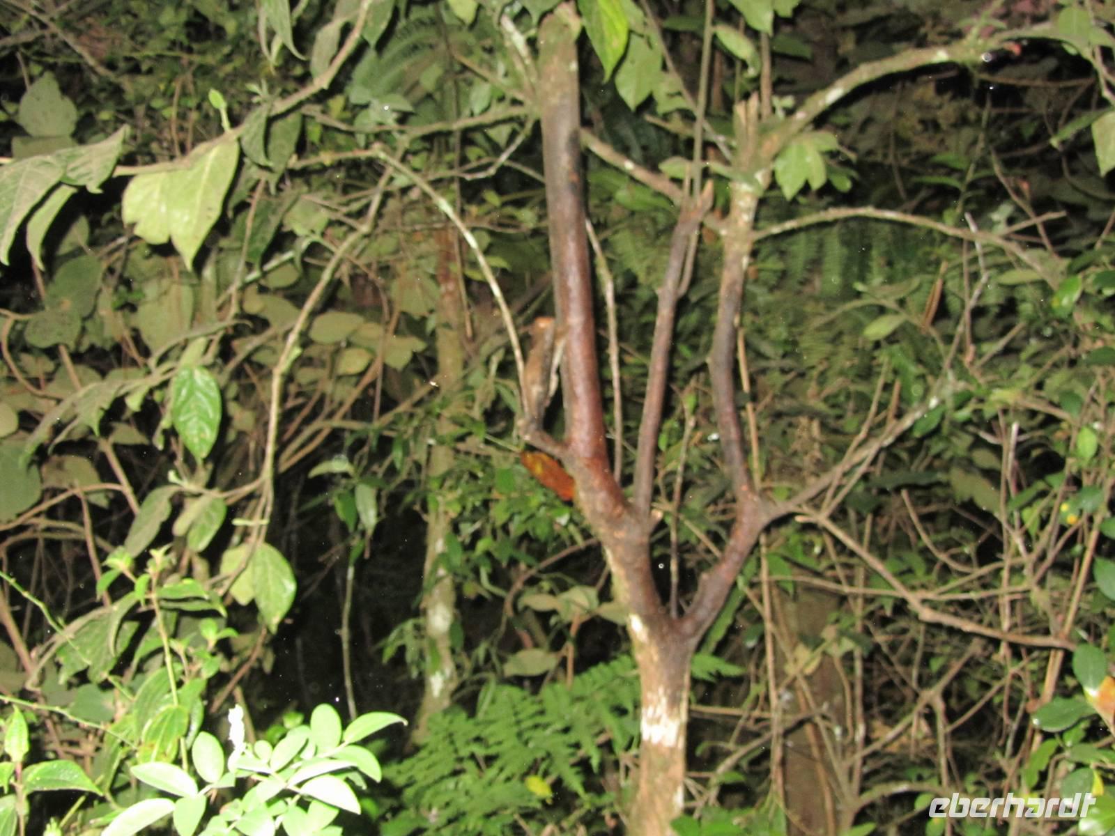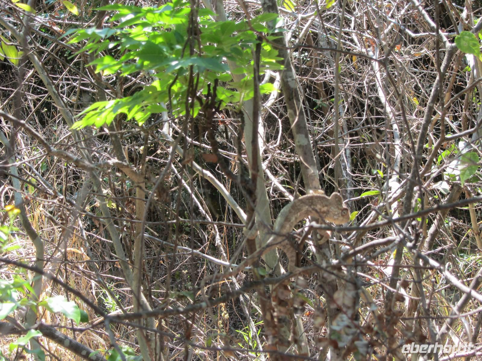 Nach unserer Wanderung fahren wir in das Dorf Ranomafana. Wir speisen in einem bekannten einheimischen Restaurant, wo viele von uns auch das typisch madagassische Gericht Ramazava probieren, was uns gut schmeckt. Anschließend laufen wir durch das Dorf und bekommen einen Einblick in das alltägliche Leben. Auch ein paar Geschäfte sehen wir, wo einige einheimische Souvenirs, Obst und Gewürze angeboten werden. Wir nutzen noch die Chance, eine kleine Weberei zu besuchen. Danach beziehen wir unser Hotel mit kleinen Bungalows direkt am Hang mit herrlichem Blick auf den Nationalpark. Nach einer Pause geht es noch einmal auf Tier-Suche, denn wir unternehmen einen Ausflug bei Nacht. Leider ist es verboten, im Dunkeln direkt in den Nationalpark zu gehen. Wir fahren zu einem Punkt an der Straße, wo die Maus-Maki sich bei Dämmerung sehen lassen sollen. Nach kurzem Warten haben wir Glück, denn die kleinen niedlichen Tierchen sitzen in den Bäumen und wir können sie gut beobachten. Danach begeben wir uns noch auf die Suche nach Fröschen und Chamäleons und dank unserer Führer haben wir auch hier Glück und können einige aus nächster Nähe beobachten.