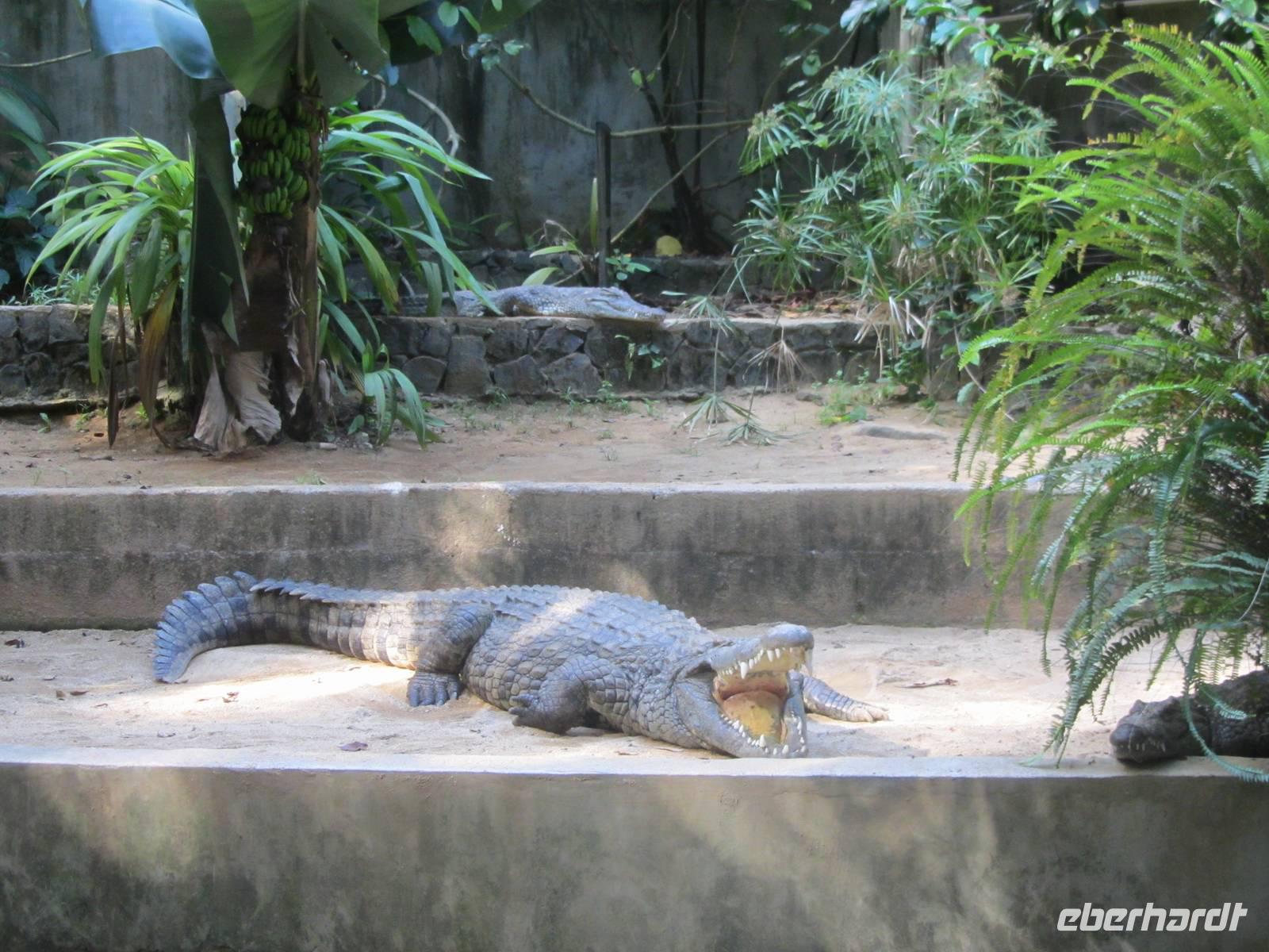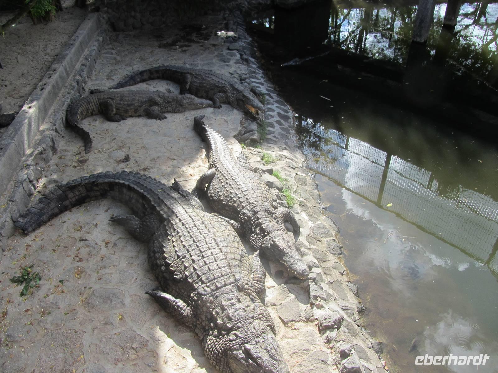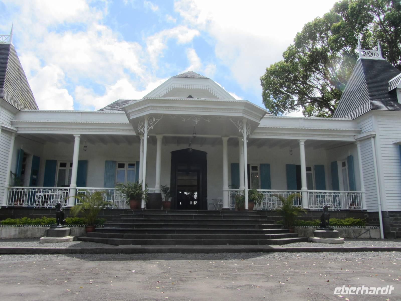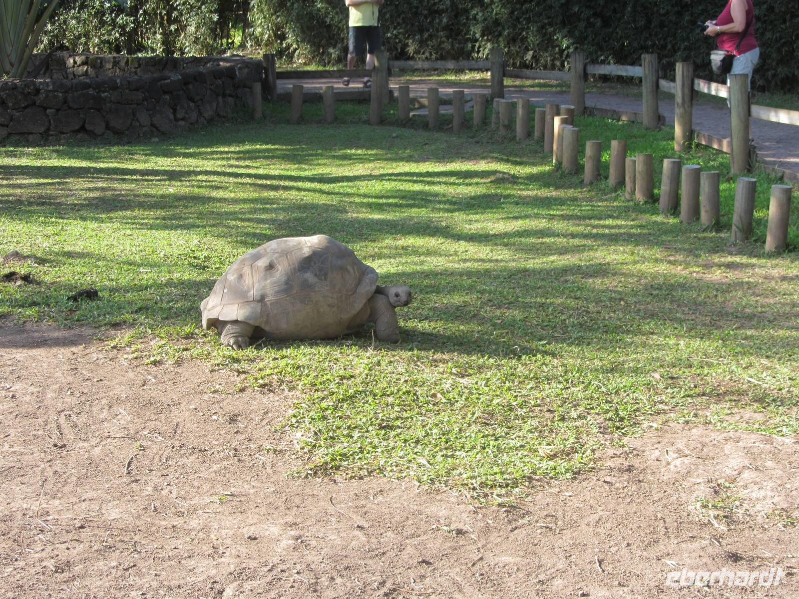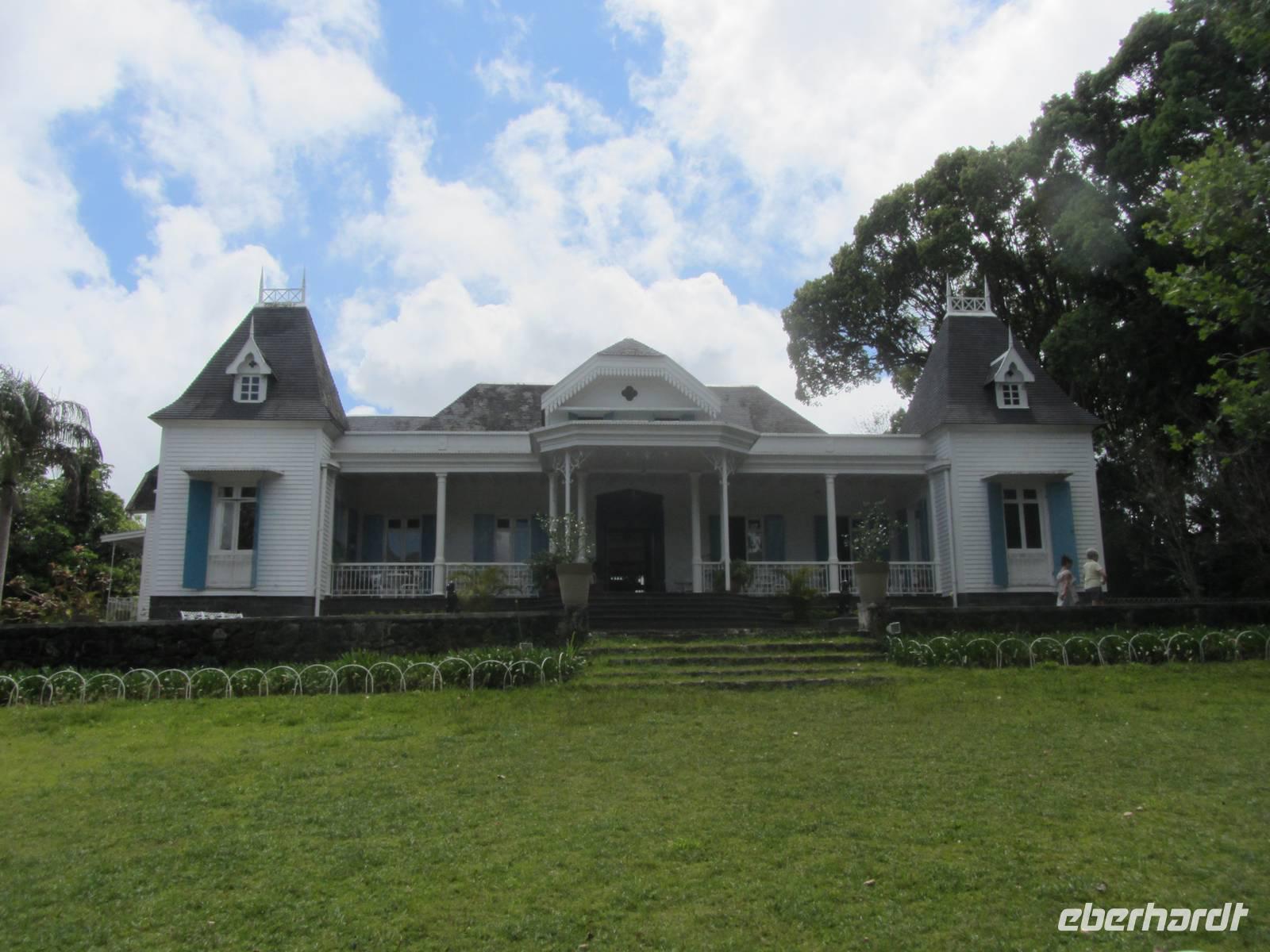Am Morgen geht die Fahrt ins Inland Richtung Norden. Wir besichtigen das Herrenhaus Domaine des Aubieneaux. Die gehört heute noch einer Familie, die regelmäßig Familientreffen auf diesem Anwesen durchführen. Zum Besitz gehört ein großer sehr liebevoll angelegter Garten. Im benachbarten Teehaus verkosten wir verschiedene Teesorten. Den Besitzern gehört auch die Teefabrik "Bois Cherié", die wir danach besuchen. Der Ablauf der Herstellung und die Abpackmaschinen sind sehr interessant. Das Mittagessen nehmen wir im stilvollen Kolonialhaus in St. Aubin ein. Am Nachmittag fahren wir noch in den Park La Vanille Réserve des Mascareignes-Park. Dort sehen wir die Riesen-Schildkröte. In einem großen Gehege liegen zahlreiche Schildkröten, einige füttern wir mit Blättern, mit einigen machen wir wunderschöne Erinnerungs-Fotos. In dem Park gibt es auch viele Krokodile und andere Tiere. Wir unternehmen einen Spaziergang durch die Anlage, die herrlich in den Regenwald eingebettet ist. Zurück im Hotel nehmen wir unser Abendessen ein und genehmigen uns den einen oder anderen Cocktail.