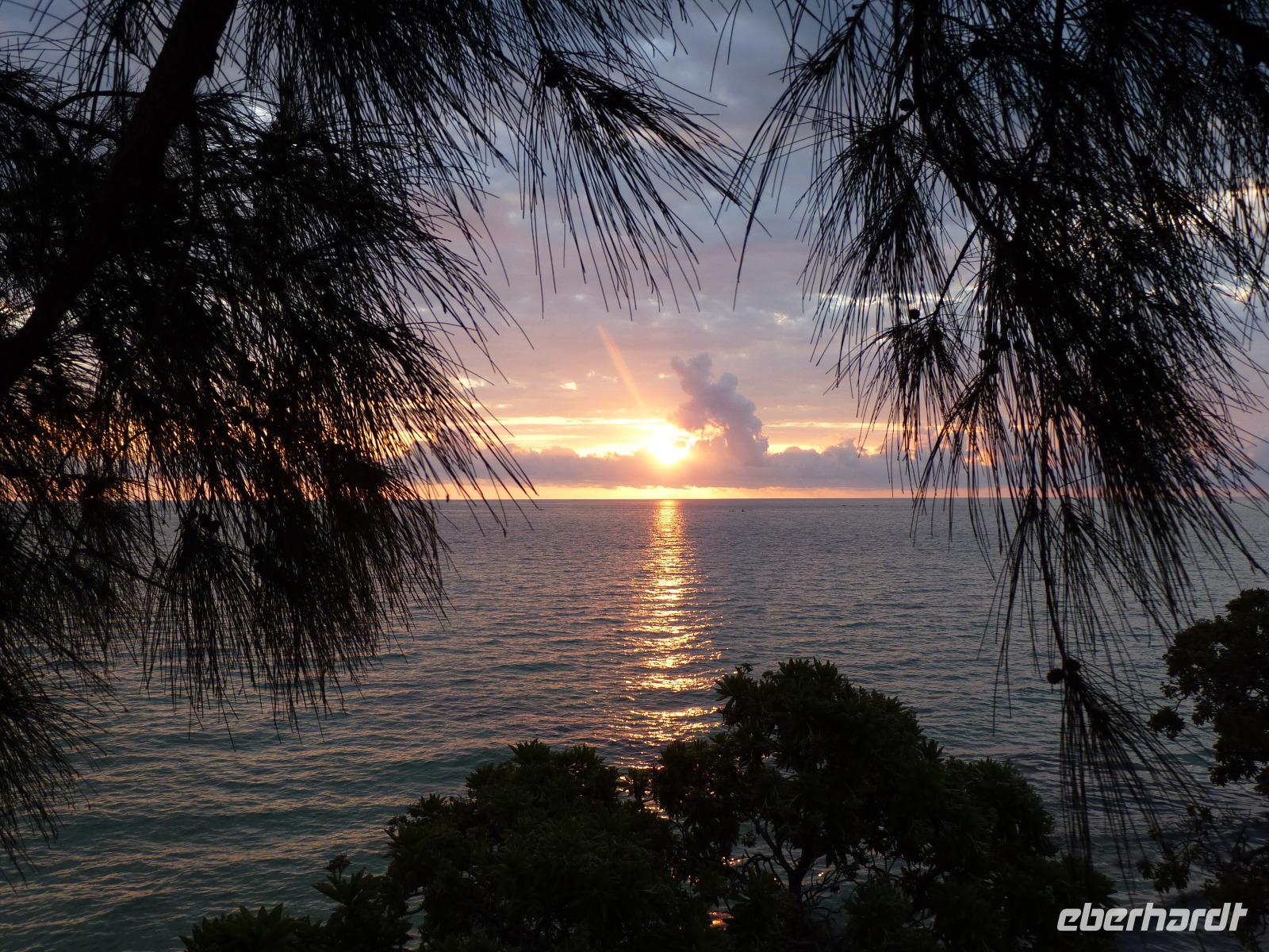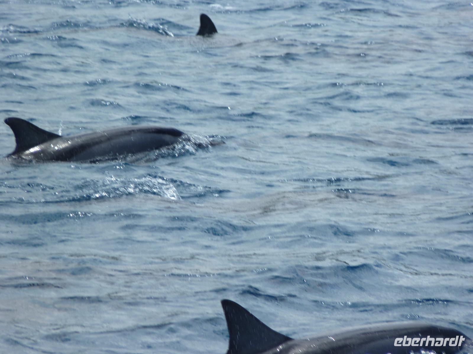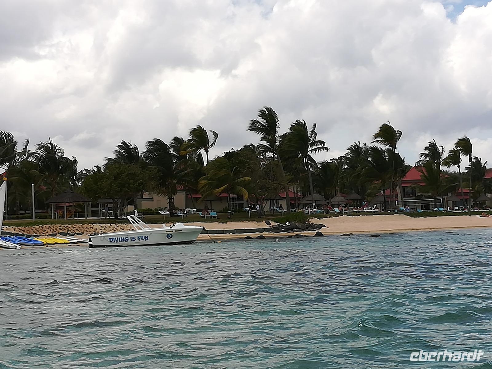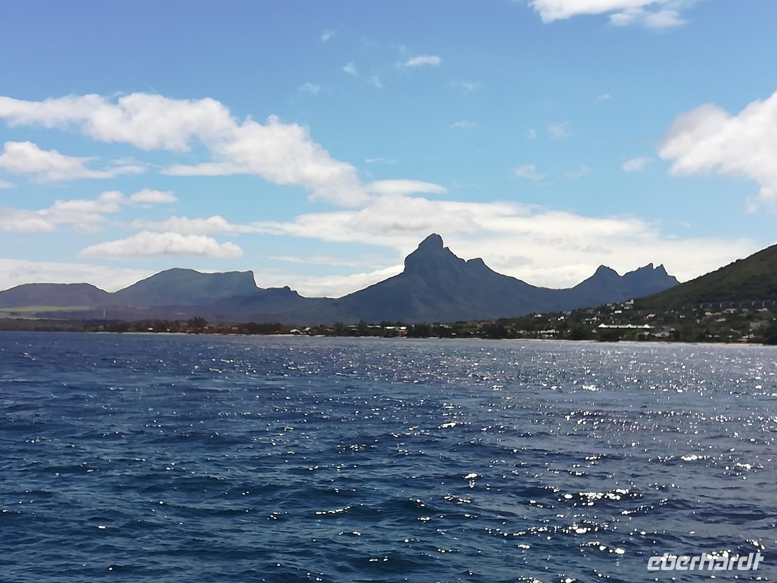 Dieser Tag sollte ganz entspannt werden, stand uns doch eine Katamaran-Fahrt auf dem Indischen Ozean bevor. Wind war ausreichend vorhanden, die Wellen nicht allzu hoch und die Sonne schien auch, also alles vorhanden für eine schöne Segeltour. Wir hatten auch noch Glück und den Katamaran ganz allein für unsere Gruppe. Unser erstes Ziel war es Delphine zu sehen. Unsere 3-köpfige Besatzung wusste, wohin sie steuern musste und so konnten wir eine Gruppe von vielleicht 10-20 Tieren beobachten. Im weiteren Verlauf unseres Törn hatten wir dann die Gelegenheit, bei mehreren Schnorchelausflügen die Unterwasserwelt vor der Küste kennen zu lernen. Da wir auch ausreichend mit Essen und Getränken versorgt wurden, war dieser Segelausflug ein sehr schöner Abschluss unserer Ausflüge auf Mauritius.