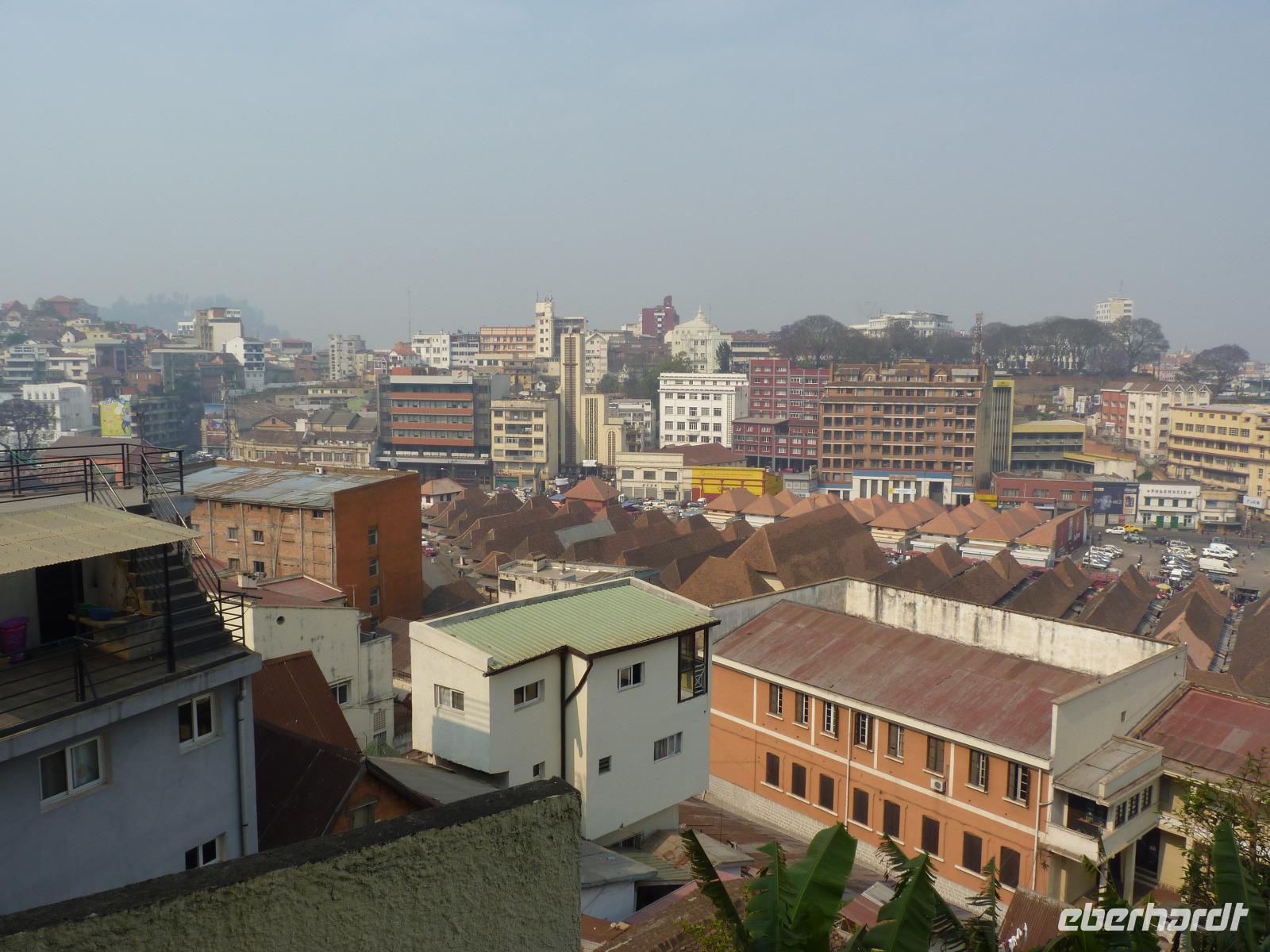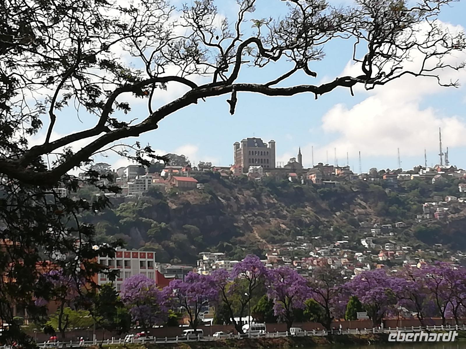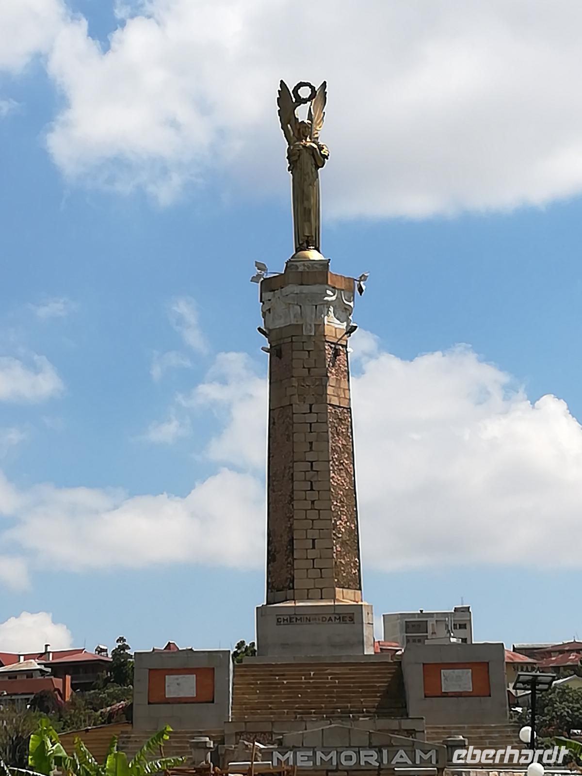 Zurück in der Stadt nutzten wir die Möglichkeit eines kleinen Marktes für einen Souvenireinkauf, um anschließend zu einem Aussichtspunkt hoch über der Stadt zu fahren. Zu Fuß ging es dann weiter zum Rova von Antananarivo, dem ehemaligen Königspalast Madegaskars und vorbei am Palast des Primeministers und späteren Ehemannes der damaligen Königin Ranavalona I. Mit dem Bus fuhren wir dann zu dem mitten in der Stadt liegenden Anosy-See mit seinem Engel-Denkmal. Dieses erinnert an die im 1.Weltkrieg gefallenen madegassischen Soldaten, die an der Seite Frankreichs kämpfen mussten.