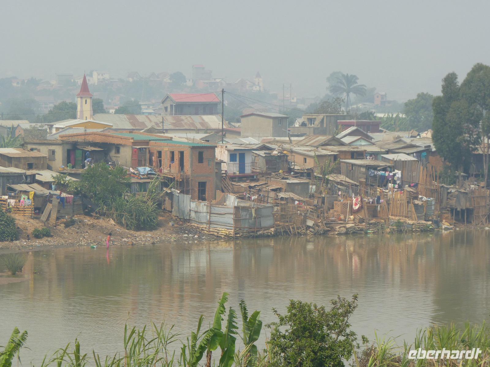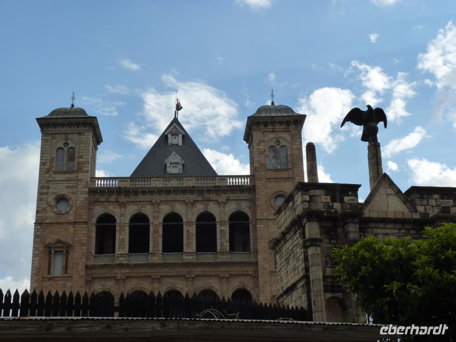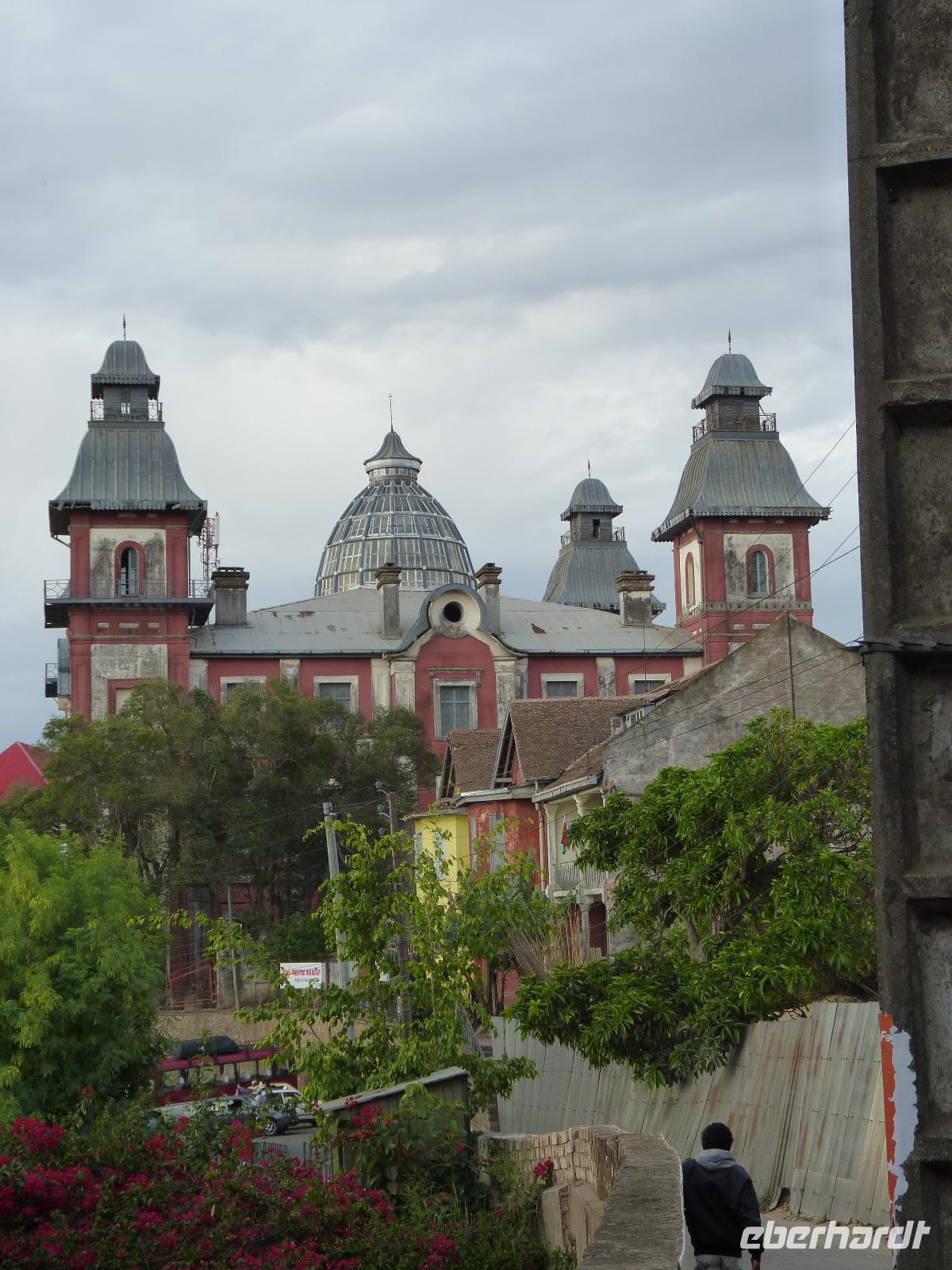 Zurück in der Stadt nutzten wir die Möglichkeit eines kleinen Marktes für einen Souvenireinkauf, um anschließend zu einem Aussichtspunkt hoch über der Stadt zu fahren. Zu Fuß ging es dann weiter zum Rova von Antananarivo, dem ehemaligen Königspalast Madegaskars und vorbei am Palast des Primeministers und späteren Ehemannes der damaligen Königin Ranavalona I. Mit dem Bus fuhren wir dann zu dem mitten in der Stadt liegenden Anosy-See mit seinem Engel-Denkmal. Dieses erinnert an die im 1.Weltkrieg gefallenen madegassischen Soldaten, die an der Seite Frankreichs kämpfen mussten.