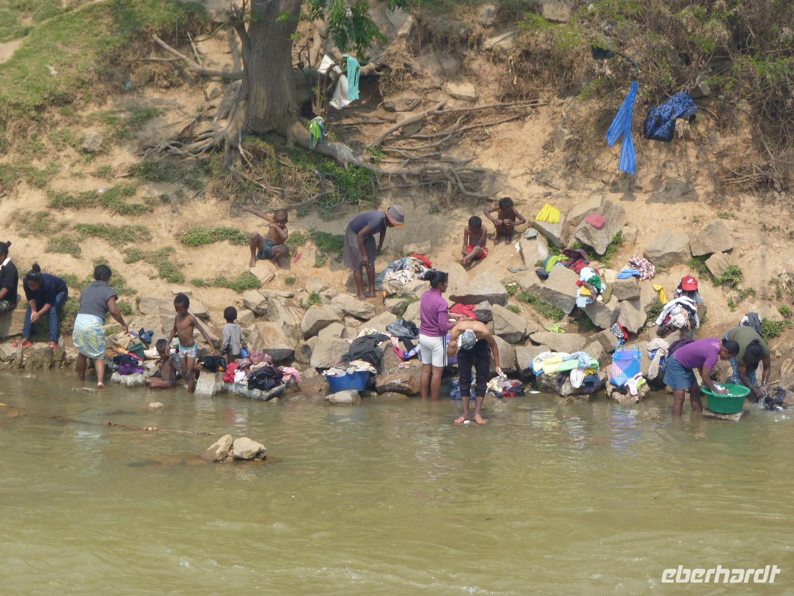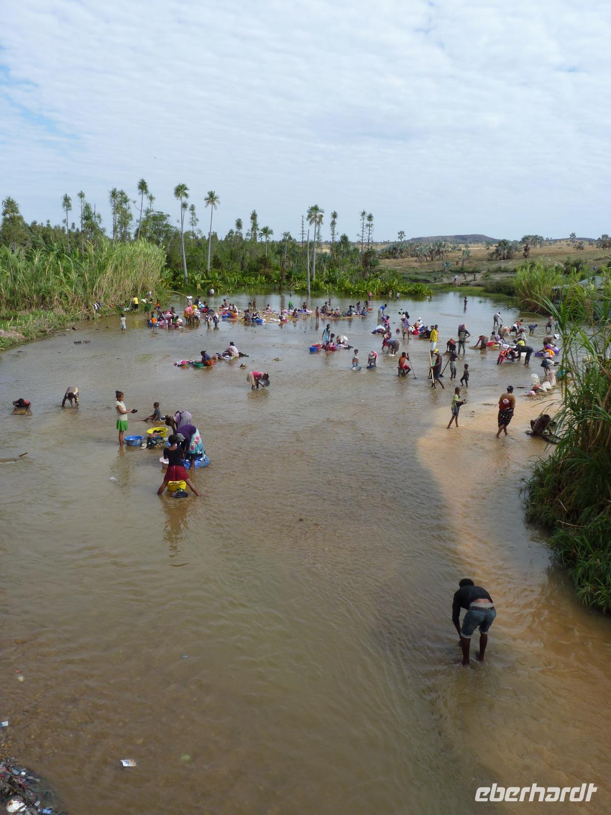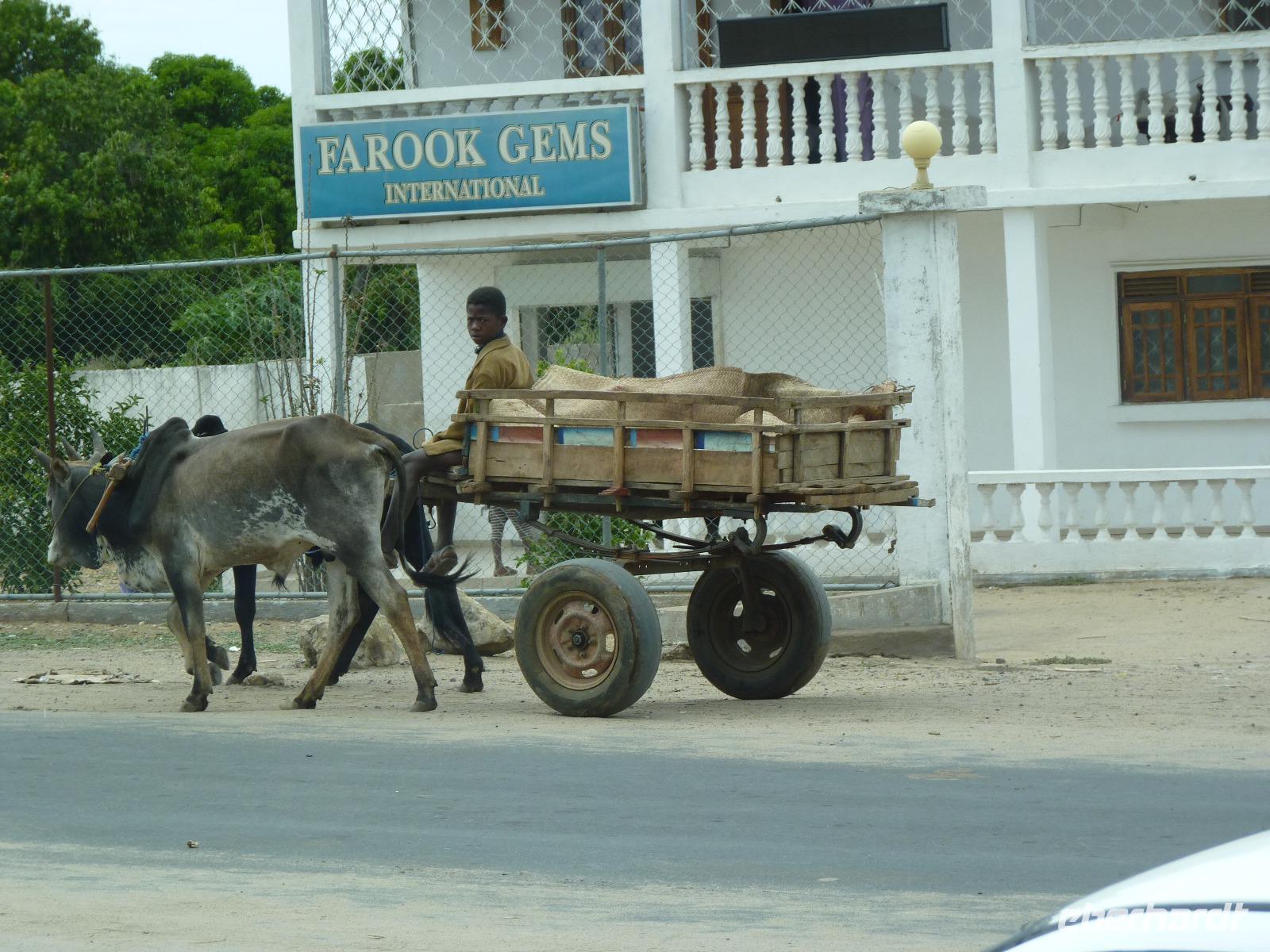 Heute verließen wir am frühen Morgen unser Hotel, den wir hatten wieder eine lange Fahrt vor uns. Der Start verlief etwas schleppend, da uns mehrer Zebu-Viehtriebe immer wieder kurz zum Anhalten zwangen. Auf unserer weiteren Fahrt legten wir immer wieder mal einen Fotostopp ein, so am Andriamamovoka Wasserfall oder an einer Ziegelbrennerei.