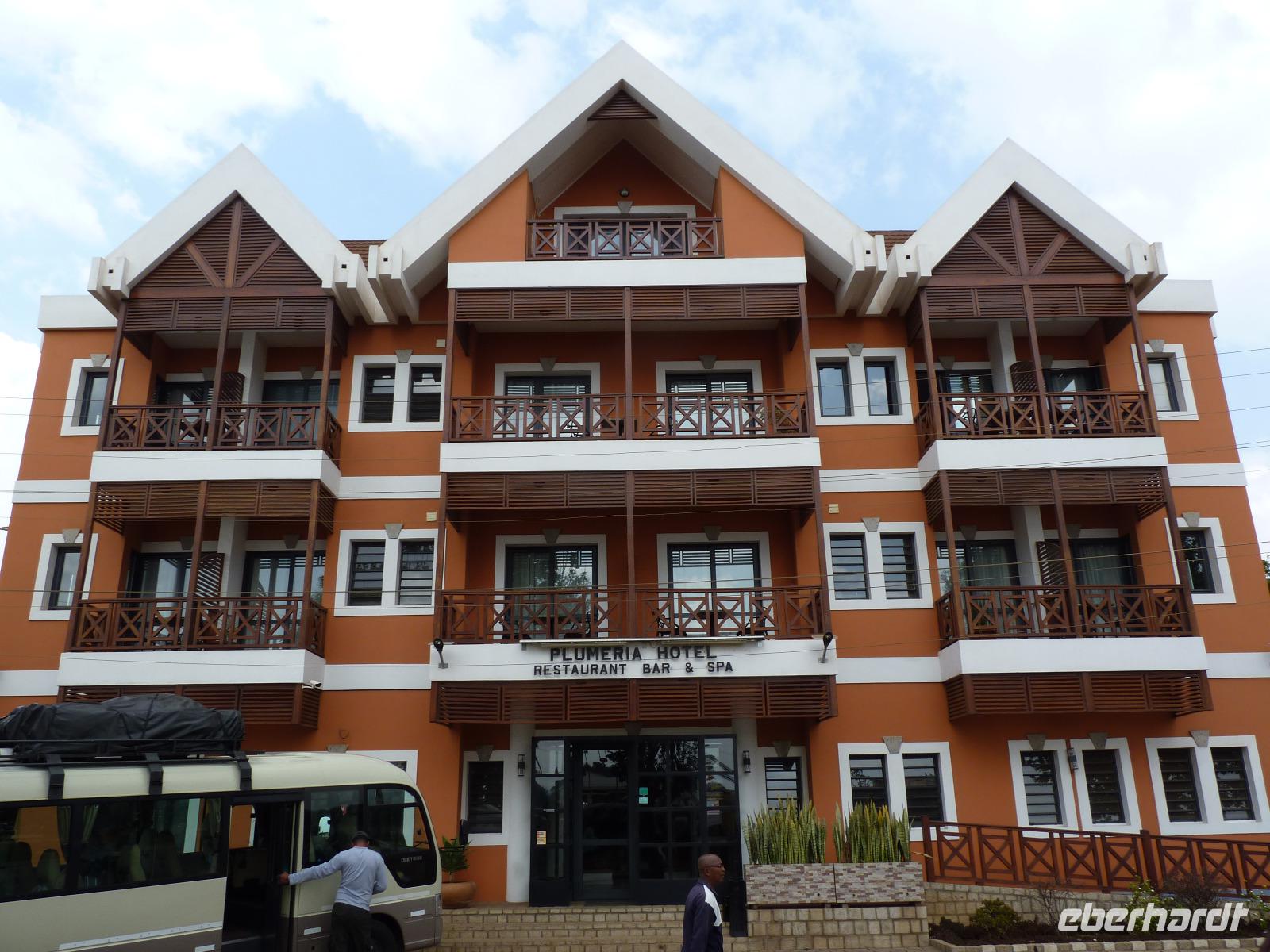 Ein interessanter Tag ging mit einem 3-Gänge-Menü im sehr schönen Plumeria Hotel von Antsirabe zu Ende.