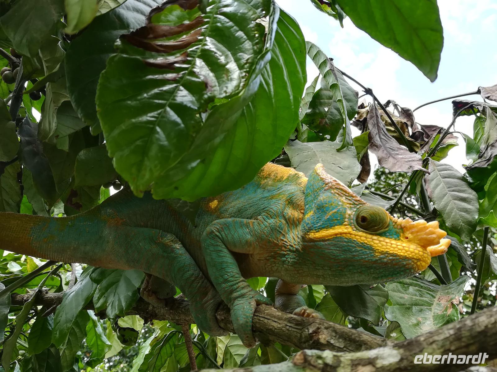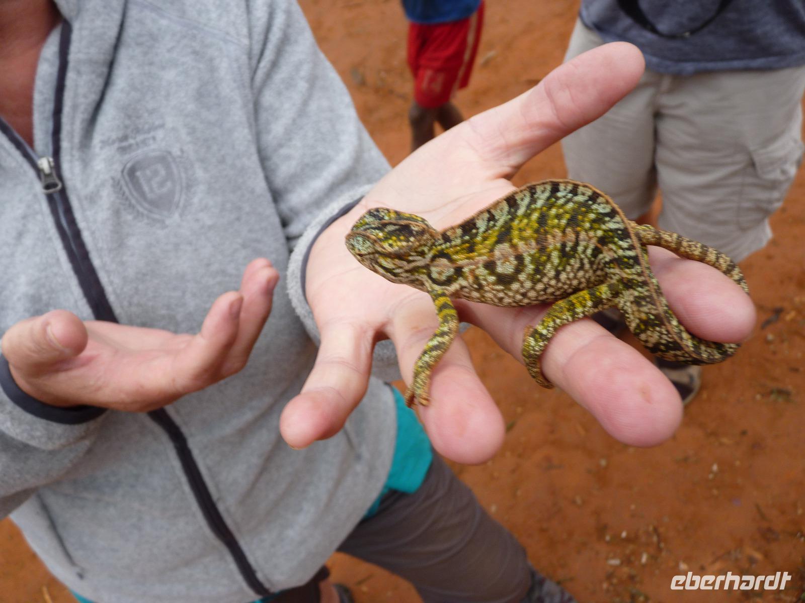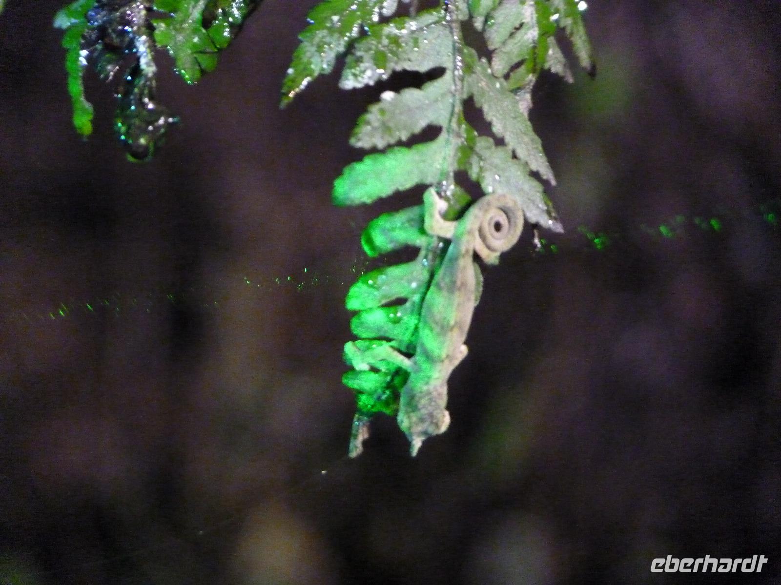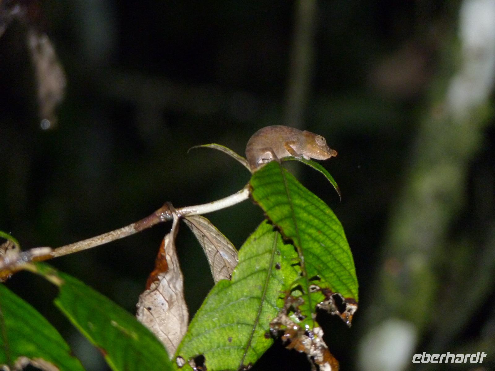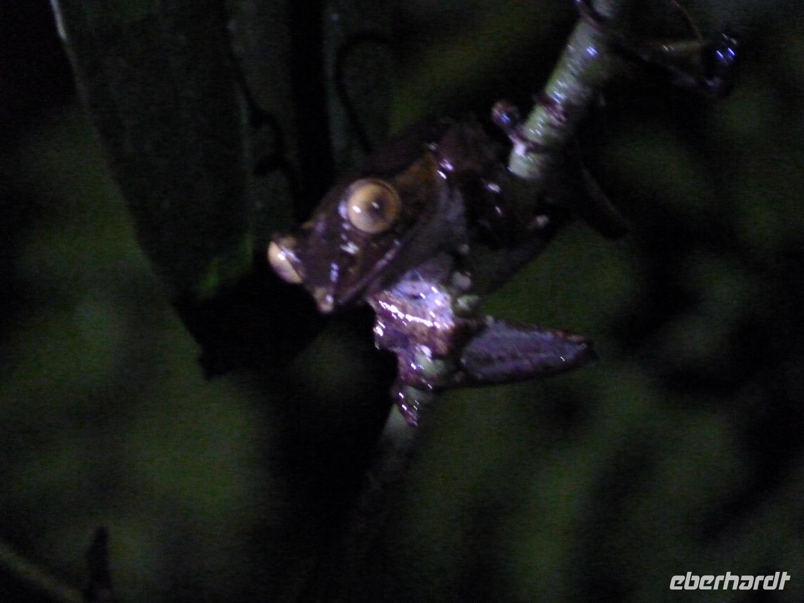 Am frühen Abend unternahmen wir kurz vor unserem Tagesziel noch eine sogenannte Nachtwanderung, auf der wir einige nachtaktive Tiere der Region beobachten konnten. Gut das wir örtliche Guides dabei hatten, sonst hätten wir viele der Chamäleons oder Frösche gar nicht als solche erkannt. Auch wenn es teilweise regnete, so waren doch Alle mit viel Leidenschaft bei der Suche nach Tieren dabei.