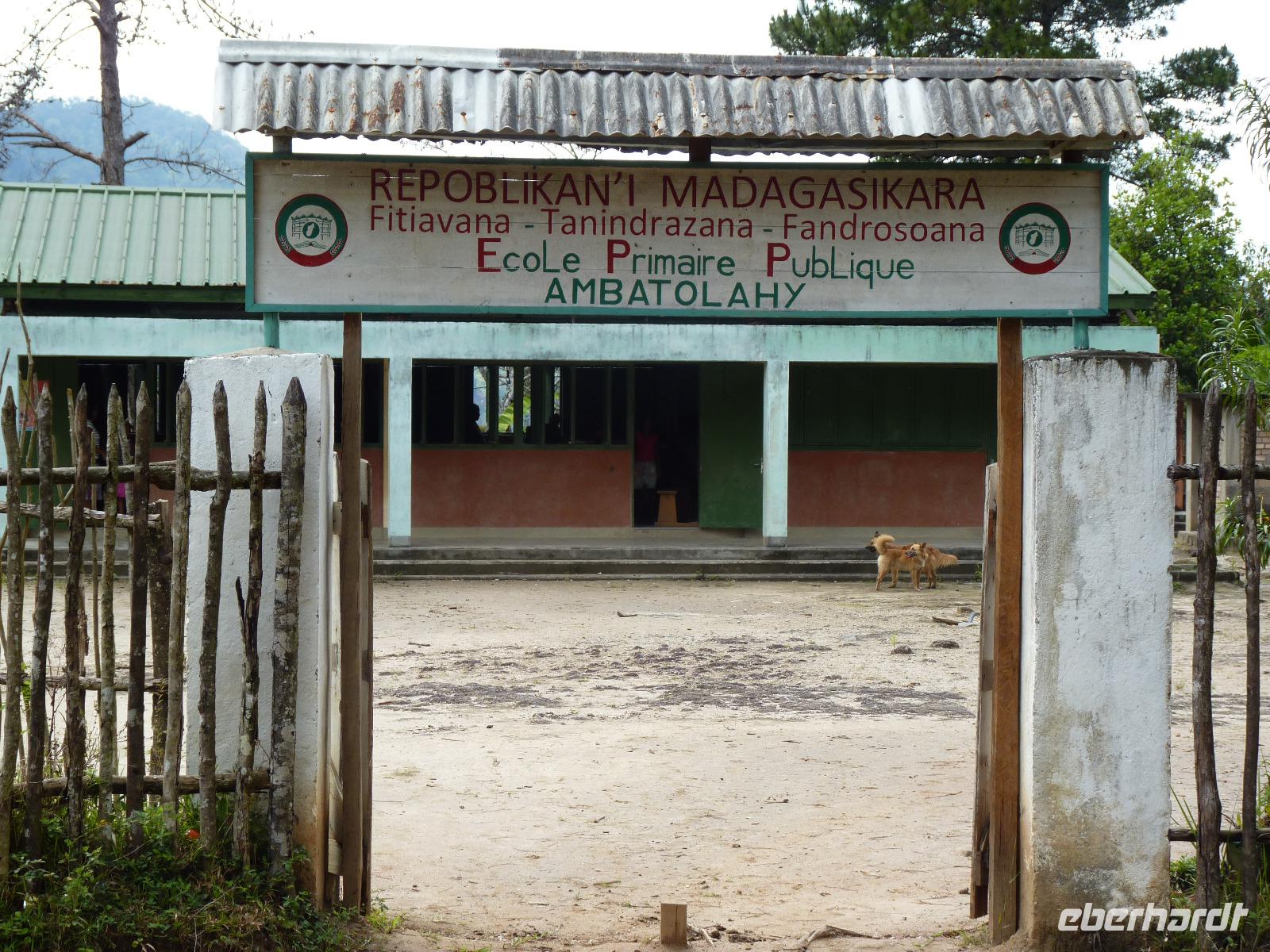 Den Vormittag verbrachten wir erst einmal im Ort. Wir besuchten die Dorfschule, welche durch die örtliche Reiseagentur finanziell unterstützt wird. Obwohl Ferien waren, schaffte es die Lehrerin, fast 50 Kinder zu aktivieren, die uns dann erwartungsvoll anschauten. Nach allgemeinen Informationen zur Schule, zum Unterrricht und den Schülern, sangen diese uns 2 Lieder, eines davon ziemlich textsicher die Nationalhymne, vor und wurden dafür mit allerlei Mitgebrachten belohnt. Natürlich waren Süssigkeiten am meisten begehrt, aber auch Stifte standen hoch im Kurs. Vieles ließen wir aber auch bei der Lehrerin zurück, um damit den Unterricht zu unterstützen. Die 3 bis 10-jährigen Kinder bedankten sich abschließend lautstark bei uns.
