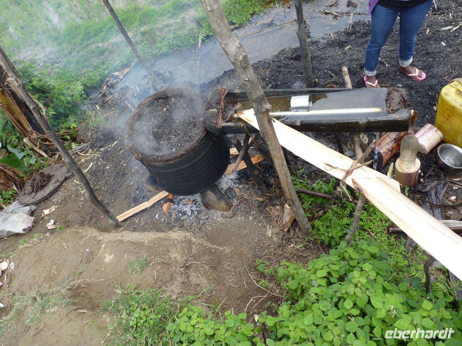 Bei unserem anschließenden Dorfspaziergang vereinbarten wir kurzfristig eine Führung zu einer Vanilleplantage. Madagaskar ist der weltweit größte Produzent von Vanille und darüber hinaus für die hervorragende Qualität seiner Vanille bekannt. Dabei konten wir uns noch eine Schwarzbrennerei für Rum anschauen. Um dort hin zu gelangen, hieß es Gleichgewicht zu wahren, mussten wir doch dafür über sehr schmale Wege zwischen Reisfeldern laufen. Gekostet haben wir nichts, wir wollten wir ja schließlich nicht blind werden. :-)