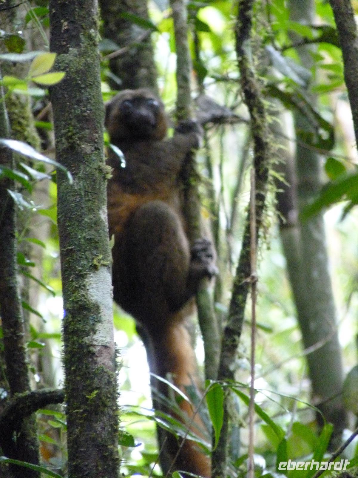 Am Nachmittag dann unternahmen wir eine mehrstündige Wanderung im Ranomafana-NP. Dieser ist zusammen mit mehreren anderen Nationalparks von Madagaskar Weltnaturerbe der UNESCO. Im Park wollten wir Lemuren sehen. Und wir haben sie gesehen. Es war nicht einfach, sie vor die Kamera zu bekommen, aber wir haben keine Anstrengungen gescheut und sind teilweise straff berghoch- und runter gewandert. Aber die Anstrengungen haben sich gelohnt. Herrlich, diese Tiere in freier Wildbahn zu erleben. Leider verschlechterte sich das Wetter zusehenst, so dass wir dann doch vor dem starken Regen flüchteten und froh waren, wieder unseren Bus und kurze Zeit später unser Hotel zu erreichen. Trotz des Wetters war es ein sehr schöner Tag.