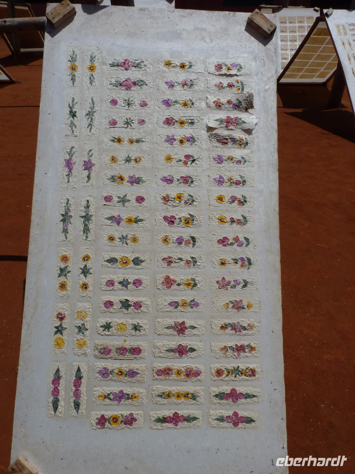 Am Vormittag erreichten wir Ambalavao. Der Ort ist bekannt für sein Antemoro-Papier (benannt nach der gleichnamigen Volksgruppe), welches aus der Rinde des wilden Havoha-Baumes (Maulbeerbaum) hersgestellt wird. In der Fabrik, wobei dieser Name reichlich übertrieben ist, da alles mehr oder weniger im Freien abläuft, zeigte uns Seheno die einzelnen Arbeitsschritte zur Herstellung dieses Papiers. Die fertigen Endprodukte konnten im angegliederten Shop käuflich werworben werden.