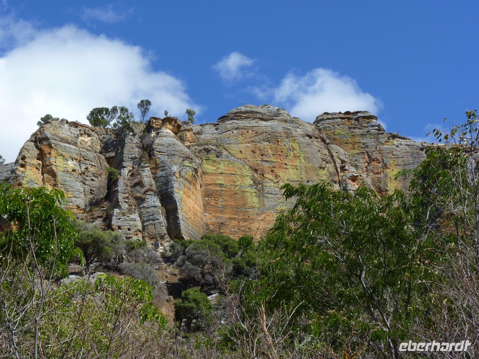 Nach dem Frühstück fuhren wir zuerst nach Ranohira, nahmen dort unseren örtlichen Guide Omega auf, der uns den Isalo-Park zeigen wollte. Eine faszinierende Flora und Fauna inmitten von ruinnenförmigen, natürlichen Felsmassiven erwartete uns. Die ca. 10-15cm lange Stabheuschrecke, die wir ohne unseren Guide aufgrund ihrer perfekten Tarnung nie als solche erkannt hätten oder den Elefantenfuß, eine Pflanze mit ungwöhnlich dicker Knolle sollen hier nur beispielhaft genannt werden. Auf unserer knapp 4-stündigen Wanderung sahen wir noch viele andere Pflanzen und Tiere. Da es recht warm war, freuten wir uns auf etwas Kühles und da kam uns der Piscine naturell, ein natürlicher kleines See, ähnlich einer Wüstenoase, gerade recht. Fast alle Gäste nahmen ein Bad in diesem erfrischenden Wasser.