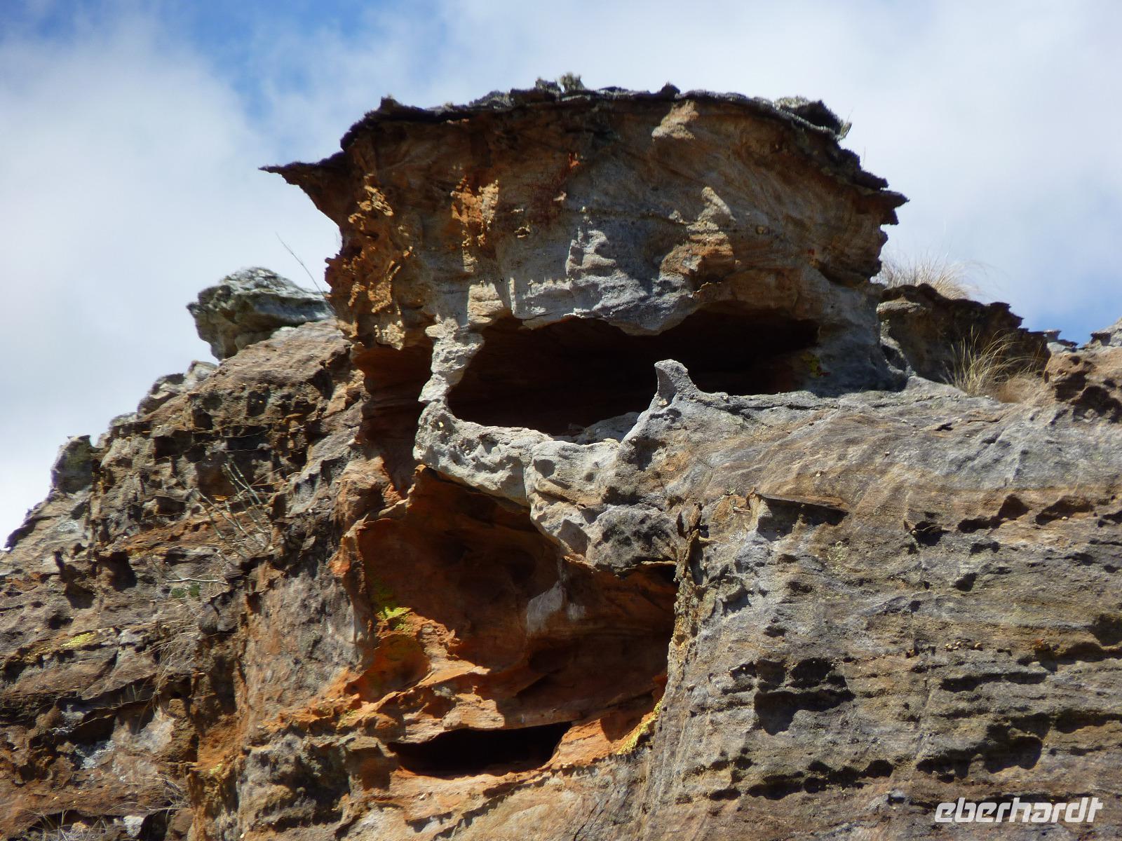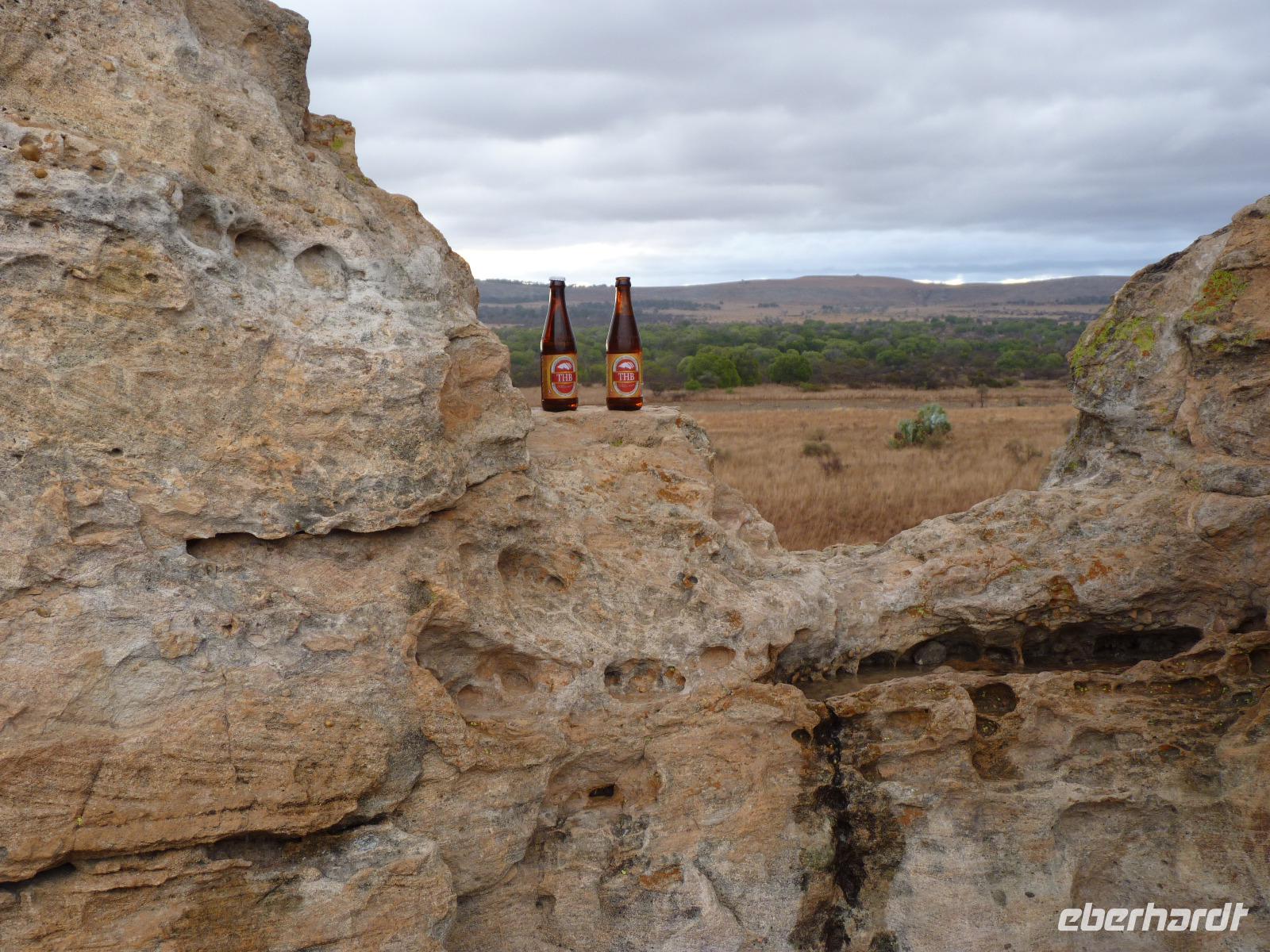 Am Abend wollten wir den Sonnenuntergang am Isalo-Fenster, eine Felsformation mit Loch, erleben, aber da machte der Wettergott nicht mit. Dunkle Wolken und stark einsetzender Regen machte dieses Unterfangen zunichte, aber dank einheimischer Knabbereien und Wein, Bier und Rum haben wir Regen Regen sein lassen und uns eben im Bus vergnügt.