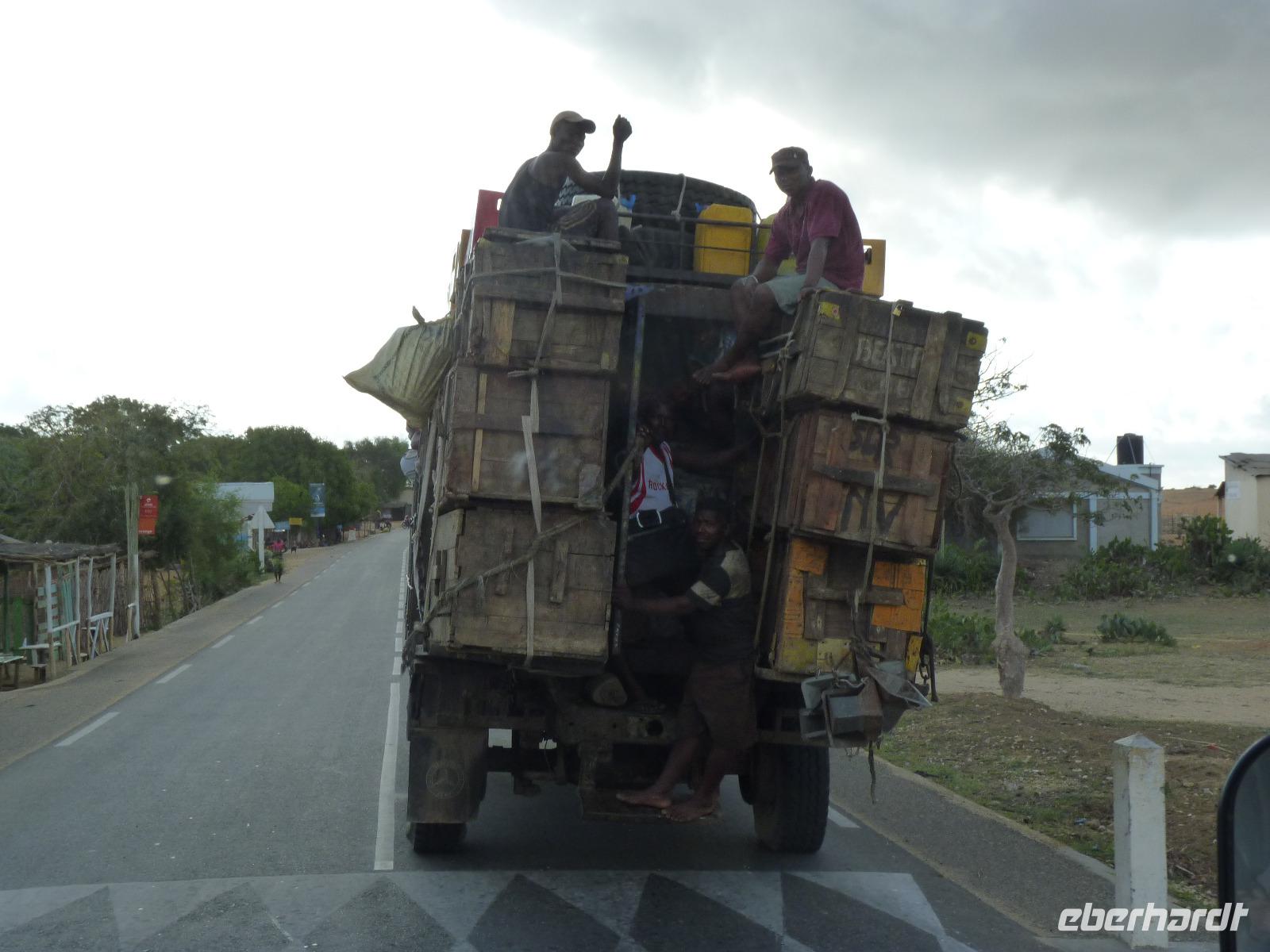 Heute sollten wir die Küste erreichen. Wir mussten nicht lange fahren, da sahen wir die für Madagaskar typischen, kerzengerade gewachsenen Baobab-Bäume, oder auch Affenbrotbaum genannt. Der Begriff Baobab kommt aus der Zulu-Sprache und bedeutet tausendjähriger Baum. Der Legende nach steckt sein Kopf in der Erde und die Wurzeln ragen in die Luft.