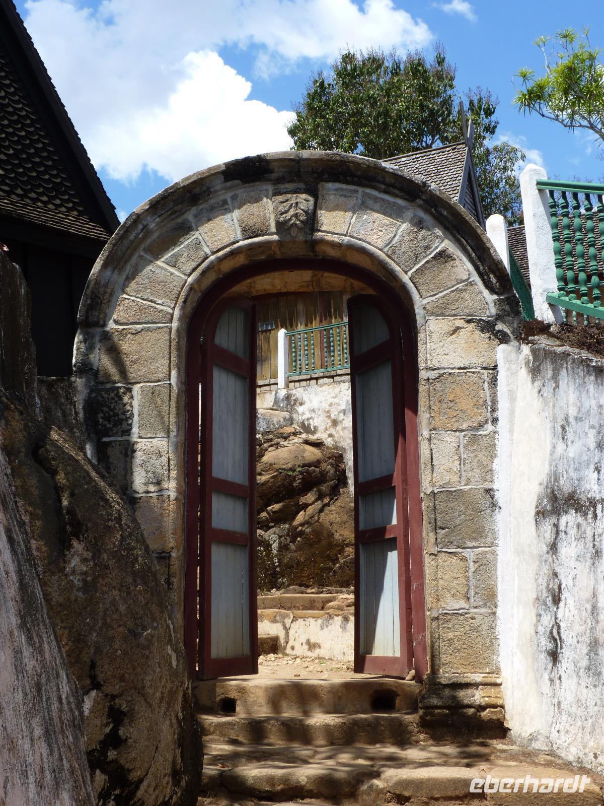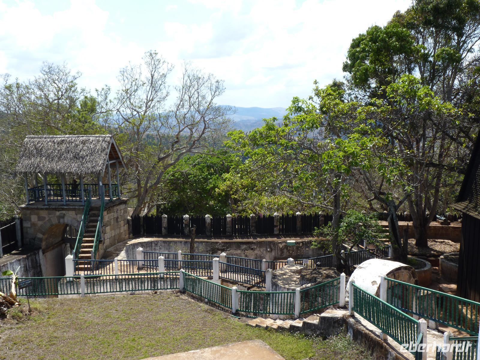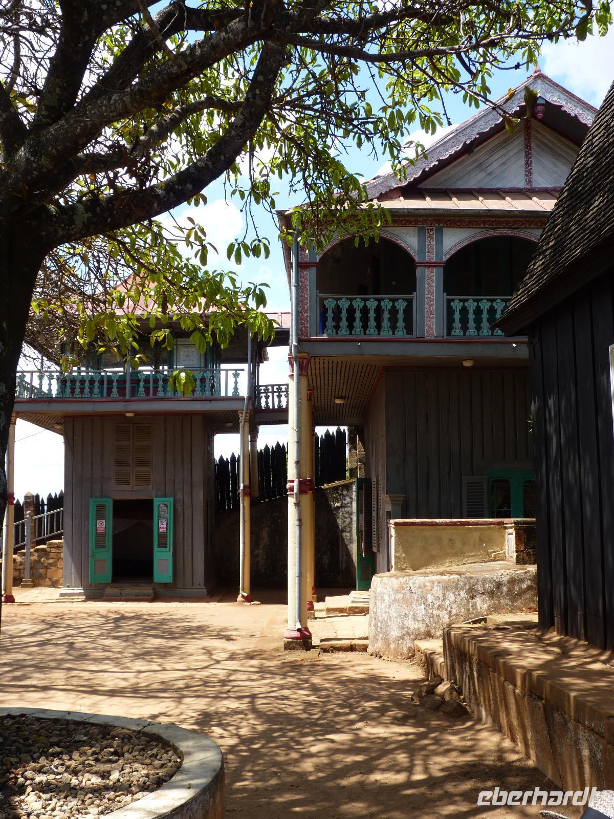 Als erstes besuchten wir den außerhalb der Hauptstadt liegenden ehemaligen Königinnenpalast, in dem mehrere Könige und vor allem Könniginnen residierten und auch dort berdigt wurden. Dieser Palast liegt auf einem der sieben heiligen Hügel rund um Tana, dem Ambohimanga. Seit 2001 zählt dieser Ort zum Weltkulturerbe der UNESCO.