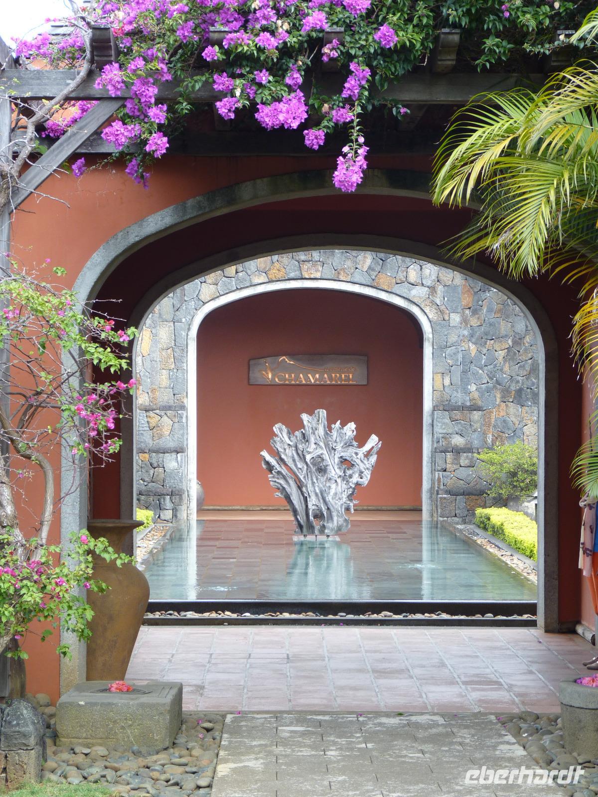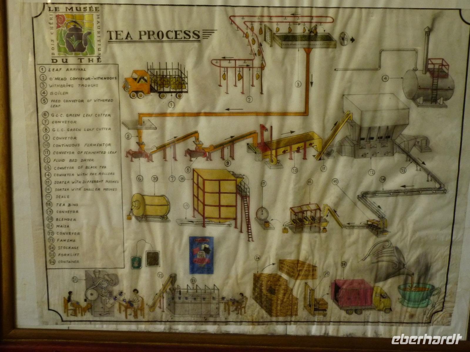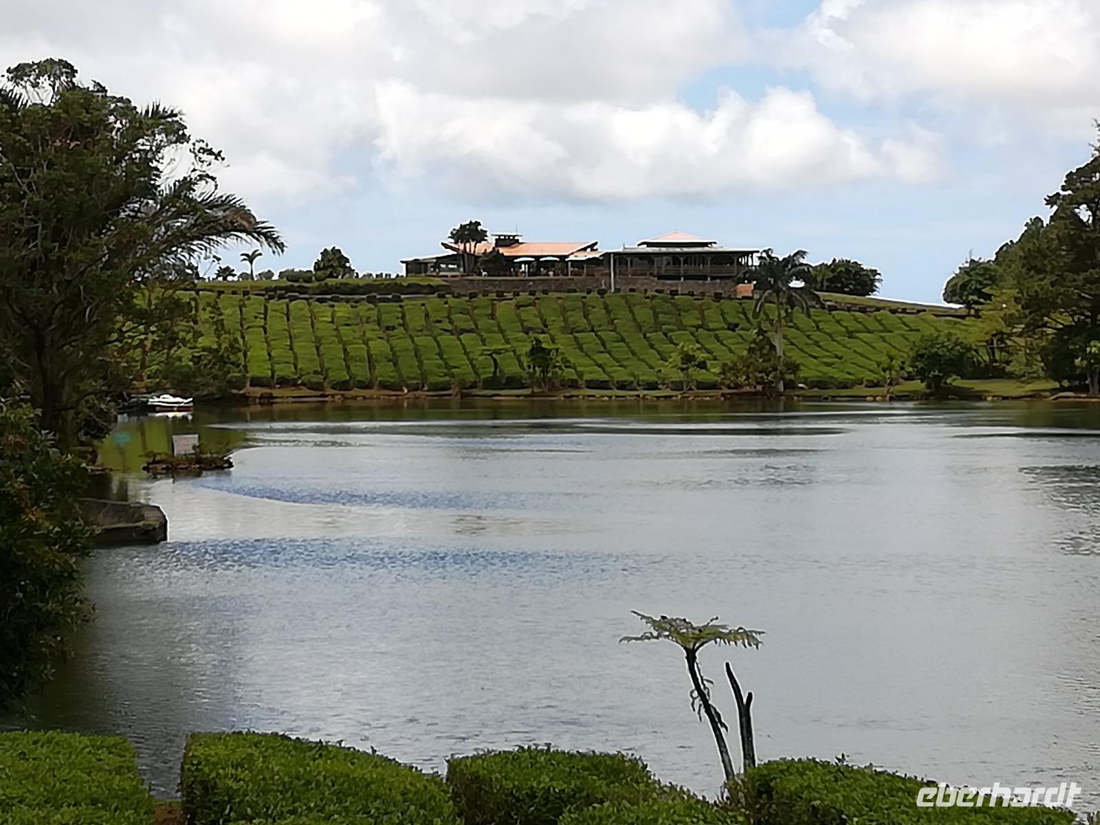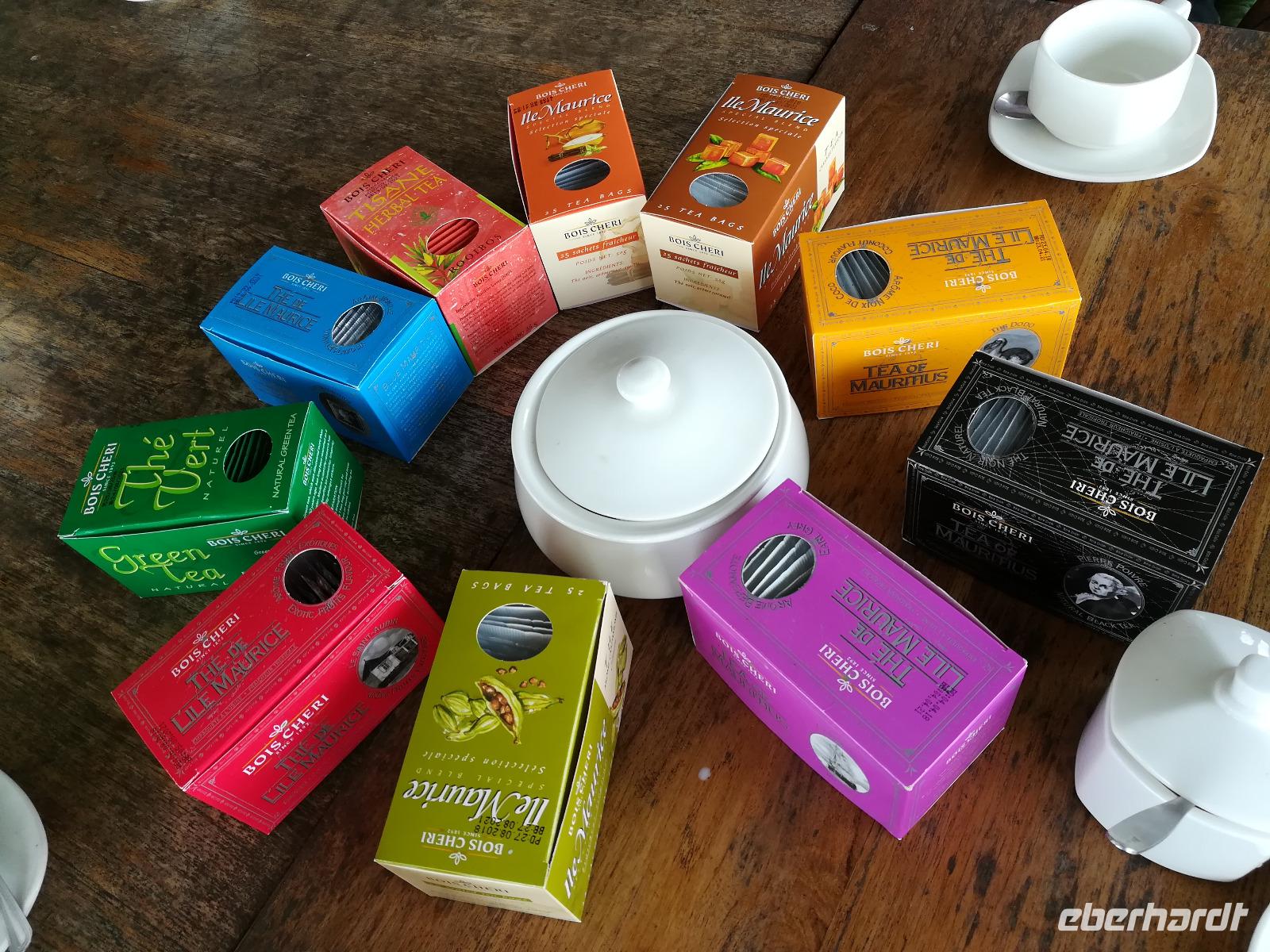 Neben Zuckerrohr wird auch Tee in Mauritius angebaut. An diesem Tag besuchten wir mit Sandia die 1892 von den Engländern gebaute Teefabrik Bois Cheri. Zuerst besichtigten wir das Museum und anschließend durchliefen wir die aktive Fabrik. Hier konnten wir bei den einzelnen Maschinen sehr gut die Verarbeitung der Teeblätter bis zum fertigen Produkt nachvollziehen. Im dazugehörigen sehr schön gelegenen Restaurant Le Bois Cheri probierten wir bei einer Teeverkostung die verschiedenen Teesorten und es bestand die Möglichkeit, diese im angegliederten Shop auch käuflich zu erwerben.