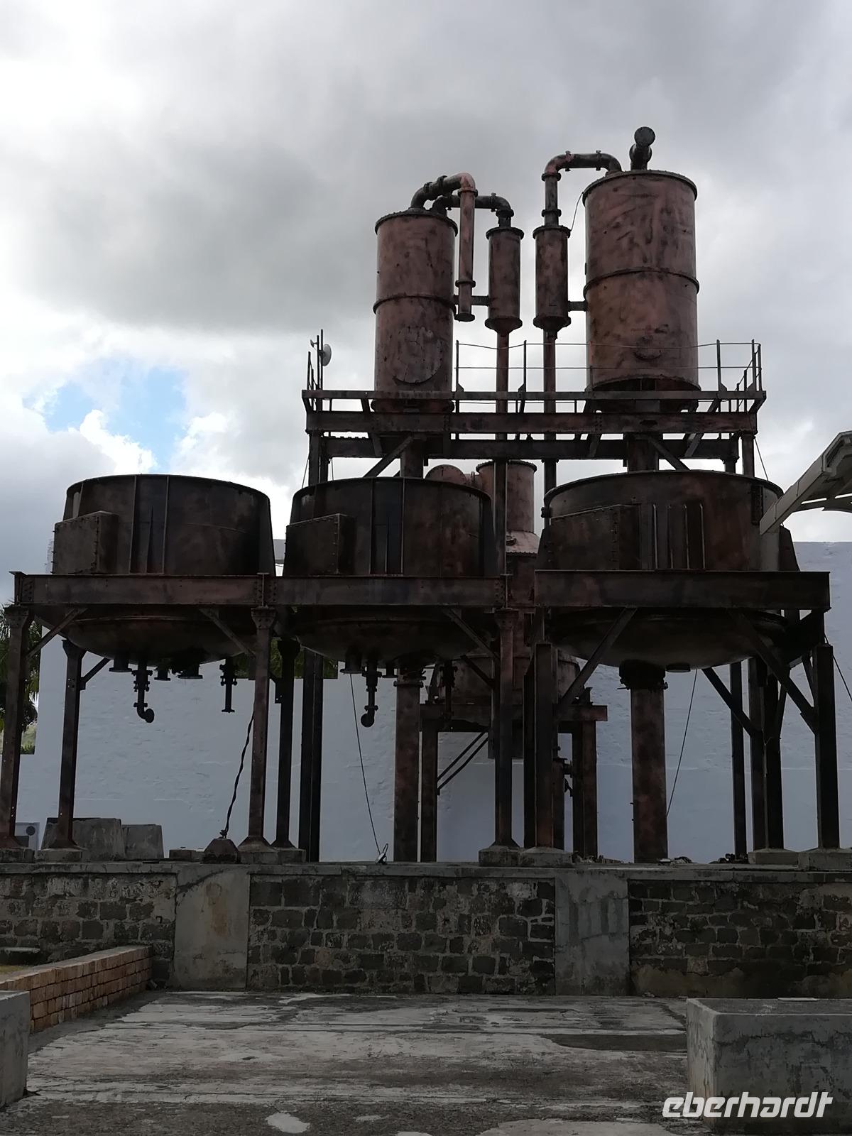 Nach unserem gemeinsamen Frühstück starteten wir wie die nächsten Tage auch um 08:30 Uhr. Erstes Ziel war der Botanische Garten von Pamplemousse, in dem wir tropische Pflanzen aus aller Welt betrachten konnten. Der Garten wurde bereits 1769 angelegt und beherbergt die vermutlich größte Vielfalt an Palmenbäumen. Weiter ging es zu einer ehemaligen Zuckerrohrfabrik, welche heute ein Museum ist und in dem uns Sandia die einzelnen Schritte der Verarbeitung des Zurckerrohrs bis zum fertigen Produkt, dem Rum, zeigte. Im angeschlossenen Shop hatten wir dann die Möglichkeit, Rum in verschiedenen Variationen zu probieren bzw. auch verschiedenen Zucker zu verkosten. Wir hatten zwar für einen Einkauf noch keine einheimische Währung, aber mit Kreditkarte oder auch EUR war das kein Problem.