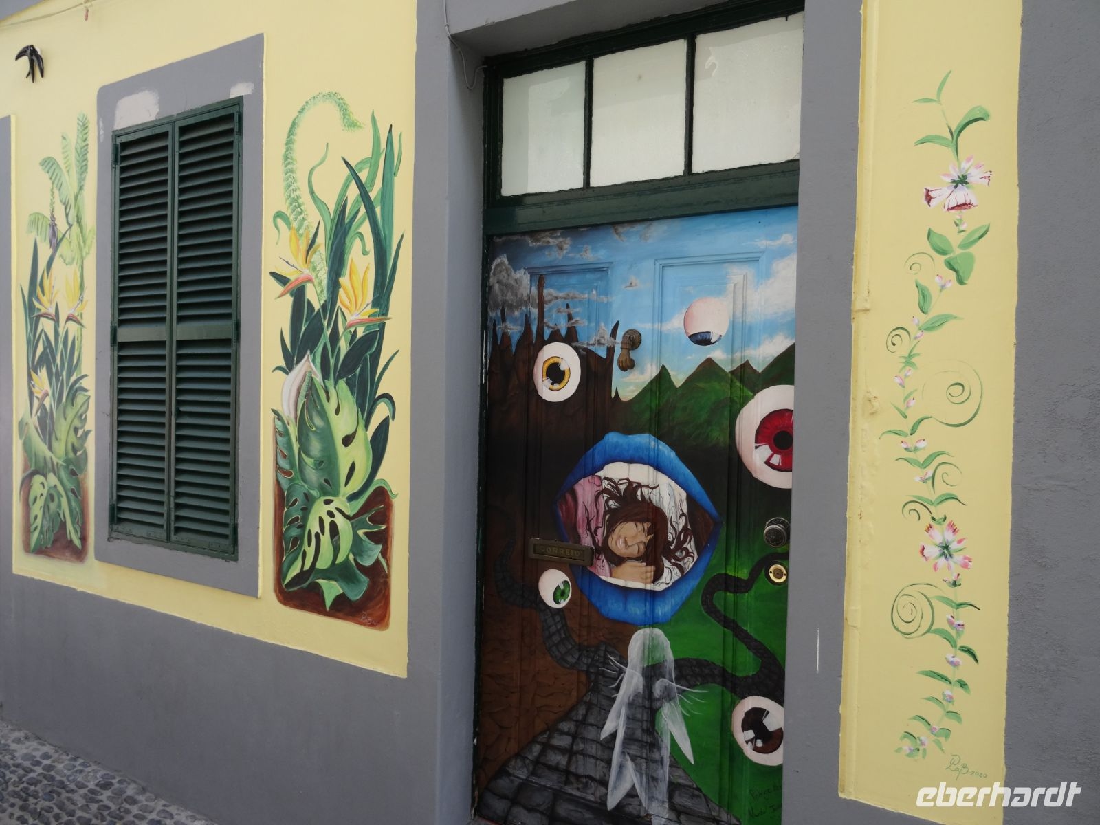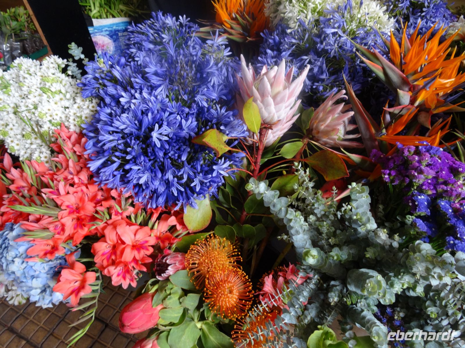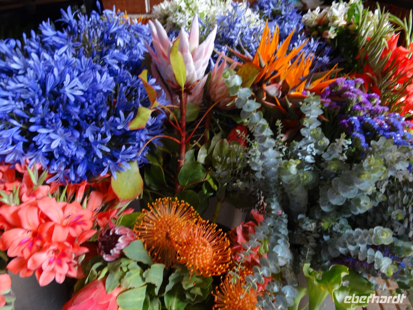 Zunächst liefen wir entlang der Rua de Santa Maria, bestaunten die herrlich bemalten Haustüren und schon standen wir am Eingang der Markthalle mit den in ihrer Nationaltracht bekleideten Blumenverkäuferinnen - Was für eine Blumenpracht...