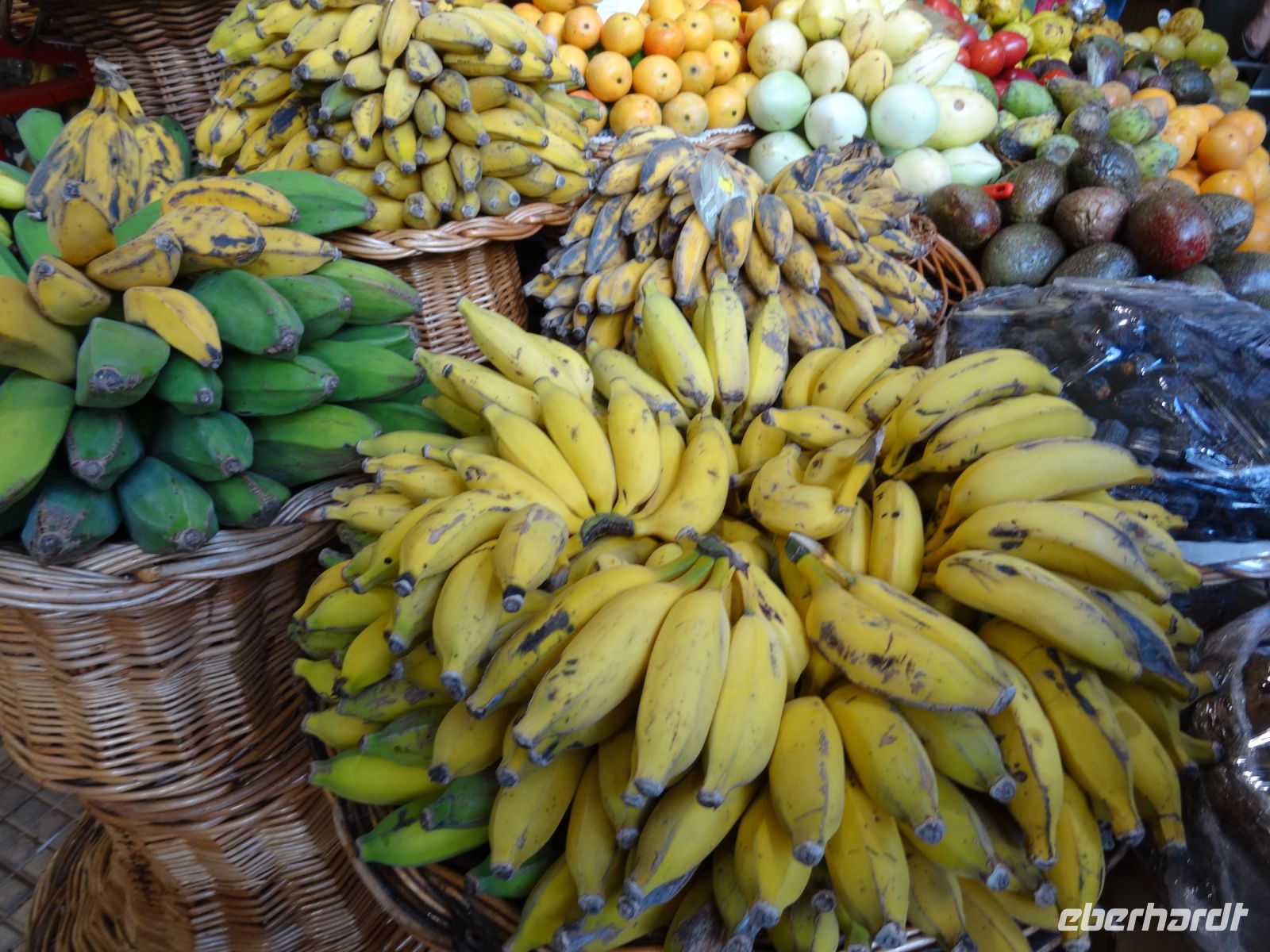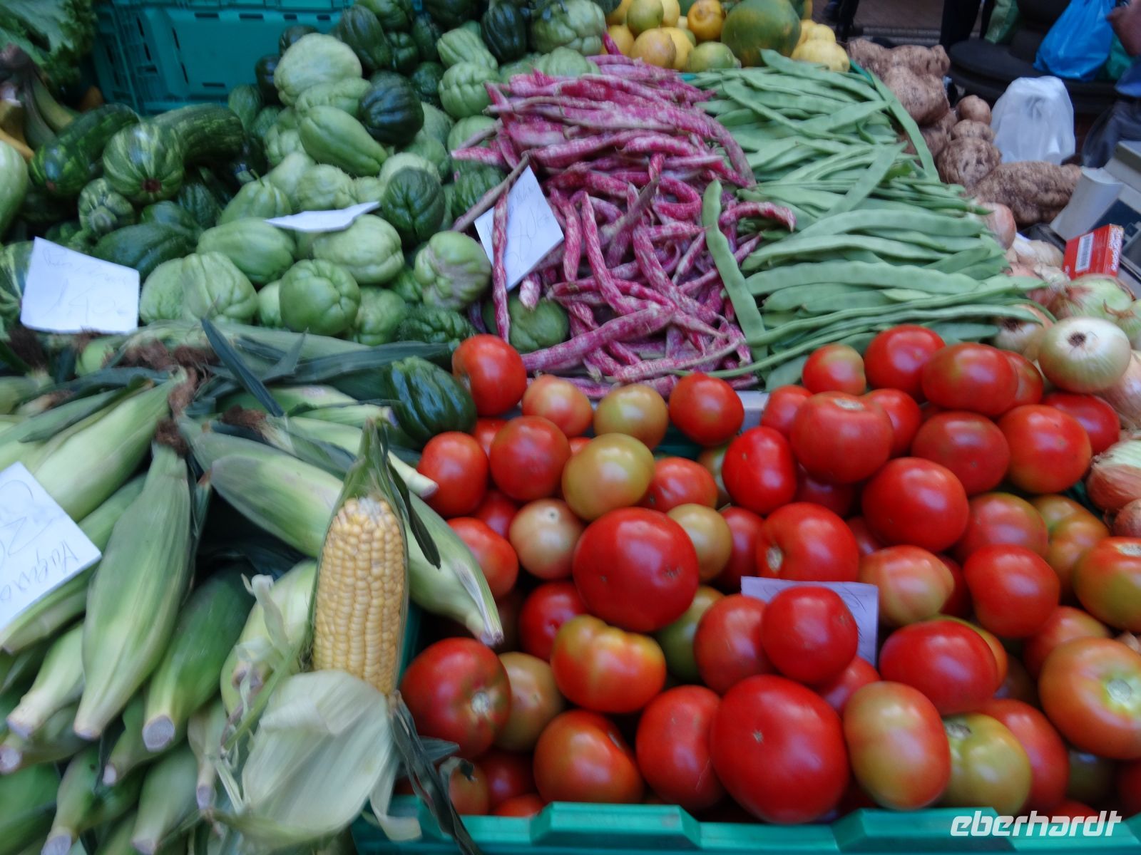 Im Inneren bot sich uns eine Vielfalt von Früchten und Gemüse. Wer wollte, konnte von Maracuja, Anona, kleinen süßen Bananen, Papaya und so weiter kosten.