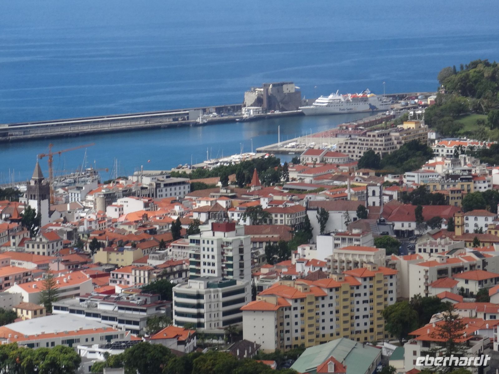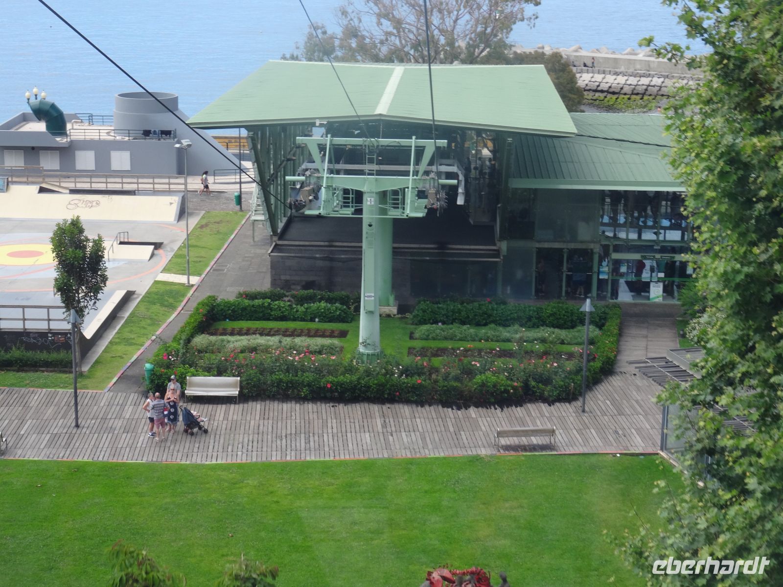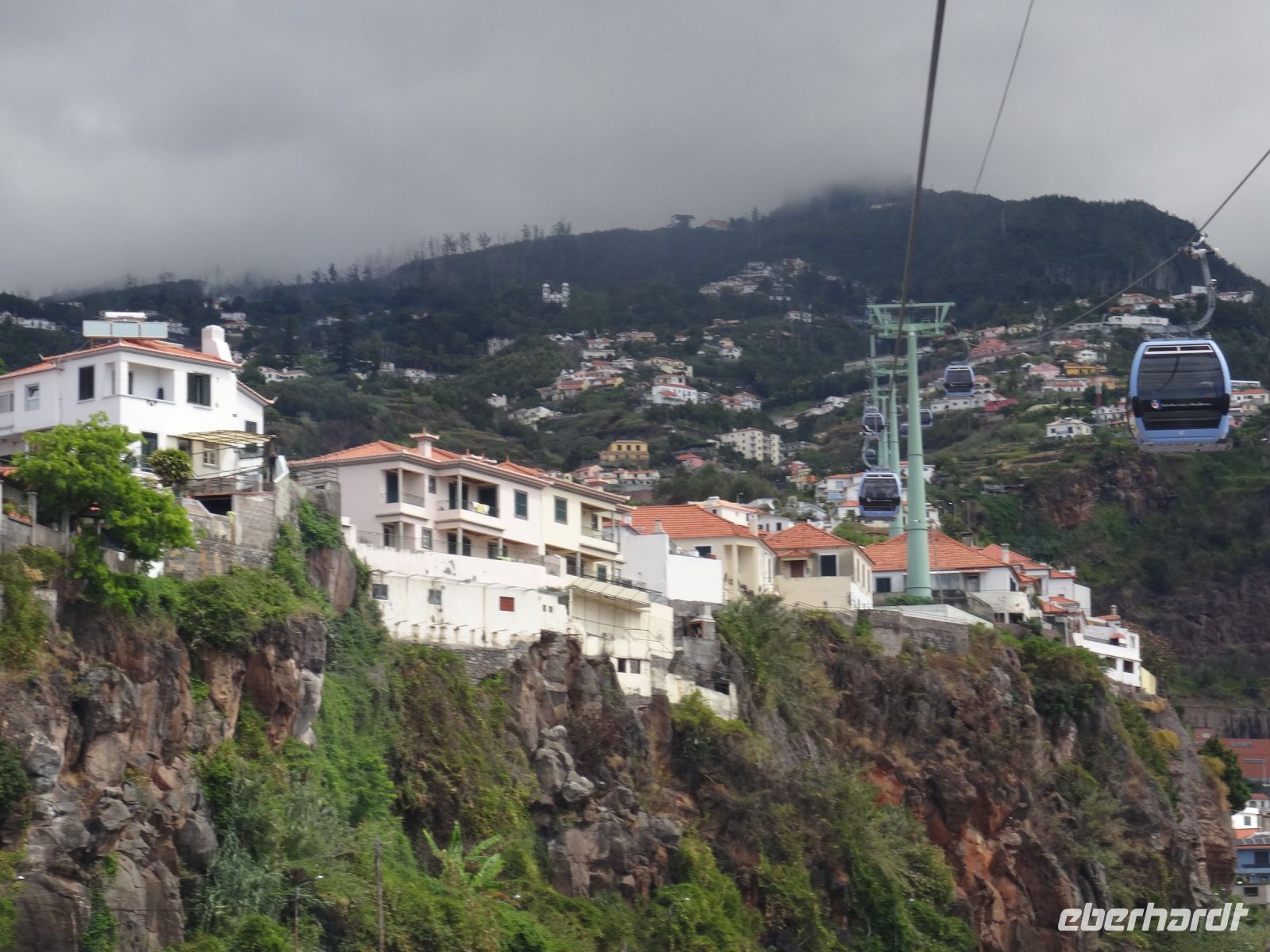 Im Anschluss an den Aufenthalt in der Mercado von Funchal fuhren wir mit der Seilbahn hin auf nach Monte. Was für ein Erlebnis, die auf einem Steilhang liegende Hauptstadt, eingerahmt vom Blau des Atlantik zu sehen. Wir genossen die natürliche Schönheit auf einer Fahrstreckenlänge von 3173 Metern mit einem Höhenunterschied von 560 Metern bei einer Fahrzeit von 15 Minuten.