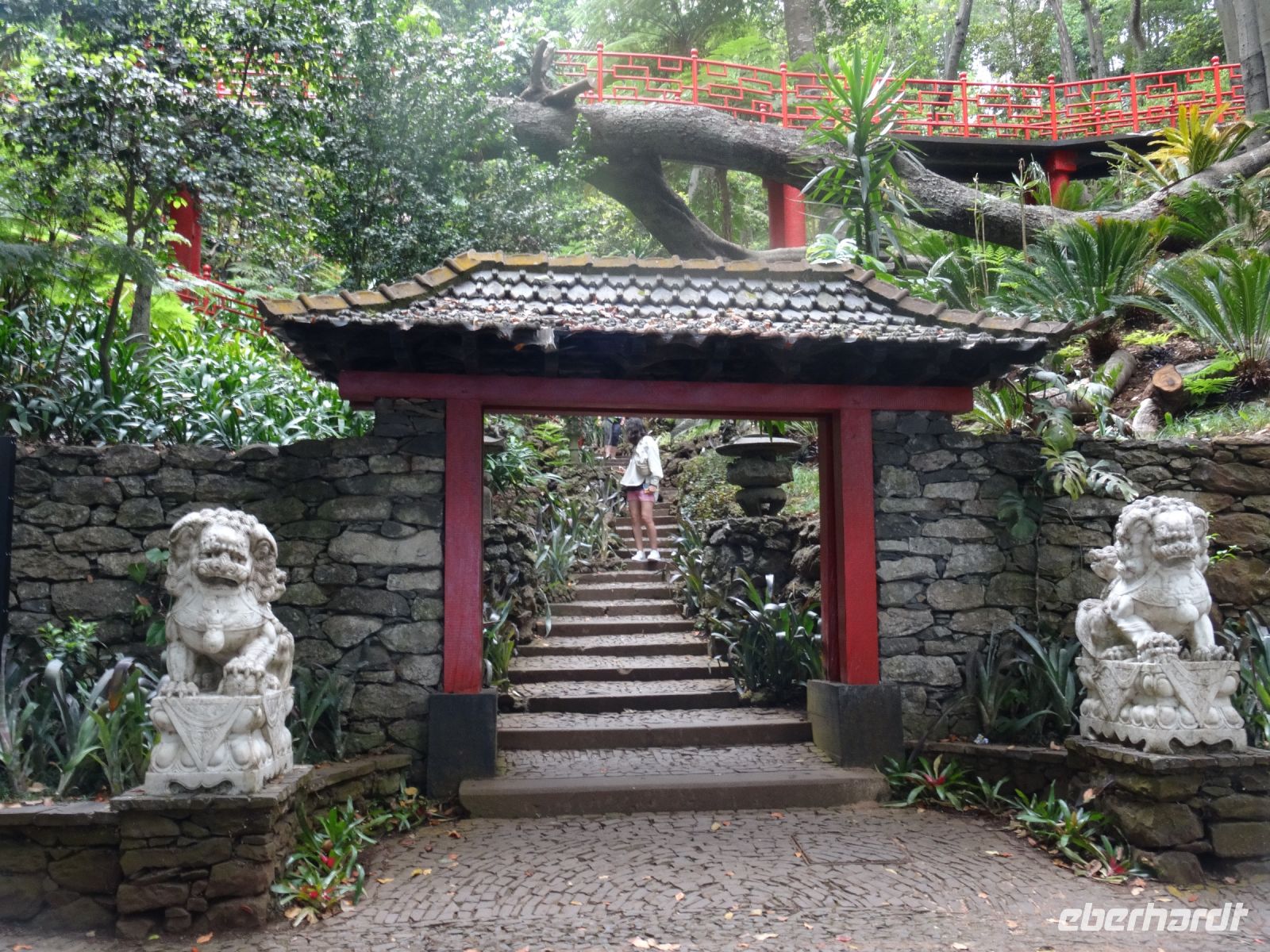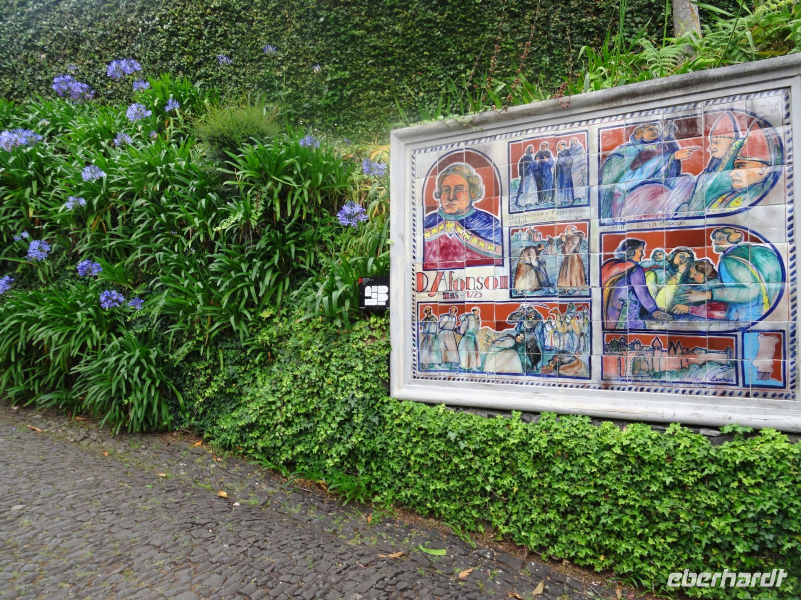Oben angekommen befand sich gleich links der Eingang zum Tropischen Garten Monte Palace. Dieser Garten erstreckt sich über eine Fläche von70000 Quadratmetern und ist mit exotischen Pflanzen bestückt, deren Herkunft aus allen Kontinenten stammen und sich harmonisch mit Pflanzen der einheimischen Flora ergänzen.
