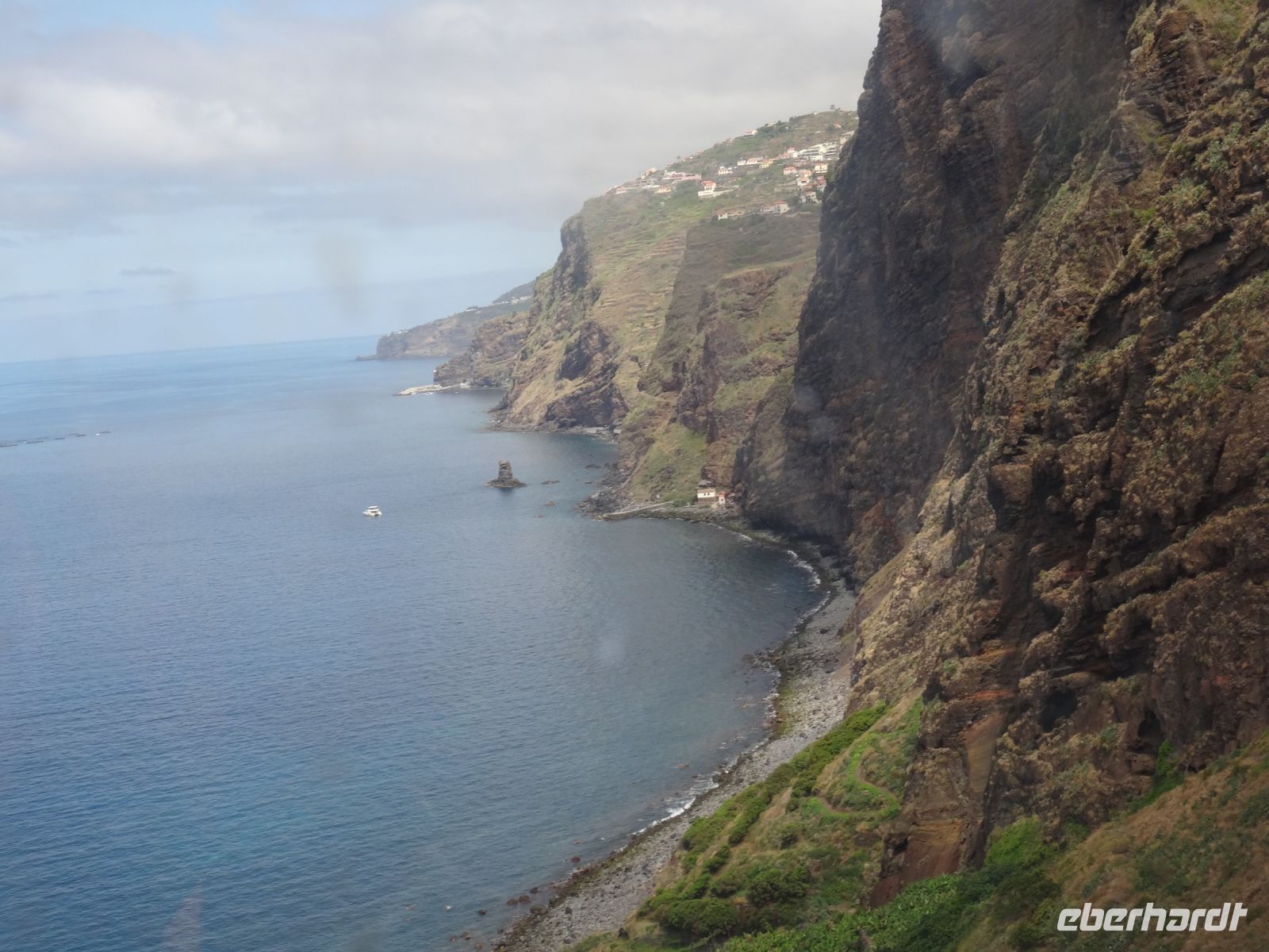 Entlang der Küste wieder zurück segelten wir vorbei an Camara do Lobos, wo Winston Churchill das Örtchen auf einen Bild verewigte. Von weiten konnten wir bei klarer Sicht den Weg ins Nonnental sowie den Pico de Areiro, den mit 1818 Meter dritthöchsten Berg Madeiras erkennen.