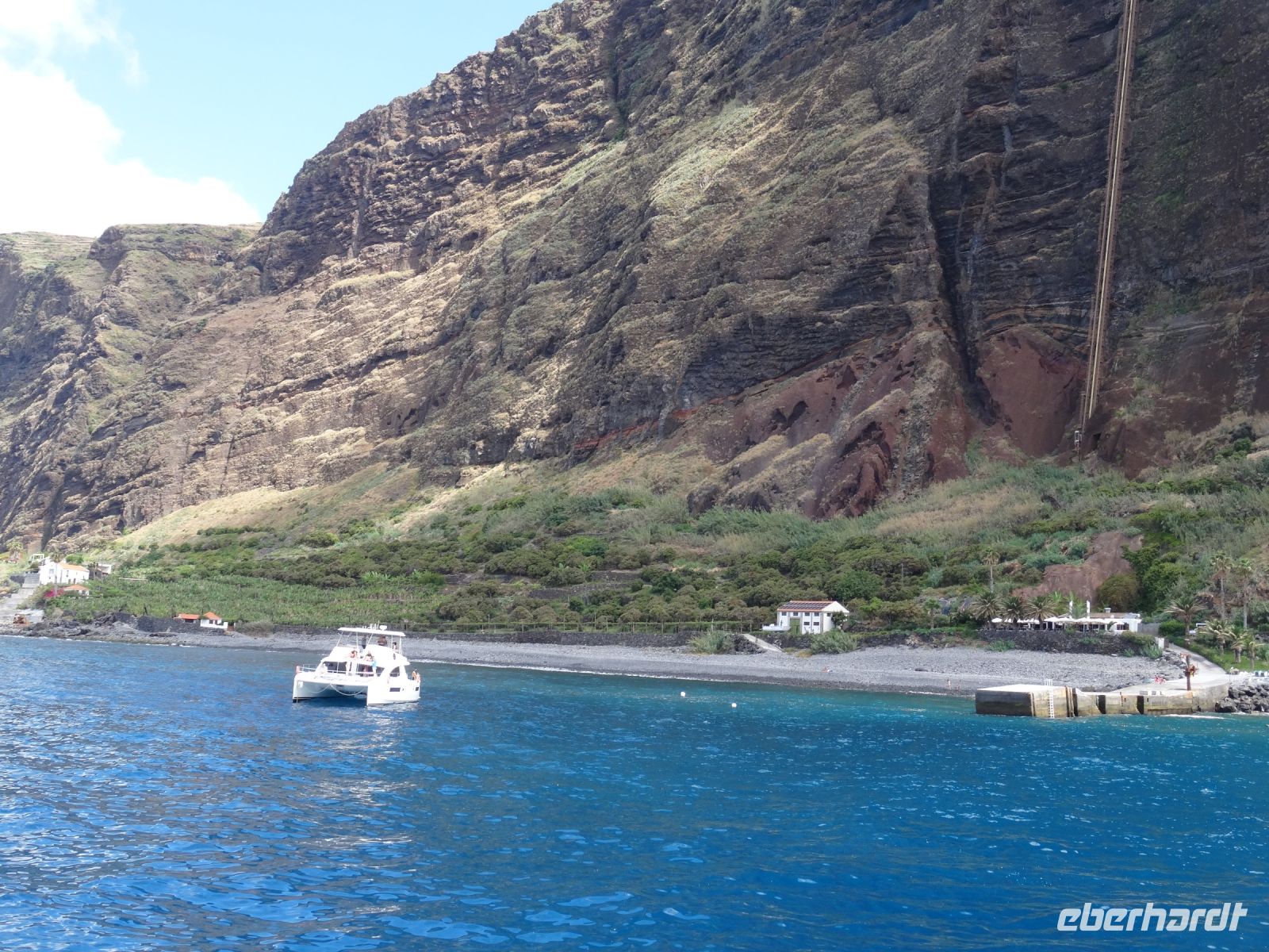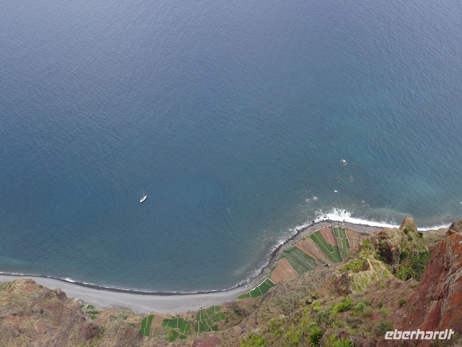 Schließlich erreichten wir unser Ziel - Gabo Girao . Noch vor wenigen Stunden vom Meer aus gesehen, warfen wir dieses Mal von der gläsernen Plattform einen grandiosen Blick 588 Meter hinunter auf das Meer und erlebten einen atemberaubenden Blick auf diesen "Sky Walk".