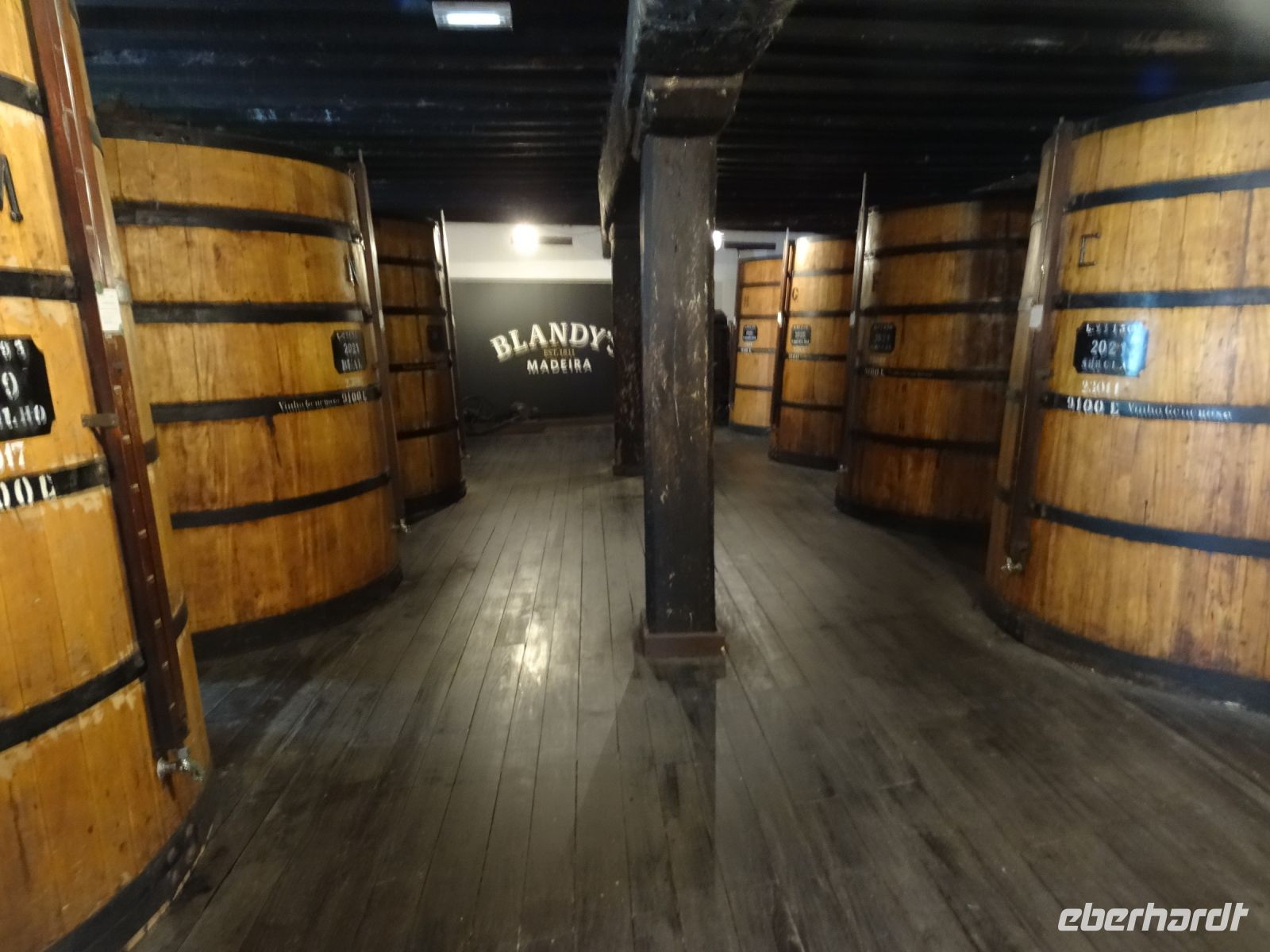 Danach liefen entlang des "Brodway's Funchal" = Avenida Arriaga zum Weinkeller des bekannten Madeira Wein "Blandy's". Paulo, unserer Reiseleiter, vermittelte uns viel Wissenswertes über den seit dem 16. Jahrhundert auf Madeira produzierten und mit 19 Prozent alkoholhaltigen Wein. Eine Kostprobe durfte natürlich auch nicht fehlen.