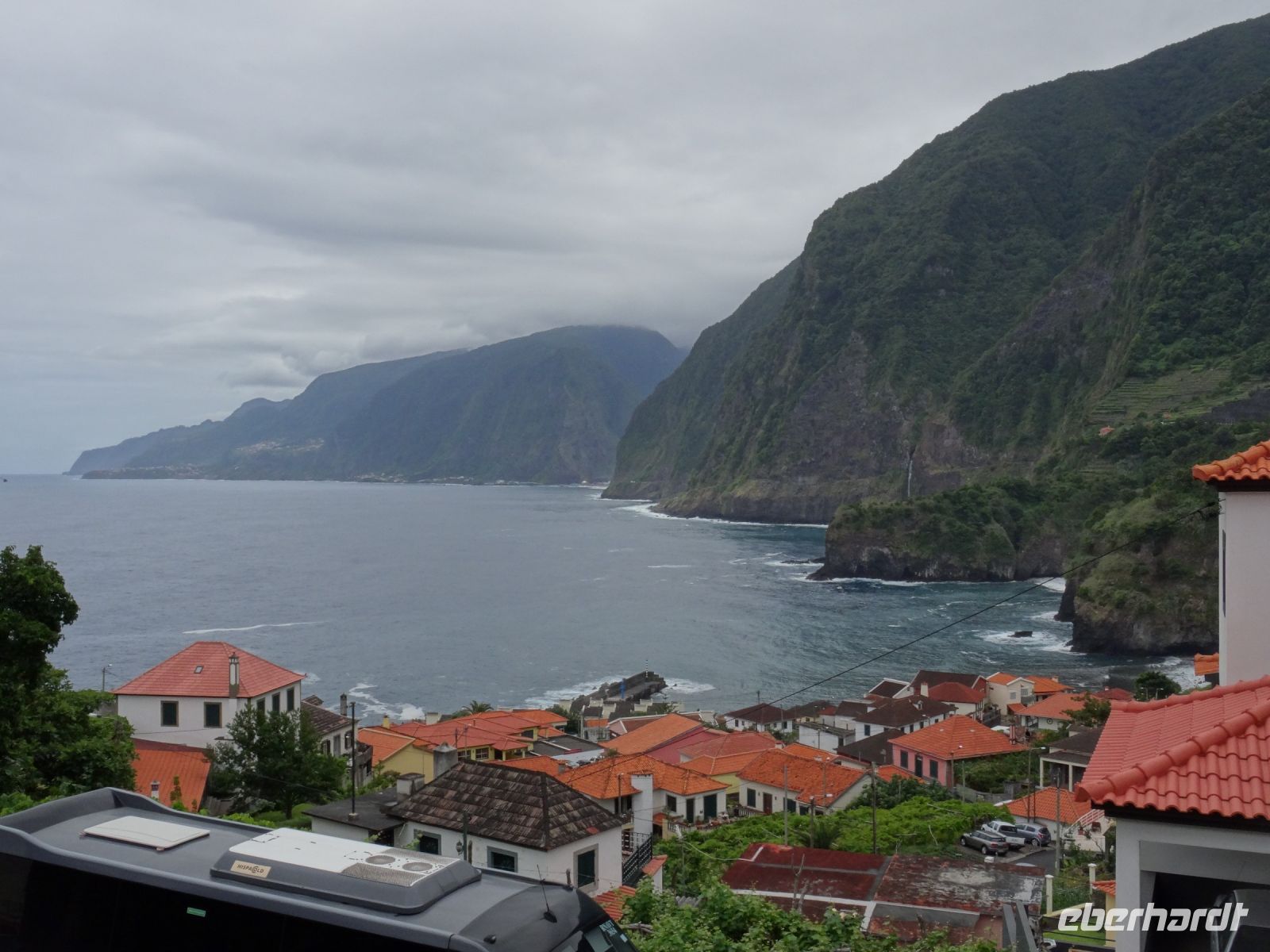 bei unserem heutigen Ausflug lernten wir eine weitere neue Seite Madeiras kennen. Mit Zwischenstopps in Ribeira Brava und den Encuameda Pass in 1007 Meter Höhe erreichten wir den Nordosten der Insel mit dem ersten Ziel Sao Vicente. Eigentlich wollten wir hier die entlang der bekannten Grotten laufen, aber ein kleines Erdbeben im Februar verhinderte leider unser Unternehmen.