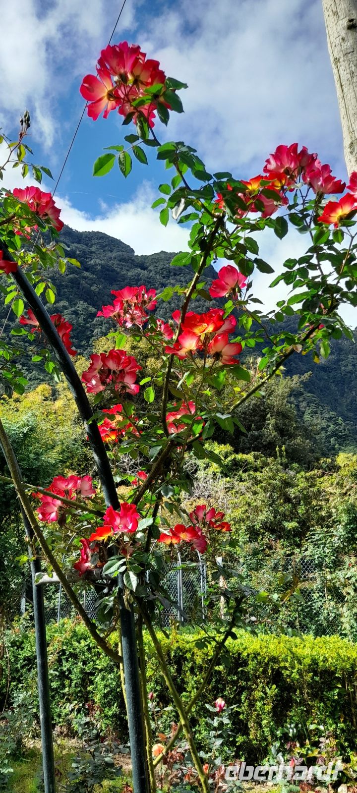 Dann starten wir mit Fatima, unserer kompetenten, liebenswerten Reiseleiterin und André, unserem versierten Fahrer, eine wunderbare Rundfahrt. Über Faial geht's hoch nach Santana mit den berühmten Nurdach-Häusern, in einen beeindruckenden Rosengarten. Unterwegs herrliche Landschaft und überall Blumen Blumen!