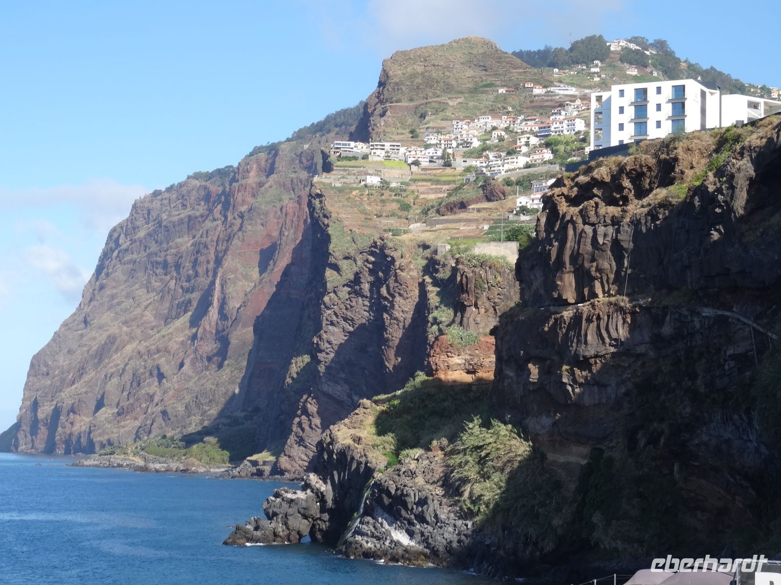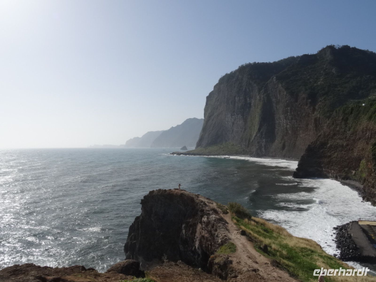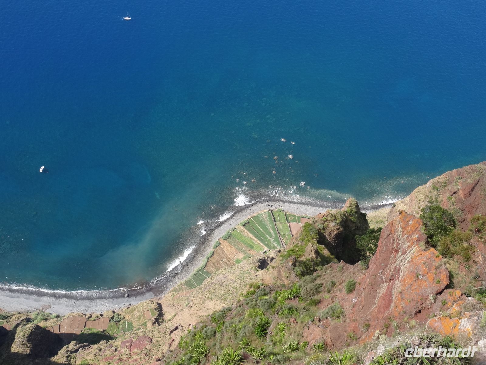 Schließlich erreichten wir unser Ziel - Cabo Girao . Noch vor zwei Tagen vom Meer aus gesehen, warfen wir dieses Mal von der gläsernen Plattform einen grandiosen Blick 588 Meter hinunter auf das Meer und erlebten einen atemberaubenden Blick auf diesem "Sky Walk".