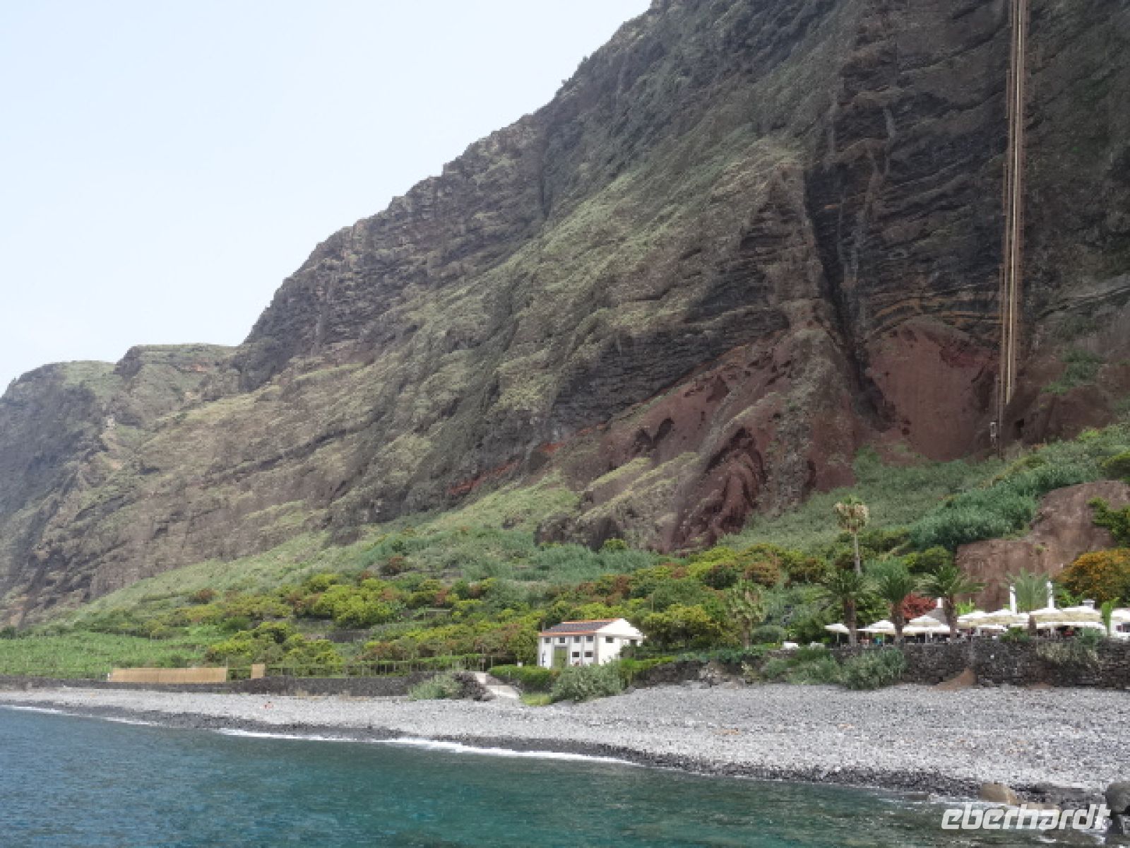 Unweit des Kaps befindet sich der ehemalige Bauernhof "Faja dos Padres". Früher konnte man diese Stelle der Insel nur mit einem Boot erreichen. Die heutigen Besitzer bauten deshalb eine Seilbahn. Sie brachte uns sicher und bequem 300 Meter hinab ans Meer. Angekommen eröffnete sich für uns eine neue Welt. Umgeben von massiven Felswänden auf der einen Seite und dem Meer auf der anderen Seite. Dazwischen ein Garten Eden mit allen bekannten exotischen Früchten sowie der Malsavia Traube für den hauseigenen Madeira Wein - natürlich durfte eine Probe nicht fehlen - wir fühlten uns wie im Paradies. In dieser bezaubernden Atmosphäre genossen wir ein exzellentes Mittagessen. Bei angeregten Gesprächen verging die Zeit wieder wie im Fluge.