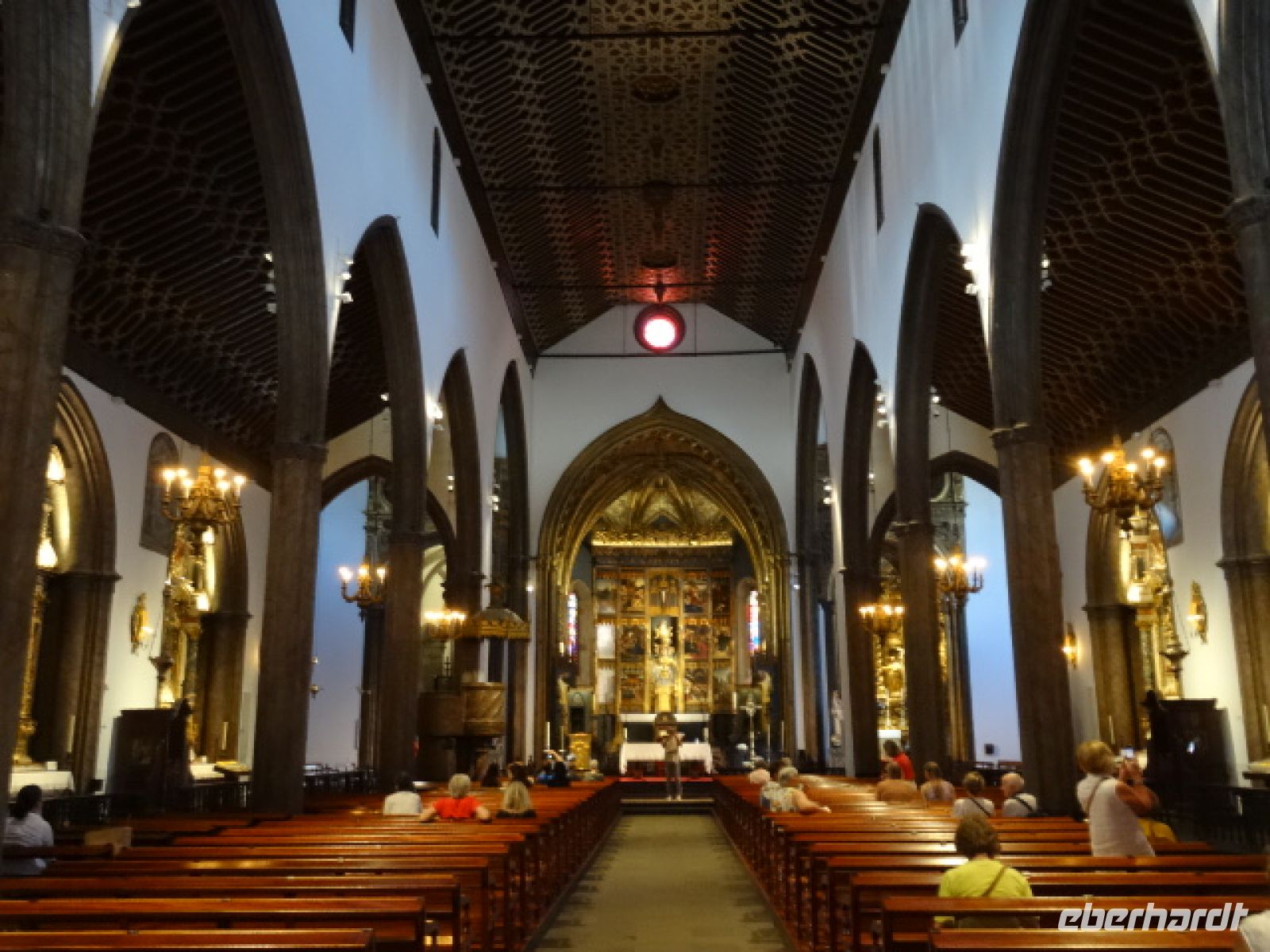 Weiter dem "Broadway" von Funchal entlang laufend, erreichten wir die Kathedrale Se. Sie ist die Hauptkirche des Bistums von Funchal und wurde im Jahre 1514 eingeweiht. Ihre charakteristischen Merkmale sind das manuelnische Hauptportal, die Holzdecke im spanisch - arabischen Stil sowie das am Eingang sich befindende Taufbecken, da man die Kirche nicht ungetauft betreten soll. Auf unserem weiteren Weg gelangten wir zum fast quadratisch angelegten Platz "Praca do Municipio".mit dem Rathaus von Funchal. Unmittelbar neben dem Rathaus steht die Jesuitenkirche des heiligen Johannes. Der heilige Johannes ist der beliebteste Heilige Portugals, weil er sich für die Armen und Gebrechlichen einsetzte. Dafür dankend schufen seine Schöpfer im 17. Jahrhundert die best dekorierteste Kirche der Insel. Der Prunk im Inneren diese Kirchenhauses verzauberte unsere Sinne. Apropos Sinne - nun war langsam die Zeit gekommen für die Mittagspause.