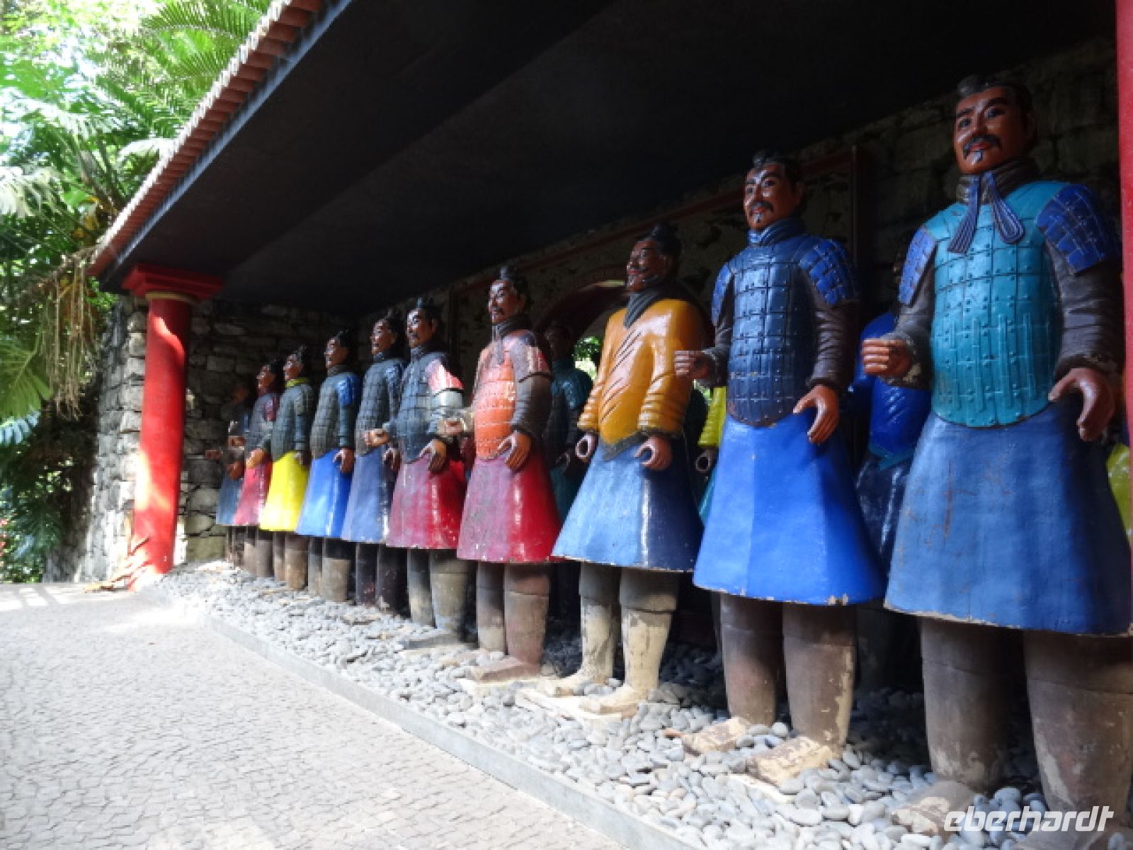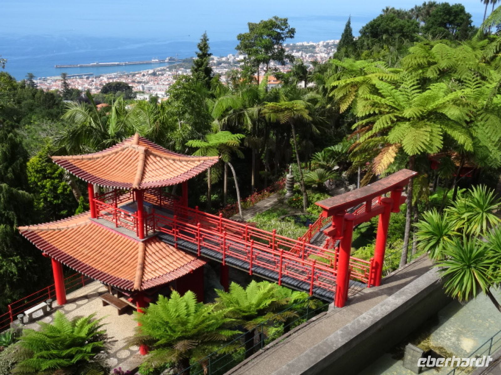 Unser heutiger Tag begann wieder zunächst mit einer Busfahrt hinab nach Funchal, um von dort aus mit der Seilbahn hinauf nach Monte zu fahren. Was für ein berauschendes Erlebnis, die auf einem Steilhang liegende Hauptstadt der Insel, eingerahmt vom blau des Atlantiks, aus der Vogelperspektive zu sehen. Wir genossen die natürliche Schönheit Madeiras und den Verlauf der Reliefformen auf einer Fahrtstreckenlänge von 3173 Metern mit einem Höhenunterschied von 560 Metern bei einer Fahrtzeit von 15 Minuten. Angekommen befand sich gleich links der Eingang zum Tropischen Garten "Monte Palace" - unserem heutigen Ziel. Dieser Garten erstreckt sich über eine Fläche von 70000 Quadratmetern und ist mit exotischen Pflanzen bestückt, deren Herkunft aus allen Kontinenten stammen und sich harmonisch mit Pflanzen der einheimischen Flora ergänzen. Wir besichtigten zunächst im "Museu Monte Palace" eine Sammlung zeitgenössischer Skulpturen und Bilder sowie im Erdgeschoss eine beeindruckende Ausstellung von Mineralien und Edelsteinen. Auf unseren Wegen durch den Park konnten wir immer wieder Wappen, Skulpturen, Pagoden, Terracotta-Arbeiten und Nischen bestaunen, welche harmonisch in die üppige Vegetation eingebunden waren. Beeindruckend die großen Koi - Fischteiche mit ihren zauberhaften Farbreichtum, das Kunstwerk über das "Abenteuer der Portugiesen in Japan" sowie die 40 Kachelbilder zur Geschichte Portugals = die zweitgrößte Sammlung von Azulejos (= Kacheln) des Landes. Die beiden orientalischen Gärten waren besonders sehenswert. Zeigen sie doch die Achtung und den Respekt vor der Kultur Japans und Chinas sowie die einzigartige Verbindung dieser Kulturen mit der Natur. Normalerweise kann man sich den ganzen Tag in diesem einmaligen botanischen Garten aufhalten, denn es gibt so viel zu sehen. Aber wie heißt es doch bekanntlich: "Wir wären so gern noch geblieben...", doch wir liefen weiter zum Wahrzeichen von Monte. Es ist die Wallfahrtskirche "Nossa Senhora do Monte" = Kirche der lieben Frau von dem Berg". Der Legende nach fand an dieser Stelle die kleine Eva eine Puppe, welche ihr von der heiligen Maria geschenkt wurde. Aus diesem Grund ist die Kirche der Mutter Gottes gewidmet und gleichzeitig Schutzpatronin der Insel. Hier ist auch der letzte österreichische Kaiser "Karl der Erste" begraben. Vor der Kirche befindet sich der Start für die zwei Kilometer lange Schlittenfahrt von Monte nach Funchal. Mit Hilfe der kräftigen Korbschlittenfahrer wagten die meisten Gäste die "rasante" Fahrt -vorbei an unserem Hotel- hinab nach Funchal und wurden dafür mit viel Spaß belohnt.