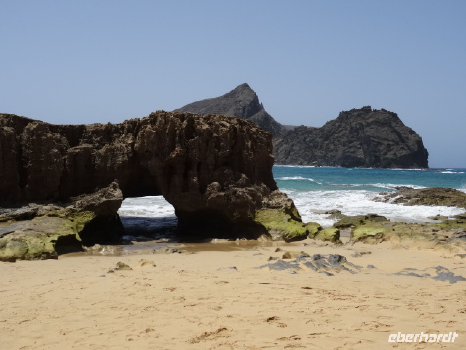 Gerade mal 6 Kilometer breit und 11 Kilometer lang ist dieses kleine Juwel. Vom höchsten Berg der Kleinen Schwester Madeiras (= 517 Meter) kann man leicht die größte Attraktion der Insel überblicken: eine geschützte Bucht mit einem fast 9 Kilometer langen, feinen gelben Sandstrand.