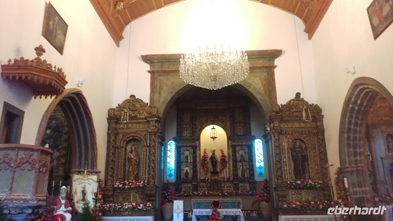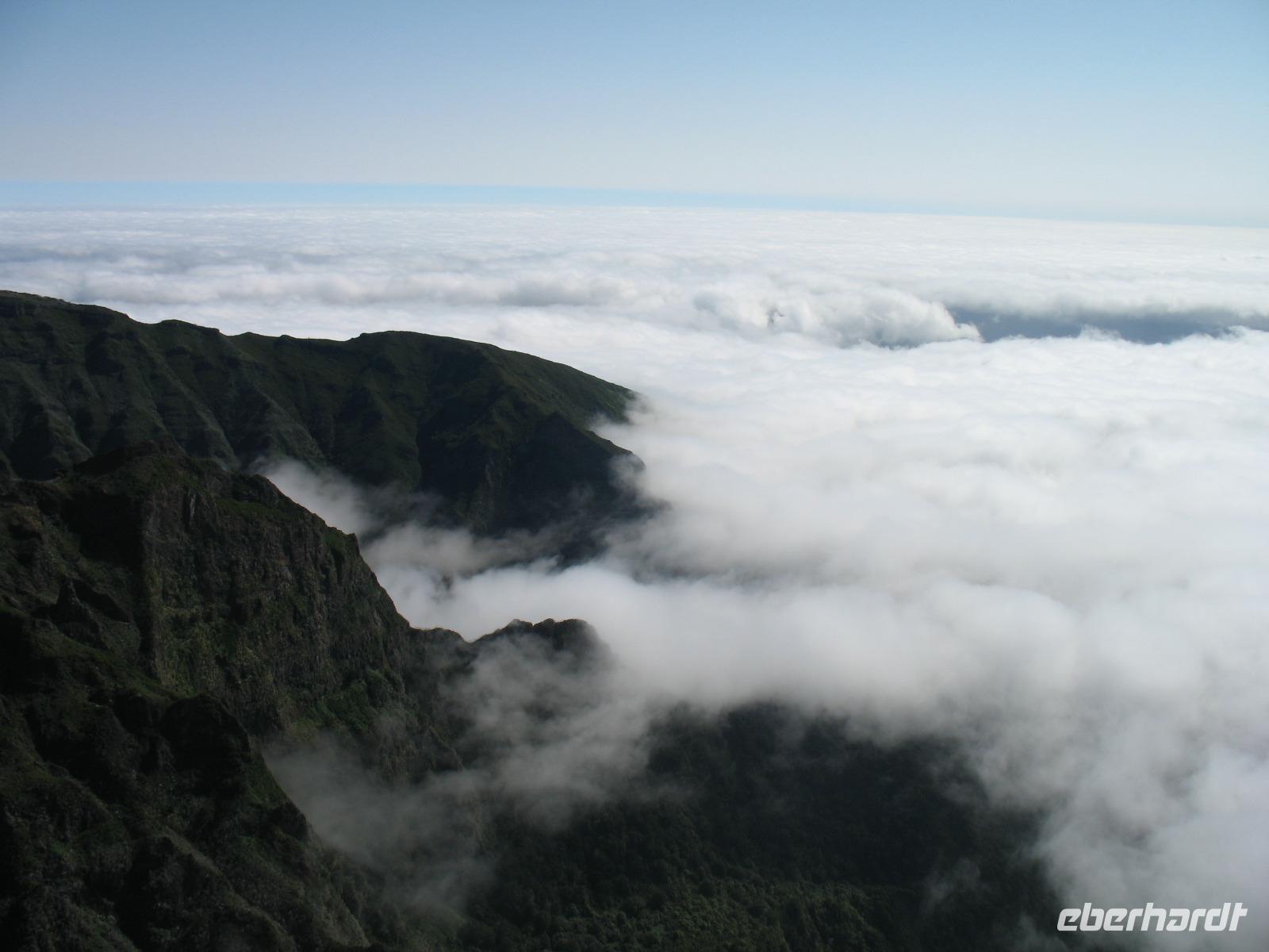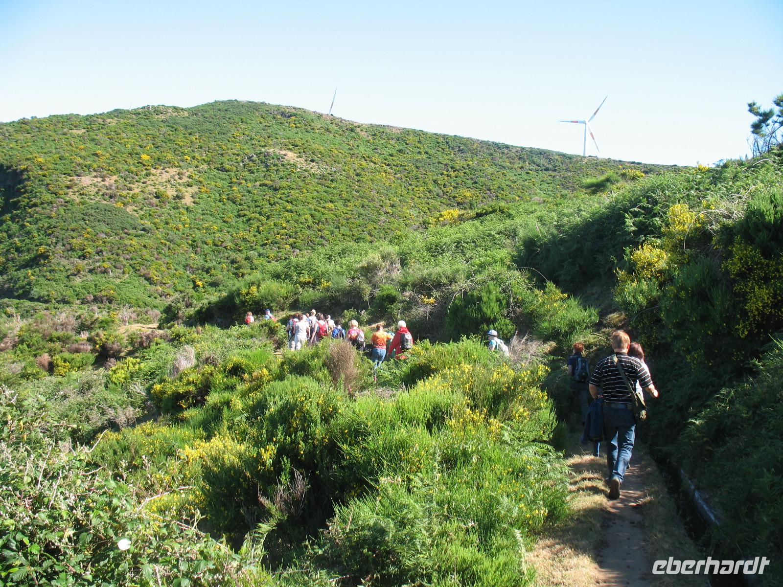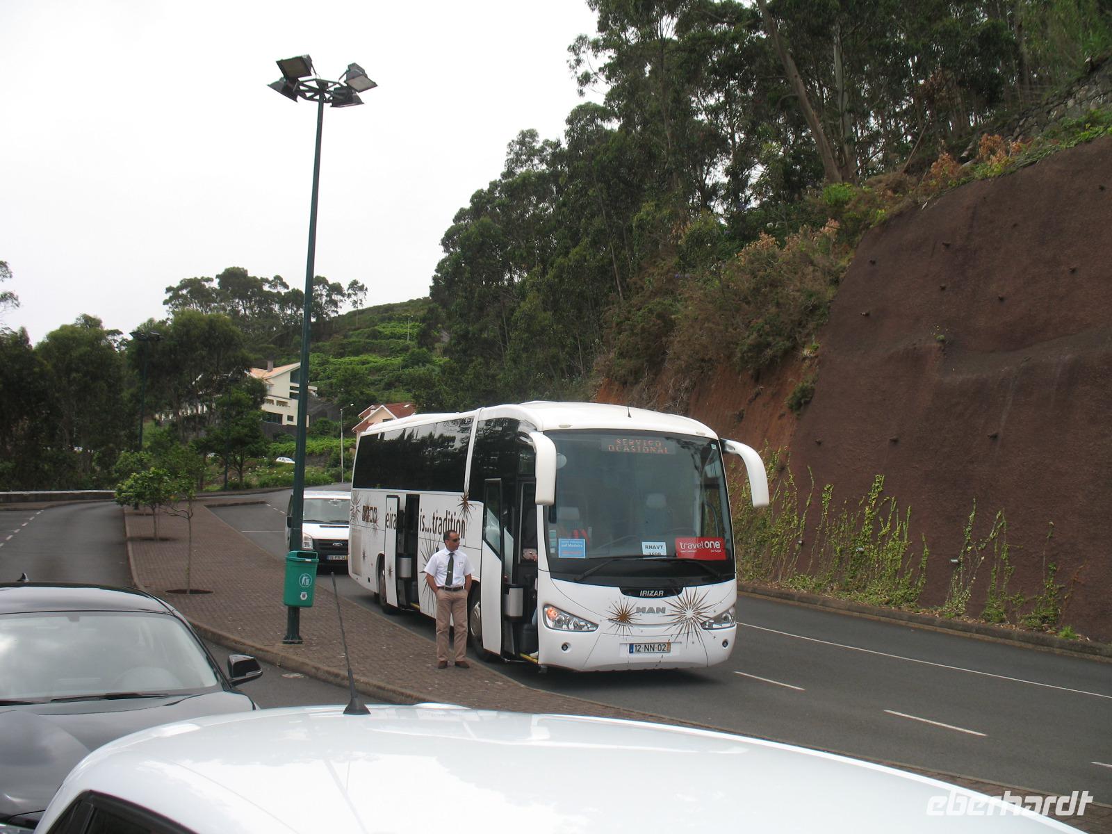 In unserer ersten Nacht auf Madeira bekommen wir ausreichend Schlaf und nach einem reichhaltigen Frühstück starten wir zur ersten Etappe unserer spannenden Reise. Wir werden von Silvia und unserem Busfahrer Anastácio abgeholt, um zum Zentrum der Korbflechtkunst nach Camacha zu fahren und die Korbflechter bei ihrer Arbeit zu bestaunen. Silvia und Anastácio werden uns auf unserer abenteuerlichen Reise begleiten und uns ihre wunderschöne Blumeninsel zeigen. Camacha ist ebenfalls eine Gemeinde von Santa Cruz und sie liegt rund 700 Meter hoch an der Verbindungsstraße der Hauptstadt Funchal mit Santo António da Serra. Nach unserem Besuch in der Korbflechterei schauen wir uns die moderne 1997 eingeweihte Pfarrkirche (Neue Kirche) an. Gewidmet wurde sie dem Heiligen "São Lourenço". Auf dem Platz "Largo da Achada" in Camacha erinnert eine Gedenktafel an das 1875 stattgefundene erste Fußballspiel in Portugal. Dieser kleine Ort ist zudem für die berühmteste Folklore-Gruppe der Insel bekannt, die 1948 gegründete "Folclórico da Casa do Povo da Camacha". Sie tragen auch die typische Tracht der Insel. Im Jahre 1933 wurde der Beschluss gefasst, dass alle Blumenverkäuferinnen und Kobschlittenfahrer eine landestypische Tracht tragen sollen. Die Frauen ziehen eine weiße Bluse, einen buntgestreiften Rock, eine buntbestickte Weste und ein rotes Bolero-Jäckchen an. Sie tragen eine blaue Kappe mit einem Zipfel, die "Carapuça Regional". Wenn ein Mann oder eine Frau ledig ist, dann muss dieser Zipfel stehen :-) Bei dem Satz geht ein Lachen durch den ganzen Bus ;-) Des Weiteren laufen sie in roten aus gegerbtem Kuhleder hergestellten Stiefeln, bekannt als "Botachas" oder "Bota-Chã". Wir werden morgen in der Markthalle in Funchal die Blumenverkäuferinnen auch in ihrer typischen Tracht sehen :-) Die Männer kleiden sich mit einer weißen kurzen Hose, dazu ein weißes Hemd, eine blaue oder braune Weste mit einem kleinen getrockneten lackierten Kürbis dran. Es gibt noch weitere Trachten, zum Beispiel eine mit langem Rock im Blumenmuster und ein Tuch auf dem Kopf für die Frauen als Schutz vor der Sonne. Nun folgt auch schon der nächste Programmpunkt, nämlich der Pico do Arieiro. Während der Fahrt sehen wir unter anderem Hortensien, Mittagsblumen, Agapanthus, Myrte "Myrtus communis", Ginster, Distel und Bärenklau "Acanthus mollis". Je nach Jahreszeit sind Avocado-Bäume, Silber-Akazien "Acacia dealbata" (oder auch Falsche Mimose), Anone-Bäume mit der Frucht Cherimoya (oder auch Ochsenherz, Tutti-Frutti-Frucht, Zuckerapfel oder Zimtapfel genannt), Zuckerrohr, Mango, Papaya, Kaffeebohnen oder Feigen sichtbar. Die fünf wichtigsten Farben der Insel sind orange, weiß, grün, blau und schwarz. Bei unserer Ankunft auf dem mit 1818 Metern drittgrößten Berg Madeiras, den Pico do Arieiro, haben wir herrlichem Sonnenschein mit guter Fernsicht und auch ein wenig Nebel. Das Besondere dieses Berges ist, dass nur er gegenüber den zwei höheren Bergen Madeiras, dem Pico Ruivo mit 1861 Metern und dem Pico das Torres mit 1851 Metern, über eine befahrbare Straße mit dem Bus erreichbar ist. Anschließend fahren wir weiter nach Ribeiro Frio, wo wir zuerst die Forellenzucht "Posto Florestal Ribeiro Frio" besuchen. Dann wandern wir den rund 3,5 Kilometer ebenen Weg Vereda dos Balcões durch dichten Urwald und an einer Levada entlang zum Aussichtspunkt Balcões. Levadas sind künstlich angelegte Kanäle, um Regenwasser aus dem niederschlagsreicheren Norden zu den südlichen landwirtschaftlichen Anbaugebieten zu leiten. Bei unserer tollen Wanderungen sehen wir zum Beispiel Lorbeerbäume, Farne, Usnea barbata (Bartflechte), Douglasien, Koniferen, Thuja (Lebensbäume), Girlandenblume (auch als Falscher Ingwer bezeichnet) oder Yucca Palme. Die Kerne der Lupinen (bekannt als Feigenbohne sowie Wolfsbohne) werden von den Madeirensern zuerst in kaltes Wasser getaucht, dann mit viel Salz gekocht und zuletzt wieder in kaltes Wasser mit Salz, Knoblauch und Petersilie gegeben. Wenn zum Beispiel in einem Lokal Bier bestellt wird, gibt es diese Lupinen-Kerne dazu, um auch ja noch mehr Bier zu trinken *grins* Lupinen-Kerne sind gelbe Bohnen, sie sind zu schälen und dann zu essen - Eine Empfehlung von Silvia ;-) Rund eine Stunde später genießen wir alle zusammen in der "Snack, Bar & Restaurant Faisca" unseren ersten leckeren "Poncha" auf Madeira :-) Poncha setzt sich zu je einem Drittel aus dem Zuckerrohrschnaps "Aguardente de cana", Honig und Zitronensaft zusammen. Natürlich gibt es vom Poncha verschiedene Varianten, klassisch mit Zitrone, aber auch mit Maracuja oder Orange. Im Anschluss geht es auch schon zur Mittagspause ins Restaurant "Casa Das Flores". Wir lassen es uns gut gehen unter anderem bei einer leckeren Fischsuppe oder einer tollen Tomatensuppe mit pochiertem Ei. Vorzüglich ist aber auch das Thunfisch-Steak oder der Thunfisch-Salat. Die nächste Etappe des Tages ist der wunderschöne Ort Santana mit seinen für Madeira bekannten mit Weizenstroh bedeckten Bauernhäuschen. Unterwegs haben wir noch einen tollen kurzen Foto-Stopp in Ponta de São Lourenço mit Blick auf den Penha de Águia (Adlerfelsen), hier würden wir gern länger verweilen :-) Der Name Santana kommt von heiliger Santa Anna, der Mutter von Maria. Dieses Örtchen ist sowohl eine Cidade (Stadt) als auch Concelho (Kreis). Wir besichtigen die strohbedeckten kleinen Häuser "Casas de Colmo" und schauen uns nach Souveniren für unsere geliebten Daheimgebliebenen um. Was sind die typischen Früchte der Insel? Dazu gehört beispielsweise die Paradies-Frucht, auch Philodendron-Frucht oder Ananas-Banane genannt. Sie bezeichnen die Früchte der Monstera deliciosa (Köstliches Fensterblatt). Ebenso typisch für die Insel ist die Pipinella (auch Chayote, Chuchu oder Birnengemüse genannt). Den heutigen Abschuss bildet ein Foto-Stopp am Pico da Facho. Hier haben wir einen tollen Blick auf die Ostspitze Madeiras. Diese schmale Landzunge bezeichnen die Ins
