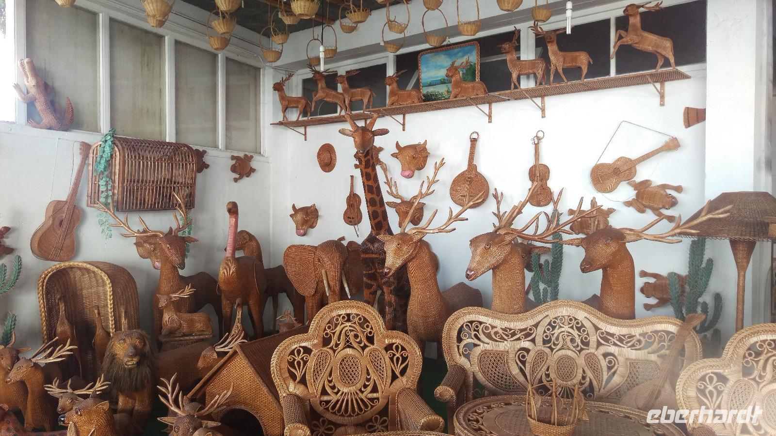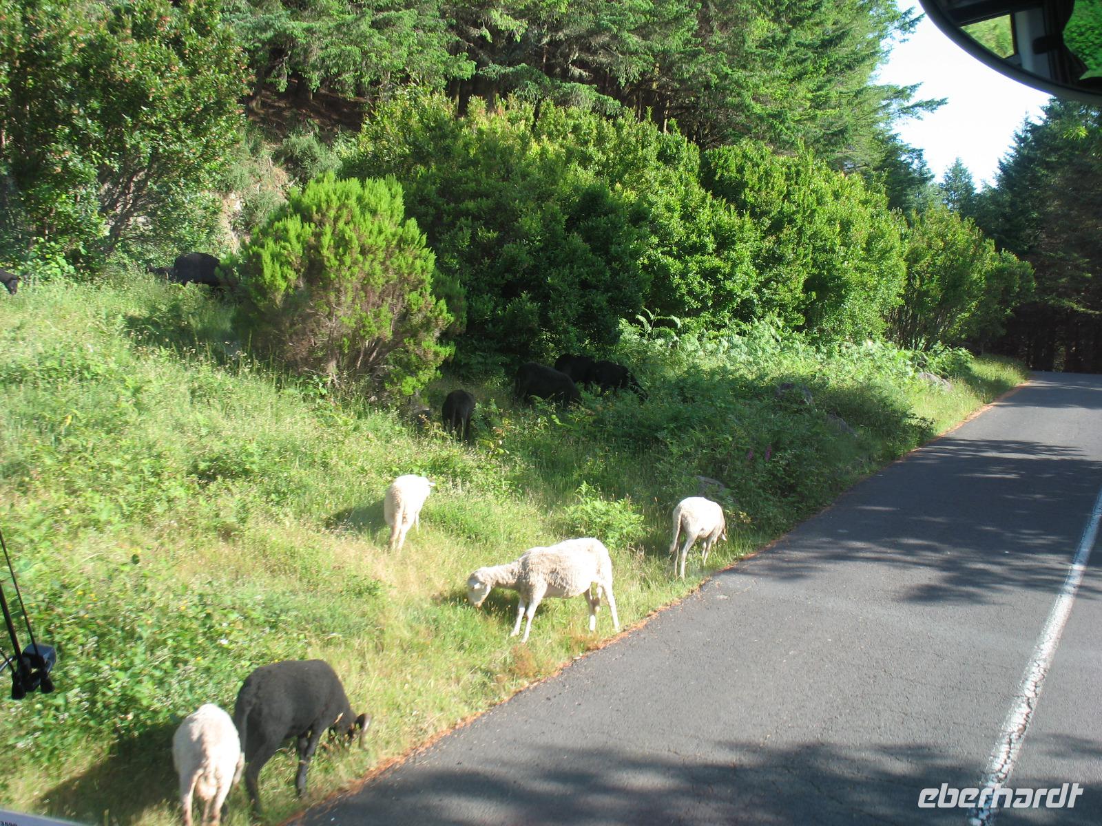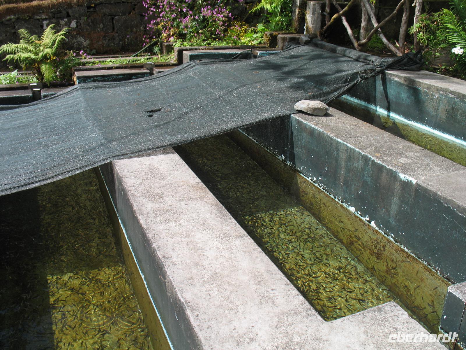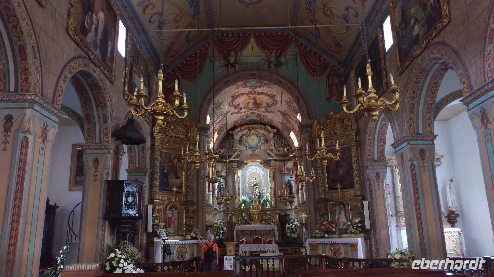 In unserer ersten Nacht auf Madeira bekommen wir ausreichend Schlaf und nach einem reichhaltigen Frühstück starten wir zur ersten Etappe unserer spannenden Reise. Wir werden von Silvia und unserem Busfahrer Anastácio abgeholt, um zum Zentrum der Korbflechtkunst nach Camacha zu fahren und die Korbflechter bei ihrer Arbeit zu bestaunen. Silvia und Anastácio werden uns auf unserer abenteuerlichen Reise begleiten und uns ihre wunderschöne Blumeninsel zeigen. Camacha ist ebenfalls eine Gemeinde von Santa Cruz und sie liegt rund 700 Meter hoch an der Verbindungsstraße der Hauptstadt Funchal mit Santo António da Serra. Nach unserem Besuch in der Korbflechterei schauen wir uns die moderne 1997 eingeweihte Pfarrkirche (Neue Kirche) an. Gewidmet wurde sie dem Heiligen "São Lourenço". Auf dem Platz "Largo da Achada" in Camacha erinnert eine Gedenktafel an das 1875 stattgefundene erste Fußballspiel in Portugal. Dieser kleine Ort ist zudem für die berühmteste Folklore-Gruppe der Insel bekannt, die 1948 gegründete "Folclórico da Casa do Povo da Camacha". Sie tragen auch die typische Tracht der Insel. Im Jahre 1933 wurde der Beschluss gefasst, dass alle Blumenverkäuferinnen und Kobschlittenfahrer eine landestypische Tracht tragen sollen. Die Frauen ziehen eine weiße Bluse, einen buntgestreiften Rock, eine buntbestickte Weste und ein rotes Bolero-Jäckchen an. Sie tragen eine blaue Kappe mit einem Zipfel, die "Carapuça Regional". Wenn ein Mann oder eine Frau ledig ist, dann muss dieser Zipfel stehen :-) Bei dem Satz geht ein Lachen durch den ganzen Bus ;-) Des Weiteren laufen sie in roten aus gegerbtem Kuhleder hergestellten Stiefeln, bekannt als "Botachas" oder "Bota-Chã". Wir werden morgen in der Markthalle in Funchal die Blumenverkäuferinnen auch in ihrer typischen Tracht sehen :-) Die Männer kleiden sich mit einer weißen kurzen Hose, dazu ein weißes Hemd, eine blaue oder braune Weste mit einem kleinen getrockneten lackierten Kürbis dran. Es gibt noch weitere Trachten, zum Beispiel eine mit langem Rock im Blumenmuster und ein Tuch auf dem Kopf für die Frauen als Schutz vor der Sonne. Nun folgt auch schon der nächste Programmpunkt, nämlich der Pico do Arieiro. Während der Fahrt sehen wir unter anderem Hortensien, Mittagsblumen, Agapanthus, Myrte "Myrtus communis", Ginster, Distel und Bärenklau "Acanthus mollis". Je nach Jahreszeit sind Avocado-Bäume, Silber-Akazien "Acacia dealbata" (oder auch Falsche Mimose), Anone-Bäume mit der Frucht Cherimoya (oder auch Ochsenherz, Tutti-Frutti-Frucht, Zuckerapfel oder Zimtapfel genannt), Zuckerrohr, Mango, Papaya, Kaffeebohnen oder Feigen sichtbar. Die fünf wichtigsten Farben der Insel sind orange, weiß, grün, blau und schwarz. Bei unserer Ankunft auf dem mit 1818 Metern drittgrößten Berg Madeiras, den Pico do Arieiro, haben wir herrlichem Sonnenschein mit guter Fernsicht und auch ein wenig Nebel. Das Besondere dieses Berges ist, dass nur er gegenüber den zwei höheren Bergen Madeiras, dem Pico Ruivo mit 1861 Metern und dem Pico das Torres mit 1851 Metern, über eine befahrbare Straße mit dem Bus erreichbar ist. Anschließend fahren wir weiter nach Ribeiro Frio, wo wir zuerst die Forellenzucht "Posto Florestal Ribeiro Frio" besuchen. Dann wandern wir den rund 3,5 Kilometer ebenen Weg Vereda dos Balcões durch dichten Urwald und an einer Levada entlang zum Aussichtspunkt Balcões. Levadas sind künstlich angelegte Kanäle, um Regenwasser aus dem niederschlagsreicheren Norden zu den südlichen landwirtschaftlichen Anbaugebieten zu leiten. Bei unserer tollen Wanderungen sehen wir zum Beispiel Lorbeerbäume, Farne, Usnea barbata (Bartflechte), Douglasien, Koniferen, Thuja (Lebensbäume), Girlandenblume (auch als Falscher Ingwer bezeichnet) oder Yucca Palme. Die Kerne der Lupinen (bekannt als Feigenbohne sowie Wolfsbohne) werden von den Madeirensern zuerst in kaltes Wasser getaucht, dann mit viel Salz gekocht und zuletzt wieder in kaltes Wasser mit Salz, Knoblauch und Petersilie gegeben. Wenn zum Beispiel in einem Lokal Bier bestellt wird, gibt es diese Lupinen-Kerne dazu, um auch ja noch mehr Bier zu trinken *grins* Lupinen-Kerne sind gelbe Bohnen, sie sind zu schälen und dann zu essen - Eine Empfehlung von Silvia ;-) Rund eine Stunde später genießen wir alle zusammen in der "Snack, Bar & Restaurant Faisca" unseren ersten leckeren "Poncha" auf Madeira :-) Poncha setzt sich zu je einem Drittel aus dem Zuckerrohrschnaps "Aguardente de cana", Honig und Zitronensaft zusammen. Natürlich gibt es vom Poncha verschiedene Varianten, klassisch mit Zitrone, aber auch mit Maracuja oder Orange. Im Anschluss geht es auch schon zur Mittagspause ins Restaurant "Casa Das Flores". Wir lassen es uns gut gehen unter anderem bei einer leckeren Fischsuppe oder einer tollen Tomatensuppe mit pochiertem Ei. Vorzüglich ist aber auch das Thunfisch-Steak oder der Thunfisch-Salat. Die nächste Etappe des Tages ist der wunderschöne Ort Santana mit seinen für Madeira bekannten mit Weizenstroh bedeckten Bauernhäuschen. Unterwegs haben wir noch einen tollen kurzen Foto-Stopp in Ponta de São Lourenço mit Blick auf den Penha de Águia (Adlerfelsen), hier würden wir gern länger verweilen :-) Der Name Santana kommt von heiliger Santa Anna, der Mutter von Maria. Dieses Örtchen ist sowohl eine Cidade (Stadt) als auch Concelho (Kreis). Wir besichtigen die strohbedeckten kleinen Häuser "Casas de Colmo" und schauen uns nach Souveniren für unsere geliebten Daheimgebliebenen um. Was sind die typischen Früchte der Insel? Dazu gehört beispielsweise die Paradies-Frucht, auch Philodendron-Frucht oder Ananas-Banane genannt. Sie bezeichnen die Früchte der Monstera deliciosa (Köstliches Fensterblatt). Ebenso typisch für die Insel ist die Pipinella (auch Chayote, Chuchu oder Birnengemüse genannt). Den heutigen Abschuss bildet ein Foto-Stopp am Pico da Facho. Hier haben wir einen tollen Blick auf die Ostspitze Madeiras. Diese schmale Landzunge bezeichnen die Ins