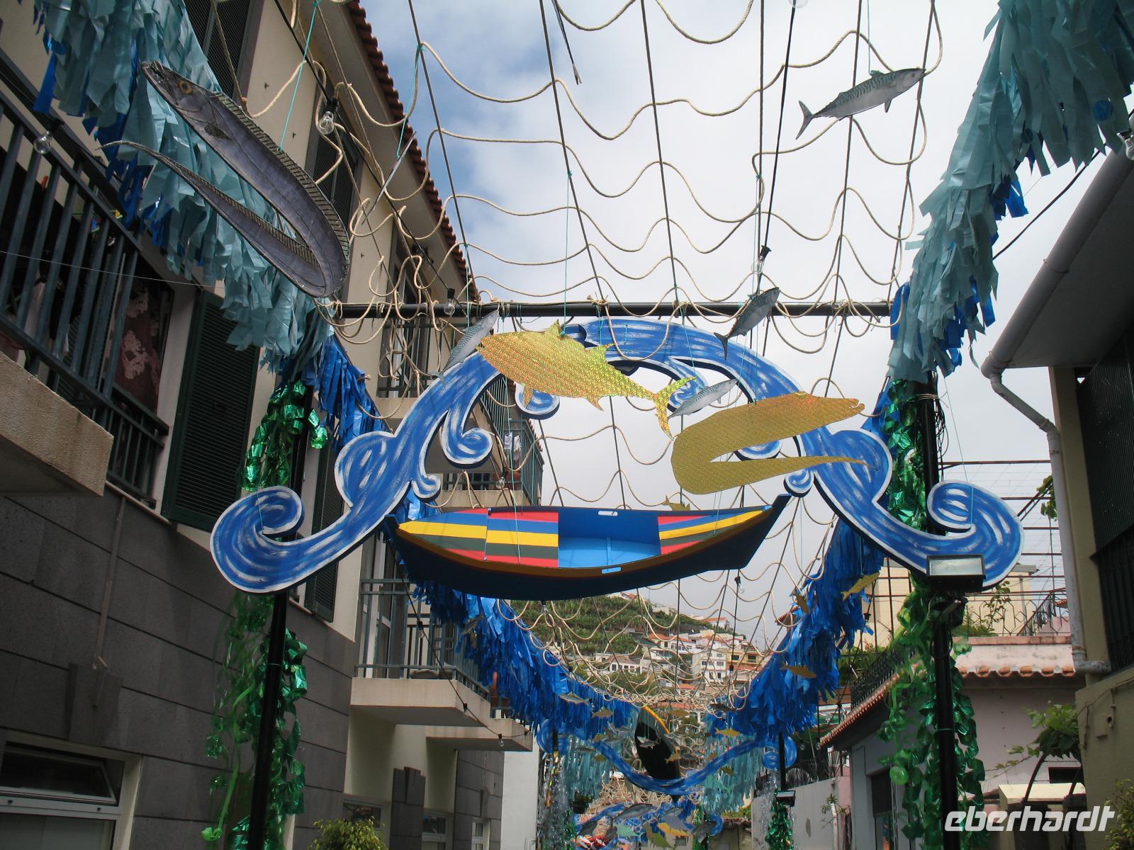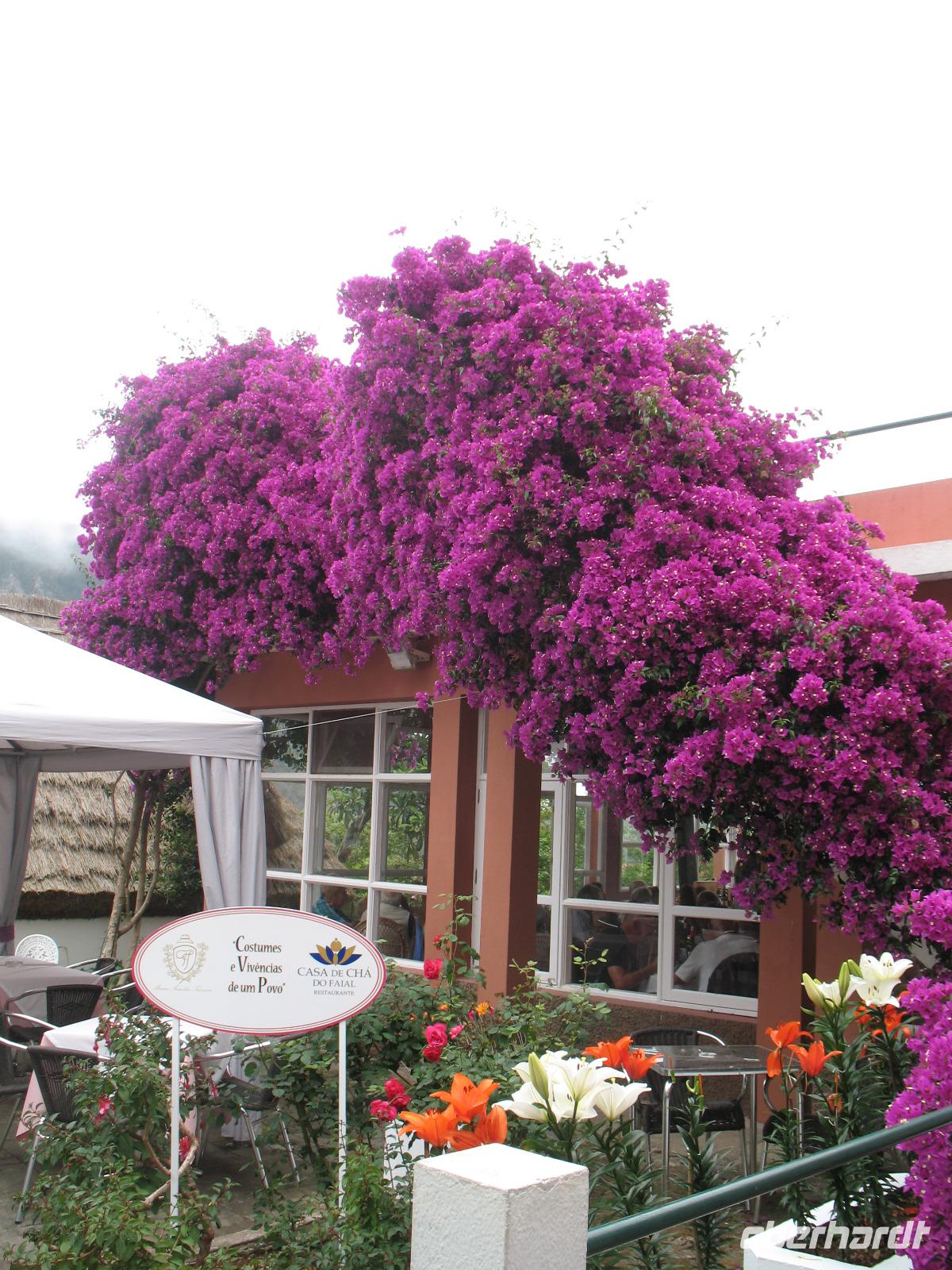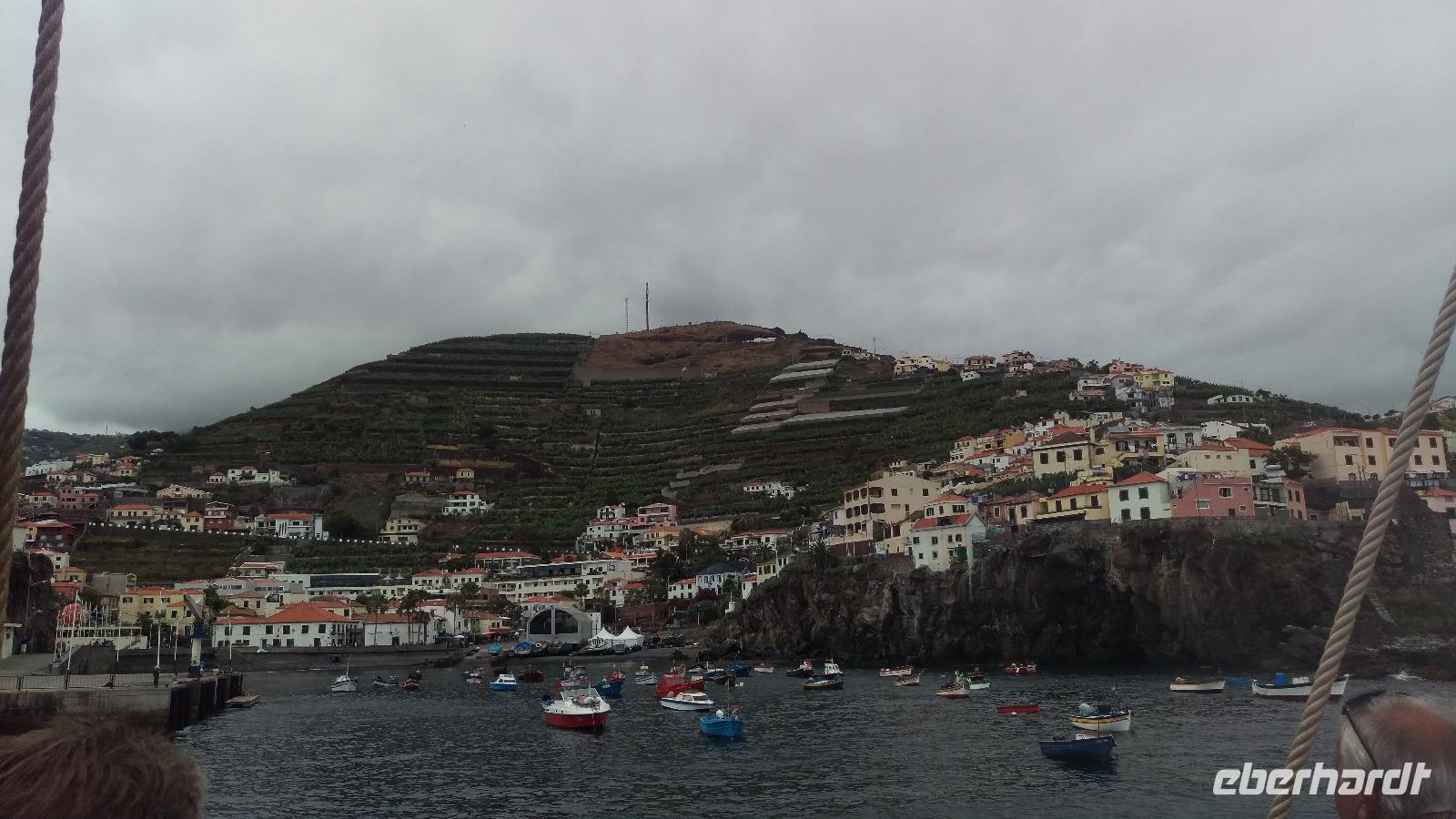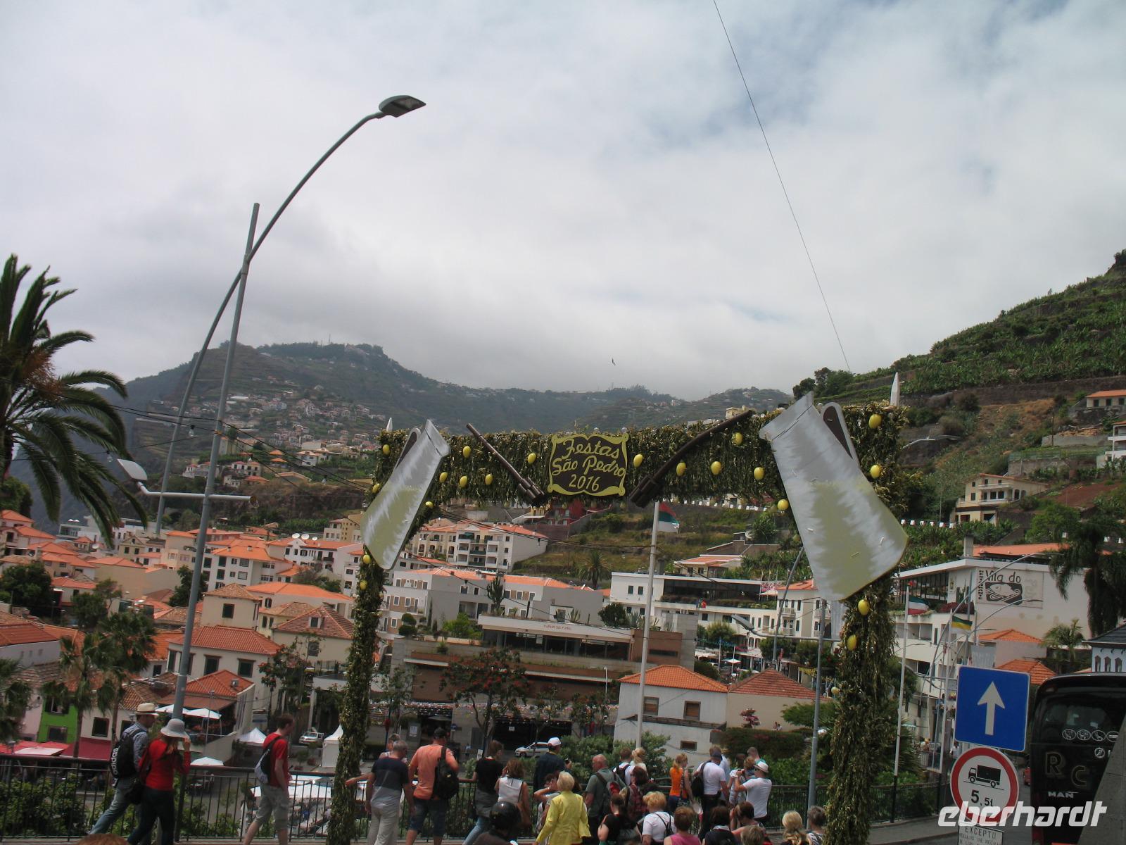 Nach einem ausgiebigen Frühstück starten wir zur nächsten Etappe unserer aufregenden Reise - Die "Mercado dos Lavradores", also die Markthalle und der Bauernmarkt in Funchal. Während der Fahrt erhalten wir von Silvia sehr viele Informationen zu Madeira. Interessant ist vielleicht auch, dass Kaiserin Sissi Madeira oftmals besucht und im vom Schotten William Reid 1894 errichteten pompösen Hotel übernachtet hatte. Im Casino-Park befindet sich ein Denkmal ihr zu Ehren. Zuerst reisen wir nach Funchal zum schönem Botanischen Garten "Jardim Botânico". Wir erfahren weitere Details und Neuigkeiten zu den unterschiedlichsten Pflanzen und Bäumen durch unsere fachkundige Reiseleiterin Silvia. Zu den typischen Pflanzen der Insel zählen die Strelitzia "Strelitziaceae", auch als Paradiesvogelblume bekannt, und natürlich der als "Stolz von Madeira" bekannte Madeira-Natternkopf "Echium candicans". Der Gehweg im Eingangsbereich besteht aus kleinen Kieselsteinen vom Meer. Der Botanische Garten teilt sich in fünf Bereiche. Dazu gehören der Baumgarten, der Loiro Park und die einzelnen Bereiche einheimischer Pflanzen, dann der Sukkulenten sowie ein Teil mit Anbaupflanzen und tropischen Pflanzen. Beispielsweise werden uns Tränendes Herz "Lamprocapnos spectabilis" (oder auch Männerherz), Eisbegonien, Blauregen (oder Wisteria), Madonnen-Lilie "Lilium candidum", Bromelien, Rhododendron, Salbei "Salvia", Löwenschwanz "Leonurus cardiaca" (auch als Echte Herzgespann oder Herzspannkraut bekannt), Frauenschuh, Elchfarn, Wurzelfarn, Cordyline, Engelstrompeten (oder Brugmansia), Honigbaum "Greyia sutherlandii", Elefantenfuß, Falscher Pfefferbaum, Blütenbombenbaum "Dombeya calantha", Palisanderholzbaum "Jacaranda mimosifolia", Fikus, Cassia Stolz von Bolivien, Zigarettenblümchen "Cuphea ignea", Popkornstrauch, Veilchenbaum "Tibouchina urvilleana" und Leberwurstbaum "Kigelia africana"gezeigt. Besonders niedlich schaut die Mickey-Maus-Pflanze "Ochna serrulata" aus! Silvia liebt diese Pflanze einfach, da sie wirklich wie eine kleine Maus ausschaut :-) Außerdem sehen wir einen momentan nicht blühenden Florettseidenbaum "Chorisia speciosa", aus dem Kapok zur Herstellung von Matratzen, Rettungsringen oder Schwimmwesten gewonnen wird. Nach der Führung erkunden wir diesen Garten mit seinen über 2.000 verschiedenen exotischen Pflanzen in diversen Farben auf eigene Faust :-) Dann fahren wir auch schon weiter zur 1940 eröffneten Markthalle "Marcado dos Lavradores". Silvia gibt uns auf den Weg wichtige Informationen zu Blumen, Pflanzen und Früchten. Angekommen bei der Markthalle an der Rua Brigadeiro Oudinot im historischen Zentrum bestaunen wir deren Größe und Vielfältigkeit auf 9.600 Quadratmetern mit überdachtem Verkaufsbereich, offenen Innenhof und beeindruckendem kachelverzierten Eingangsbereich. Hier können wir nicht nur Blumen, Obst und Gemüse kaufen, sondern es gibt vom Fisch über Gewürze, Kleidung, Kork und Souvenirs bis hin zum Schnaps jede Menge zu erwerben :-) Beispielsweise sehen wir wunderschöne Strelitzien, Orchideen, Rosen, Azaleen, Kamelien und Glyzinien. Des Weiteren erkennen wir landestypisches Gemüse und Früchte wie Passiflora und Pipinella wieder. Während unserer Wanderung haben wir prächtige rosa Blüten gesehen, die Blüten der "Passiflora mollissima" (Bananen-Passionsfrucht). Es gibt aber weitere verschiedene Sorten der Passiflora (Passionsblume) wie die "Passiflora edulis" oder auch die "Grenadilla" (Maracuja-Passionsfrucht). Die Händler bieten weiter Yamswurzel, Brasilianische Kirsche, Maracuja-Tomaten, Papaya und Cherimoya an. Nach dem Besuch gibt es zum Probieren für die Gäste getrocknete süße Früchte. Wir lassen uns Hibiscus-Blüten und die leckere Schale der Grapefruit schmecken. Anschließend laufen wir zur Wine Lodge "Blandy's" in Funchal, wo uns Silvia Näheres zur Herstellung des typischen Madeira-Weins erzählt. Der Alkoholgehalt liegt zwischen 17 bis 22 Prozent. Es gibt vier unterschiedliche Rebsorten, welche auf Madeira laut dem Weininstitut "Instituto Do Vinho Da Madeira" als "edel" bezeichnet werden: "Cerceal" (Säurebetont und trocken), "Verdelho" (Halbtrocken), "Boal" (Halbsüß) und "Malvasia" (Süß und üppig). Natürlich probieren wir auch den leckeren Madeira-Wein :-) Unsere Mittagspause verbringen wir im Restaurant "O Solar da Santola" mit tollem Blick auf den Hafen von Funchal. Es gibt die Wahl zwischen köstlichen Thunfisch-Salat, Gemüse-oder Fischsuppe sowie Omelette. Dazu erhalten wir als Vorspeise das uns bereits bekannte Knoblauchbrot, Wein und Wasser zum Trinken sowie einen Nachtisch. Weiterer Programmpunkt des heutigen aufregenden Tages ist die höchste Klippe Europas, nämlich der Miradouro do Cabo Girão. Wir befinden uns 580 Meter über den Meeresspiegel und durch die Glasscheiben des Skywalks können wir in die Tiefe schauen. Letztendlich besuchen wir gegen 15.30 Uhr das Fischerdörfchen Câmara de Lobos mit seinen vielen bunten Booten. Übersetzt bedeutet der Ortsname "Höhle der Mönchsrobben" und den Namen hat das Dorf von seinen Entdeckern João Gonçalves Zarco und Tristão Vaz Teixeira erhalten. Sie nannten diesen Ort Câmara de Lobos aufgrund der Gestaltung der Bucht, in welcher er liegt, und den zu jener Zeit in Vielzahl lebenden "lobos", also den Seelöwen. Heute sind kaum noch solche Robben zu sehen. Berühmtheit erlangte dieser Ort auch, da Winston Churchill ihn auf einem Gemälde verewigen ließ. Eine Gedenktafel im Ortskern erinnert an dieses Ereignis. Ebenfalls interessant könnte die Tatsache sein, dass Christoph Columbus den Nachbau der Santa Maria hier angefertigt hatte. Das Örtchen ist aufgrund des Festes "Festas de São Pedro 2016" heute bunt geschmückt, besonders interessant finden wir die Dekoration aus grünen zerschnittenen Plastikflaschen in gekringelter Form oder Waschmaschinentrommeln an einem Kabel zwischen den Häusern befestigt als Girlanden :-) Wir besichtigen die kleine Seefahrerkapelle Nossa Senho