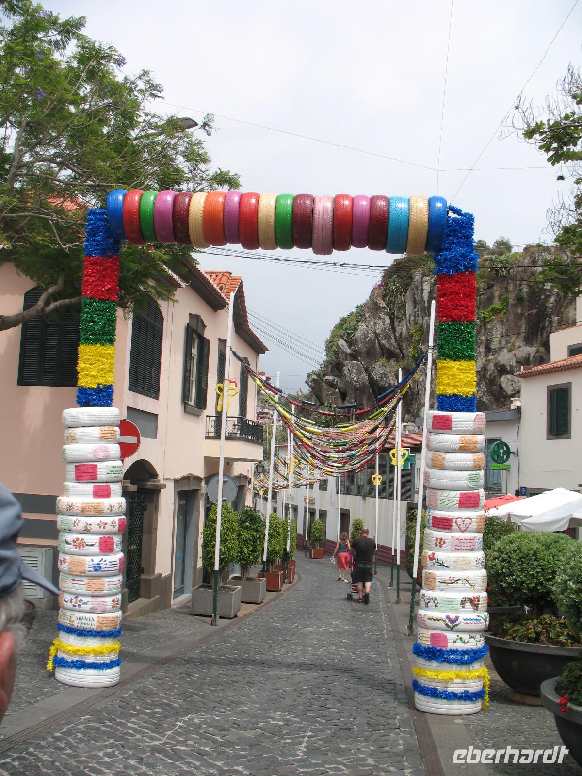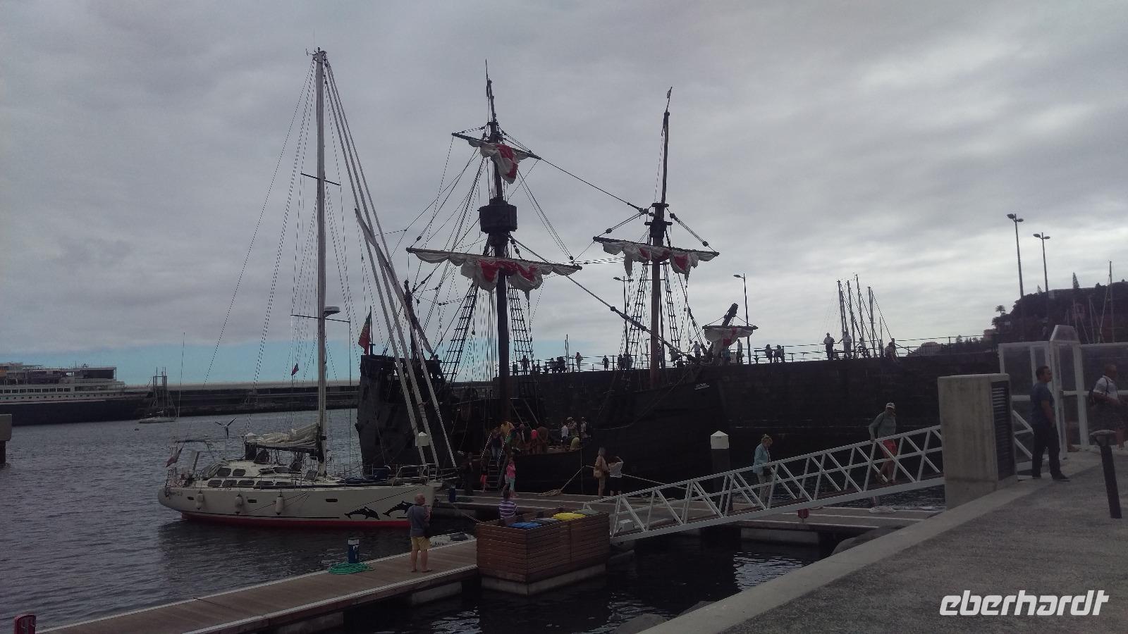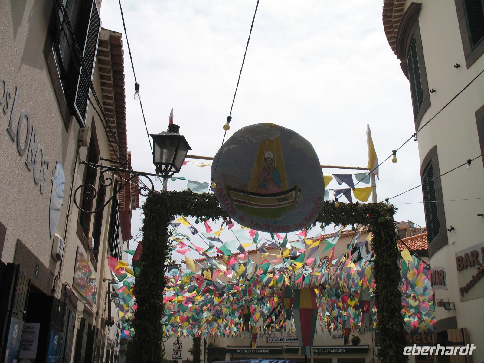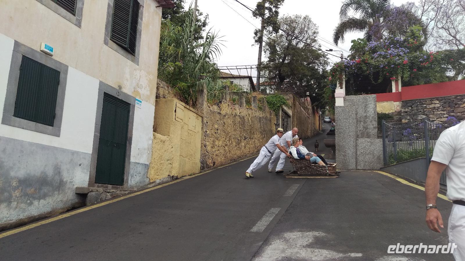 Nach einem ausgiebigen Frühstück starten wir zur nächsten Etappe unserer aufregenden Reise - Die "Mercado dos Lavradores", also die Markthalle und der Bauernmarkt in Funchal. Während der Fahrt erhalten wir von Silvia sehr viele Informationen zu Madeira. Interessant ist vielleicht auch, dass Kaiserin Sissi Madeira oftmals besucht und im vom Schotten William Reid 1894 errichteten pompösen Hotel übernachtet hatte. Im Casino-Park befindet sich ein Denkmal ihr zu Ehren. Zuerst reisen wir nach Funchal zum schönem Botanischen Garten "Jardim Botânico". Wir erfahren weitere Details und Neuigkeiten zu den unterschiedlichsten Pflanzen und Bäumen durch unsere fachkundige Reiseleiterin Silvia. Zu den typischen Pflanzen der Insel zählen die Strelitzia "Strelitziaceae", auch als Paradiesvogelblume bekannt, und natürlich der als "Stolz von Madeira" bekannte Madeira-Natternkopf "Echium candicans". Der Gehweg im Eingangsbereich besteht aus kleinen Kieselsteinen vom Meer. Der Botanische Garten teilt sich in fünf Bereiche. Dazu gehören der Baumgarten, der Loiro Park und die einzelnen Bereiche einheimischer Pflanzen, dann der Sukkulenten sowie ein Teil mit Anbaupflanzen und tropischen Pflanzen. Beispielsweise werden uns Tränendes Herz "Lamprocapnos spectabilis" (oder auch Männerherz), Eisbegonien, Blauregen (oder Wisteria), Madonnen-Lilie "Lilium candidum", Bromelien, Rhododendron, Salbei "Salvia", Löwenschwanz "Leonurus cardiaca" (auch als Echte Herzgespann oder Herzspannkraut bekannt), Frauenschuh, Elchfarn, Wurzelfarn, Cordyline, Engelstrompeten (oder Brugmansia), Honigbaum "Greyia sutherlandii", Elefantenfuß, Falscher Pfefferbaum, Blütenbombenbaum "Dombeya calantha", Palisanderholzbaum "Jacaranda mimosifolia", Fikus, Cassia Stolz von Bolivien, Zigarettenblümchen "Cuphea ignea", Popkornstrauch, Veilchenbaum "Tibouchina urvilleana" und Leberwurstbaum "Kigelia africana"gezeigt. Besonders niedlich schaut die Mickey-Maus-Pflanze "Ochna serrulata" aus! Silvia liebt diese Pflanze einfach, da sie wirklich wie eine kleine Maus ausschaut :-) Außerdem sehen wir einen momentan nicht blühenden Florettseidenbaum "Chorisia speciosa", aus dem Kapok zur Herstellung von Matratzen, Rettungsringen oder Schwimmwesten gewonnen wird. Nach der Führung erkunden wir diesen Garten mit seinen über 2.000 verschiedenen exotischen Pflanzen in diversen Farben auf eigene Faust :-) Dann fahren wir auch schon weiter zur 1940 eröffneten Markthalle "Marcado dos Lavradores". Silvia gibt uns auf den Weg wichtige Informationen zu Blumen, Pflanzen und Früchten. Angekommen bei der Markthalle an der Rua Brigadeiro Oudinot im historischen Zentrum bestaunen wir deren Größe und Vielfältigkeit auf 9.600 Quadratmetern mit überdachtem Verkaufsbereich, offenen Innenhof und beeindruckendem kachelverzierten Eingangsbereich. Hier können wir nicht nur Blumen, Obst und Gemüse kaufen, sondern es gibt vom Fisch über Gewürze, Kleidung, Kork und Souvenirs bis hin zum Schnaps jede Menge zu erwerben :-) Beispielsweise sehen wir wunderschöne Strelitzien, Orchideen, Rosen, Azaleen, Kamelien und Glyzinien. Des Weiteren erkennen wir landestypisches Gemüse und Früchte wie Passiflora und Pipinella wieder. Während unserer Wanderung haben wir prächtige rosa Blüten gesehen, die Blüten der "Passiflora mollissima" (Bananen-Passionsfrucht). Es gibt aber weitere verschiedene Sorten der Passiflora (Passionsblume) wie die "Passiflora edulis" oder auch die "Grenadilla" (Maracuja-Passionsfrucht). Die Händler bieten weiter Yamswurzel, Brasilianische Kirsche, Maracuja-Tomaten, Papaya und Cherimoya an. Nach dem Besuch gibt es zum Probieren für die Gäste getrocknete süße Früchte. Wir lassen uns Hibiscus-Blüten und die leckere Schale der Grapefruit schmecken. Anschließend laufen wir zur Wine Lodge "Blandy's" in Funchal, wo uns Silvia Näheres zur Herstellung des typischen Madeira-Weins erzählt. Der Alkoholgehalt liegt zwischen 17 bis 22 Prozent. Es gibt vier unterschiedliche Rebsorten, welche auf Madeira laut dem Weininstitut "Instituto Do Vinho Da Madeira" als "edel" bezeichnet werden: "Cerceal" (Säurebetont und trocken), "Verdelho" (Halbtrocken), "Boal" (Halbsüß) und "Malvasia" (Süß und üppig). Natürlich probieren wir auch den leckeren Madeira-Wein :-) Unsere Mittagspause verbringen wir im Restaurant "O Solar da Santola" mit tollem Blick auf den Hafen von Funchal. Es gibt die Wahl zwischen köstlichen Thunfisch-Salat, Gemüse-oder Fischsuppe sowie Omelette. Dazu erhalten wir als Vorspeise das uns bereits bekannte Knoblauchbrot, Wein und Wasser zum Trinken sowie einen Nachtisch. Weiterer Programmpunkt des heutigen aufregenden Tages ist die höchste Klippe Europas, nämlich der Miradouro do Cabo Girão. Wir befinden uns 580 Meter über den Meeresspiegel und durch die Glasscheiben des Skywalks können wir in die Tiefe schauen. Letztendlich besuchen wir gegen 15.30 Uhr das Fischerdörfchen Câmara de Lobos mit seinen vielen bunten Booten. Übersetzt bedeutet der Ortsname "Höhle der Mönchsrobben" und den Namen hat das Dorf von seinen Entdeckern João Gonçalves Zarco und Tristão Vaz Teixeira erhalten. Sie nannten diesen Ort Câmara de Lobos aufgrund der Gestaltung der Bucht, in welcher er liegt, und den zu jener Zeit in Vielzahl lebenden "lobos", also den Seelöwen. Heute sind kaum noch solche Robben zu sehen. Berühmtheit erlangte dieser Ort auch, da Winston Churchill ihn auf einem Gemälde verewigen ließ. Eine Gedenktafel im Ortskern erinnert an dieses Ereignis. Ebenfalls interessant könnte die Tatsache sein, dass Christoph Columbus den Nachbau der Santa Maria hier angefertigt hatte. Das Örtchen ist aufgrund des Festes "Festas de São Pedro 2016" heute bunt geschmückt, besonders interessant finden wir die Dekoration aus grünen zerschnittenen Plastikflaschen in gekringelter Form oder Waschmaschinentrommeln an einem Kabel zwischen den Häusern befestigt als Girlanden :-) Wir besichtigen die kleine Seefahrerkapelle Nossa Senho
