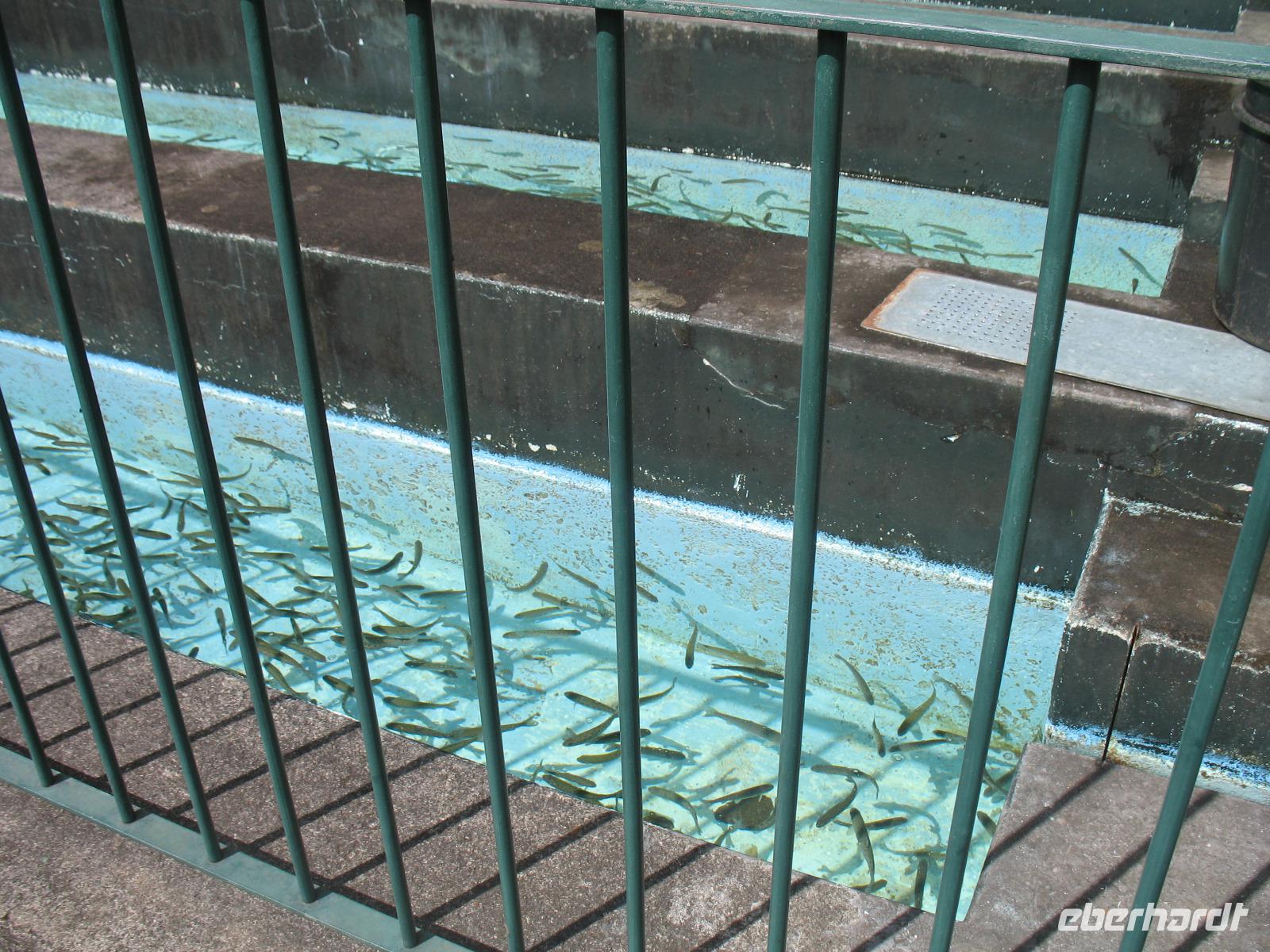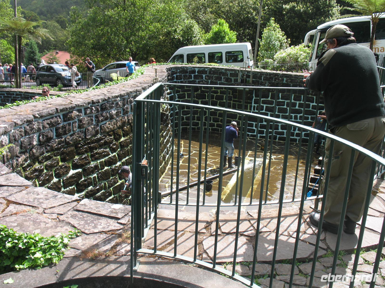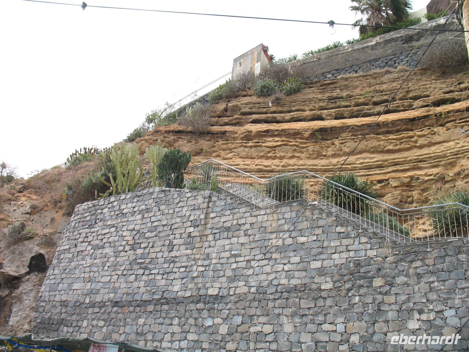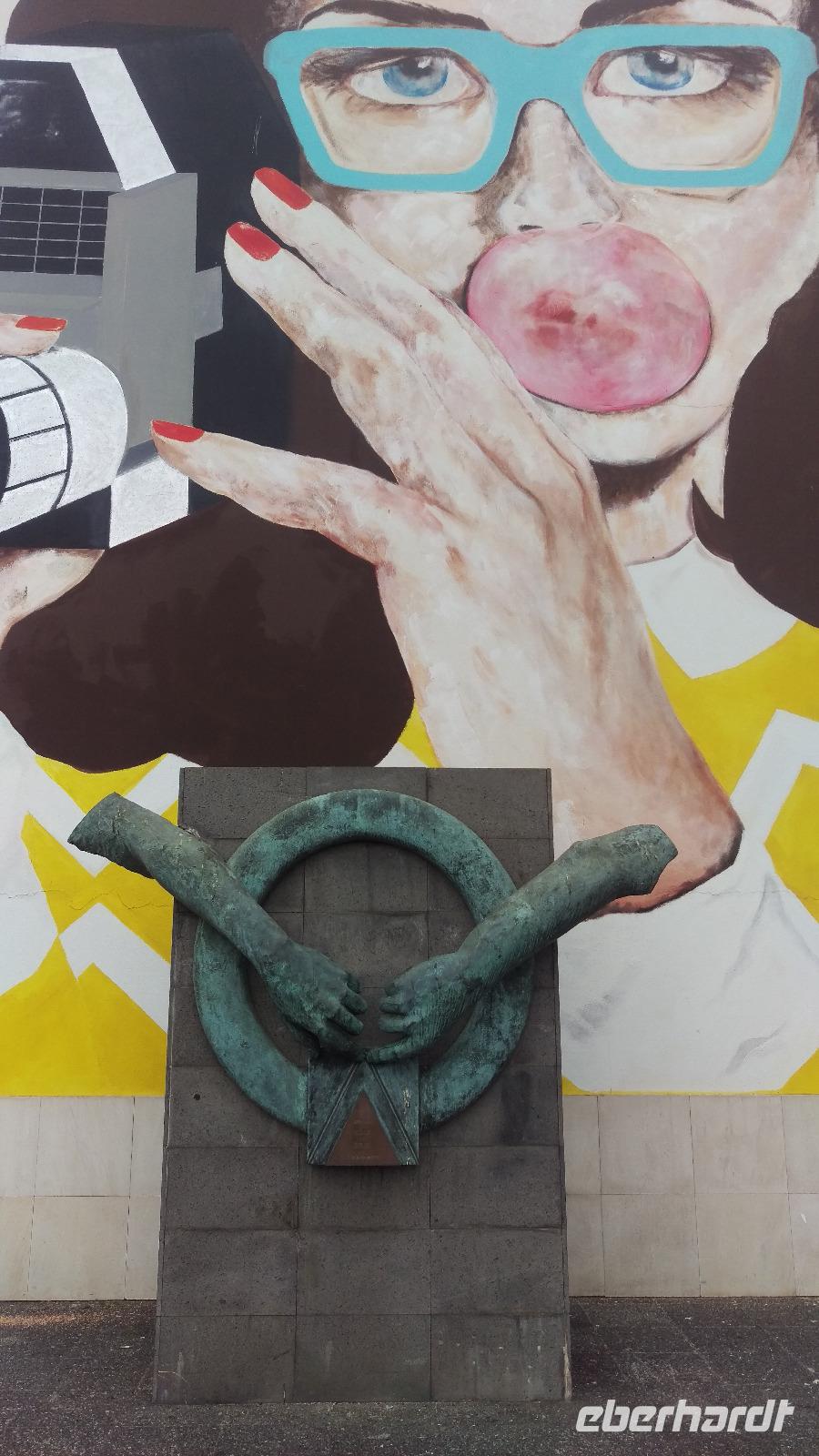 Nach einem ausgiebigen Frühstück starten wir zur nächsten Etappe unserer aufregenden Reise - Die "Mercado dos Lavradores", also die Markthalle und der Bauernmarkt in Funchal. Während der Fahrt erhalten wir von Silvia sehr viele Informationen zu Madeira. Interessant ist vielleicht auch, dass Kaiserin Sissi Madeira oftmals besucht und im vom Schotten William Reid 1894 errichteten pompösen Hotel übernachtet hatte. Im Casino-Park befindet sich ein Denkmal ihr zu Ehren. Zuerst reisen wir nach Funchal zum schönem Botanischen Garten "Jardim Botânico". Wir erfahren weitere Details und Neuigkeiten zu den unterschiedlichsten Pflanzen und Bäumen durch unsere fachkundige Reiseleiterin Silvia. Zu den typischen Pflanzen der Insel zählen die Strelitzia "Strelitziaceae", auch als Paradiesvogelblume bekannt, und natürlich der als "Stolz von Madeira" bekannte Madeira-Natternkopf "Echium candicans". Der Gehweg im Eingangsbereich besteht aus kleinen Kieselsteinen vom Meer. Der Botanische Garten teilt sich in fünf Bereiche. Dazu gehören der Baumgarten, der Loiro Park und die einzelnen Bereiche einheimischer Pflanzen, dann der Sukkulenten sowie ein Teil mit Anbaupflanzen und tropischen Pflanzen. Beispielsweise werden uns Tränendes Herz "Lamprocapnos spectabilis" (oder auch Männerherz), Eisbegonien, Blauregen (oder Wisteria), Madonnen-Lilie "Lilium candidum", Bromelien, Rhododendron, Salbei "Salvia", Löwenschwanz "Leonurus cardiaca" (auch als Echte Herzgespann oder Herzspannkraut bekannt), Frauenschuh, Elchfarn, Wurzelfarn, Cordyline, Engelstrompeten (oder Brugmansia), Honigbaum "Greyia sutherlandii", Elefantenfuß, Falscher Pfefferbaum, Blütenbombenbaum "Dombeya calantha", Palisanderholzbaum "Jacaranda mimosifolia", Fikus, Cassia Stolz von Bolivien, Zigarettenblümchen "Cuphea ignea", Popkornstrauch, Veilchenbaum "Tibouchina urvilleana" und Leberwurstbaum "Kigelia africana"gezeigt. Besonders niedlich schaut die Mickey-Maus-Pflanze "Ochna serrulata" aus! Silvia liebt diese Pflanze einfach, da sie wirklich wie eine kleine Maus ausschaut :-) Außerdem sehen wir einen momentan nicht blühenden Florettseidenbaum "Chorisia speciosa", aus dem Kapok zur Herstellung von Matratzen, Rettungsringen oder Schwimmwesten gewonnen wird. Nach der Führung erkunden wir diesen Garten mit seinen über 2.000 verschiedenen exotischen Pflanzen in diversen Farben auf eigene Faust :-) Dann fahren wir auch schon weiter zur 1940 eröffneten Markthalle "Marcado dos Lavradores". Silvia gibt uns auf den Weg wichtige Informationen zu Blumen, Pflanzen und Früchten. Angekommen bei der Markthalle an der Rua Brigadeiro Oudinot im historischen Zentrum bestaunen wir deren Größe und Vielfältigkeit auf 9.600 Quadratmetern mit überdachtem Verkaufsbereich, offenen Innenhof und beeindruckendem kachelverzierten Eingangsbereich. Hier können wir nicht nur Blumen, Obst und Gemüse kaufen, sondern es gibt vom Fisch über Gewürze, Kleidung, Kork und Souvenirs bis hin zum Schnaps jede Menge zu erwerben :-) Beispielsweise sehen wir wunderschöne Strelitzien, Orchideen, Rosen, Azaleen, Kamelien und Glyzinien. Des Weiteren erkennen wir landestypisches Gemüse und Früchte wie Passiflora und Pipinella wieder. Während unserer Wanderung haben wir prächtige rosa Blüten gesehen, die Blüten der "Passiflora mollissima" (Bananen-Passionsfrucht). Es gibt aber weitere verschiedene Sorten der Passiflora (Passionsblume) wie die "Passiflora edulis" oder auch die "Grenadilla" (Maracuja-Passionsfrucht). Die Händler bieten weiter Yamswurzel, Brasilianische Kirsche, Maracuja-Tomaten, Papaya und Cherimoya an. Nach dem Besuch gibt es zum Probieren für die Gäste getrocknete süße Früchte. Wir lassen uns Hibiscus-Blüten und die leckere Schale der Grapefruit schmecken. Anschließend laufen wir zur Wine Lodge "Blandy's" in Funchal, wo uns Silvia Näheres zur Herstellung des typischen Madeira-Weins erzählt. Der Alkoholgehalt liegt zwischen 17 bis 22 Prozent. Es gibt vier unterschiedliche Rebsorten, welche auf Madeira laut dem Weininstitut "Instituto Do Vinho Da Madeira" als "edel" bezeichnet werden: "Cerceal" (Säurebetont und trocken), "Verdelho" (Halbtrocken), "Boal" (Halbsüß) und "Malvasia" (Süß und üppig). Natürlich probieren wir auch den leckeren Madeira-Wein :-) Unsere Mittagspause verbringen wir im Restaurant "O Solar da Santola" mit tollem Blick auf den Hafen von Funchal. Es gibt die Wahl zwischen köstlichen Thunfisch-Salat, Gemüse-oder Fischsuppe sowie Omelette. Dazu erhalten wir als Vorspeise das uns bereits bekannte Knoblauchbrot, Wein und Wasser zum Trinken sowie einen Nachtisch. Weiterer Programmpunkt des heutigen aufregenden Tages ist die höchste Klippe Europas, nämlich der Miradouro do Cabo Girão. Wir befinden uns 580 Meter über den Meeresspiegel und durch die Glasscheiben des Skywalks können wir in die Tiefe schauen. Letztendlich besuchen wir gegen 15.30 Uhr das Fischerdörfchen Câmara de Lobos mit seinen vielen bunten Booten. Übersetzt bedeutet der Ortsname "Höhle der Mönchsrobben" und den Namen hat das Dorf von seinen Entdeckern João Gonçalves Zarco und Tristão Vaz Teixeira erhalten. Sie nannten diesen Ort Câmara de Lobos aufgrund der Gestaltung der Bucht, in welcher er liegt, und den zu jener Zeit in Vielzahl lebenden "lobos", also den Seelöwen. Heute sind kaum noch solche Robben zu sehen. Berühmtheit erlangte dieser Ort auch, da Winston Churchill ihn auf einem Gemälde verewigen ließ. Eine Gedenktafel im Ortskern erinnert an dieses Ereignis. Ebenfalls interessant könnte die Tatsache sein, dass Christoph Columbus den Nachbau der Santa Maria hier angefertigt hatte. Das Örtchen ist aufgrund des Festes "Festas de São Pedro 2016" heute bunt geschmückt, besonders interessant finden wir die Dekoration aus grünen zerschnittenen Plastikflaschen in gekringelter Form oder Waschmaschinentrommeln an einem Kabel zwischen den Häusern befestigt als Girlanden :-) Wir besichtigen die kleine Seefahrerkapelle Nossa Senho