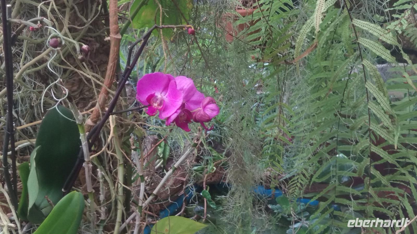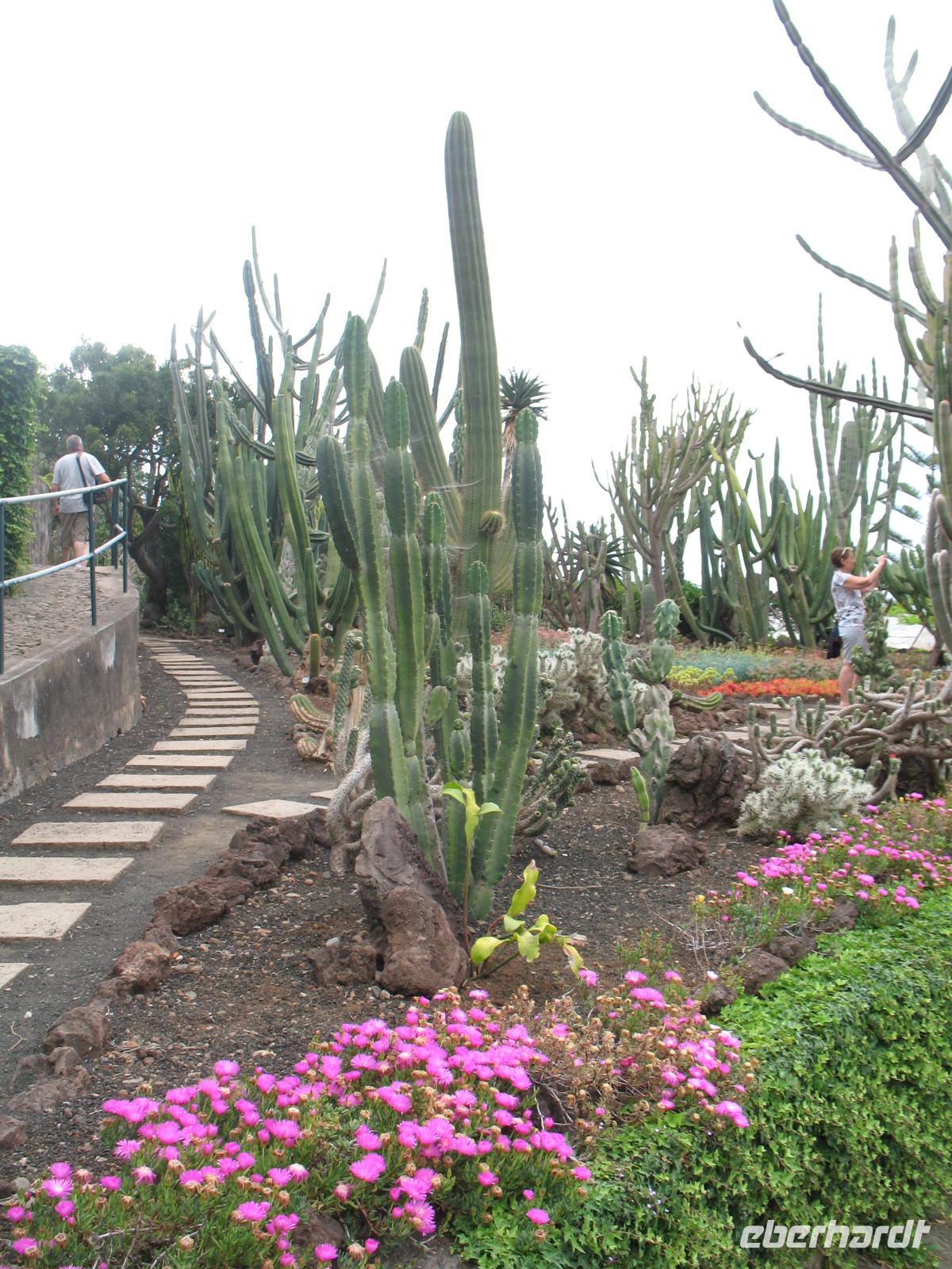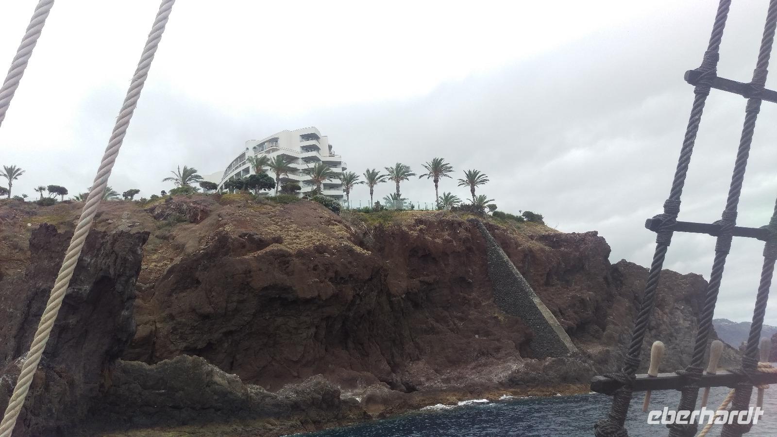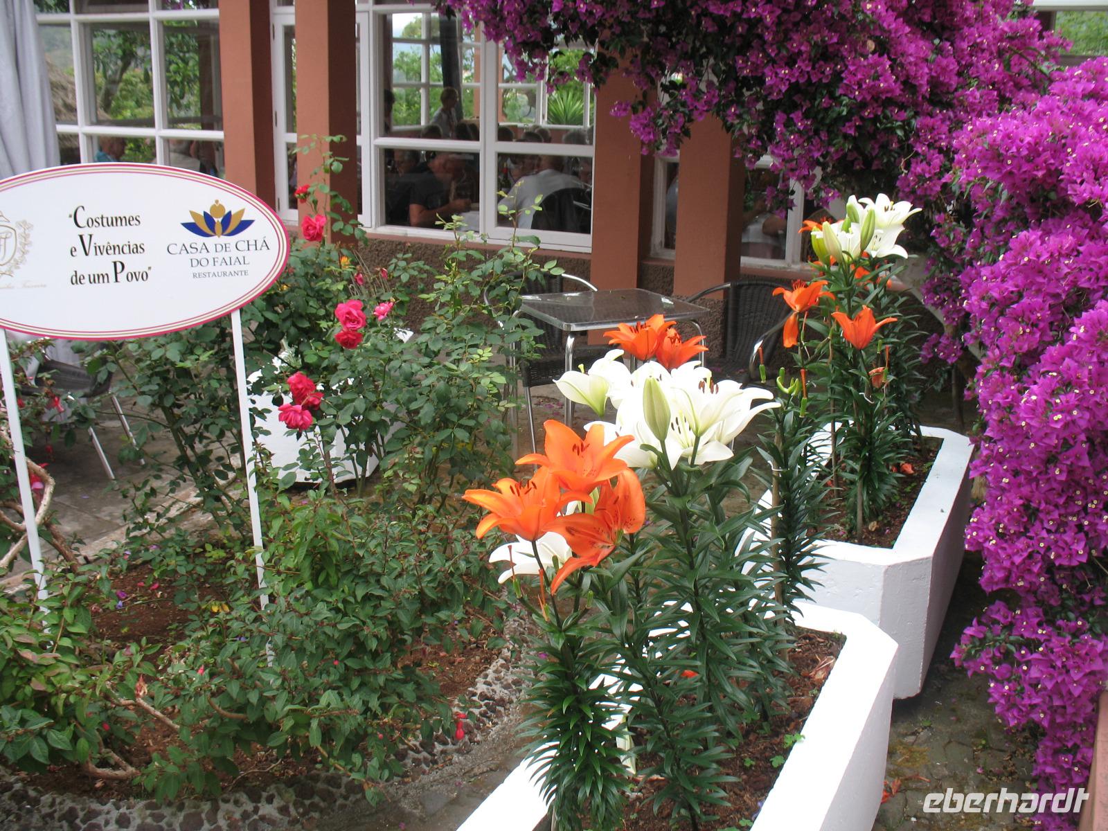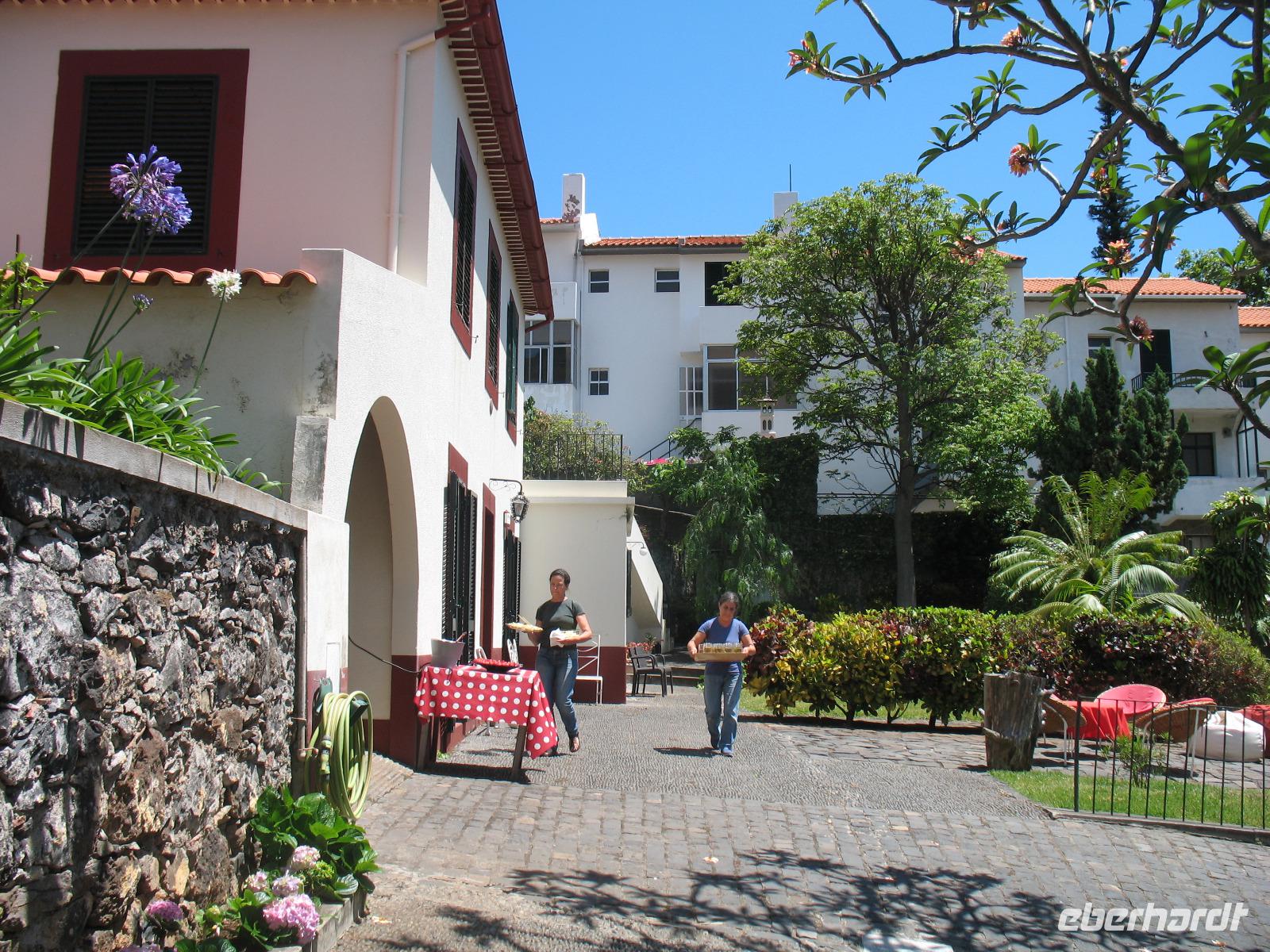 Kaum zu glauben, aber wir sind schon seit sechs Tagen auf dieser atemberaubend schönen Insel unterwegs und haben bereits viele Highlights erlebt. Heute führt die Reise einen Großteil der Gäste zum fakultativen Halbtagsausflug "Gästen Madeiras" mit dem Palheiro Garden der englischen Familie Brandy und dem Orchideengarten "Jardim Orquídea" in Funchal. Zuerst besichtigen wir den überwältigenden Palheiro Gardens auf einer Höhe von 550 Metern mit sachkundiger Führung unserer tollen örtlichen Reiseleiterin Silvia. Wir sind ganz begeistert von ihrem ausgezeichneten botanischen Fachwissen. Sie erzählt uns, dass sie sich schon seit Kindestagen für Botanik interessiert, sich aus persönlicher Neugier und durch ihre Mama besonders für Pflanzen, Blumen und Früchte interessiert. Das bleibt uns natürlich nicht verborgen und so ist sie wahrlich eine großartige Bereicherung auf unserer Reise. Wir sehen abermals sehr viele wunderschöne Pflanzen und Bäume. Gegründet wurde der Palheiro Garden vor circa 200 Jahren von der adligen Familie Carvalhal, welche 1801 mit der Bepflanzung begann. Der Übergang des luxuriösen Anwesens mit Garten erfolgte 1885 an die Weinhändlerfamilie Blandy. Im Garten sind mehrere Themengärten wie der Rosengarten, der Hauptgarten, der versunkene Garten und Damen-Garten mit Teehaus zu finden. Wir können Margeritenbäume, Proteas (Zuckerbüsche) aus Südafrika, Magnolien, Hortensien, Fuchsien, Hibiscus, Karollenfuchsie, Agaven, Aloe Vera, Kamelien und herrlich duftende Rosen betrachten. Weiter sehen wir Atlas-Zedern, Mammutbäume, Stinklorbeer "Ocotea foetens", Ginko, einen nicht blühenden Taschentuchbaum "Davidia involucrata", gelber Blutwurz "Potentilla erecta", Francisia, Brunfelsia, eine brasilianische Araukarie, einen Südinsel-Eisenholzbaum und zuletzt noch einen "Katzenohrenbaum". Es regnet zwar zwischendurch ein klein wenig, aber davon lassen wir uns nicht die Laune verderben :-) Anschließend fahren wir zum zweiten Programmpunkt des heutigen Tages, nämlich den Orchideengarten. Wir erhalten zuerst wichtige und spannende Informationen durch den Gründer der Farm und schauen uns dann individuell die vielen verschiedenen Orchideen-Arten, Anthurien und Bromelien an. Gegen 12.30 Uhr fahren wir weiter zum Hafen von Funchal. Während die meisten Gäste mit dem Bus zum Hotel zurückfahren, wollen die anderen Gäste noch ein wenig durch Funchal spazieren. Funchal kann mit Fenchel übersetzt werden. Natürlich schauen wir uns auch die herrlich malerisch gestalteten bunten Türen in den engen Gassen in der Altstadt in der Rua de Santa Maria nahe der Seilbahn und des Busbahnhofes an. Bevor wir uns eine tolle Fahrt mit der Santa Maria gönnen, genießen wir ein leckeres kleines Mittagessen. Um 15.00 Uhr startet unsere 3-stündige Tour auf dem offenen Meer. Zuerst beobachten wir Delphine und anschließend fahren wir bis unterhalb des Cabo Girão, wo wir die Gelegenheit haben, schwimmen zu gehen. Die Badesachen haben wir aber nicht eingepackt, das überlassen wir dann doch den anderen wagemutigen Gästen :-) Wir erhalten alle ein kleines Glas Madeira-Wein und ein Stück Honigkuchen. Dann geht es auch schon zurück, wesentlich ruhiger und entspannter als die Hinfahrt!!! Gegen 18.00 Uhr sind wir wieder im Hafen, sagen "Tschüss!" zur Santa Maria und fahren mit dem Taxi eine eher schnelle Fahrt zum Hotel zurück. Eine halbe Stunde später erreichen wir unser Ziel und bis zum Abendessen entspannen wir im Hotel. Heute Abend findet unser Spezialitäten-Abendessen im "Restaurante & Currascaria A central" in Caniço statt. Eine typische Landesspeise der Insel ist der bekannte Fleischspieß "Espetada" und auch selbstgebackenes Knoblauchbrot. Als Aperitif trinken wir ein weiteres Mal den charakteristischen Madeira-Wein und zum Nachtisch erhalten wir lecker gegrillte Ananas. Das Essen ist wirklich vorzüglich. Gegen 22.00 Uhr laufen wir kugelrund und glücklich zum Hotel zurück und lassen die Eindrücke des Tages Revue passieren :-)