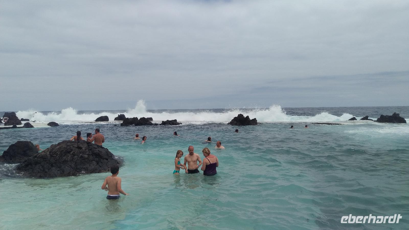 Gutgelaunt starten wir mit einem herzhaften oder süßen Frühstück in den Tag. Anschließend bricht eine Großteil unserer Reisegruppe zur fakultativen rund 6,5 Kilometer langen Levada-Wanderung von Maroços auf. Die anderen Reisegäste erkunden individuell die Besonderheiten der Insel :-) Die Wandergruppe wird von Silvia und Anastácio abgeholt und wir fahren zu unserem Startpunkt. Bei angenehm warmen Temperaturen wandern wir rund zwei Stunden durch die wunderschöne Natur Madeiras. Silvia erläutert die Funktion und Bedeutung der künstlich angelegten Levadas. Dann fahren wir zum Restaurant "Tasquinha do Pescador" in Machico, wo wir uns abermals ein leckeres Menü oder einfach nur ein Sandwich gönnen. Im Anschluss an die Mittagspause nutzen einige Gäste das traumhafte Wetter für einen Badeaufenthalt am Strand von Machico. Bei heiterem Sonnenschein genießen wir es, entweder im Meer zu schwimmen, die Füße in den warmen Sand einzutauchen oder einfach die Seele baumeln zu lassen :-) Dann gönnen wir uns noch einen Kaffee in der Poncha Bar. Eigentlich wollen wir gern einen Cappuchino trinken, aber den gibt es in dieser Bar wohl nur als Pulver zum Aufgießen mit heißem Wasser. Da ist uns der Kaffee schon lieber :-) Gegen 16.30 Uhr fahren wir rund eine halbe Stunde mit dem öffentlichen Bus zum Hotel zurück. Der restliche Nachmittag steht uns zur freien Verfügung. Wir entspannen und bräunen uns am Hotelpool, gönnen uns einen Kaffee und leckeren Kuchen in der Bäckerei & Café direkt beim Hotel oder spazieren und erkunden die Hotelanlage und die herrliche Gegend. Gegen 18.30 Uhr sehen wir uns alle zum Buffet-Abendessen im Hotel-Restaurant. Die Auswahl und das Essen sind wieder sehr köstlich. Im Anschluss findet sich der Großteil der Gäste zum Fußball schauen in der Hotelbar "The Globe Evening Bar" ein. Heute ist Europameister-Viertelfinale zwischen Deutschland und Italien und es soll ein echter Fußball-Krimi werden. Am Ende stehen wir als die glücklichen Gewinner des Matches da, wir sind einfach nur happy :-) Und ein weiterer wunderschöner Tag neigt sich zu Ende!