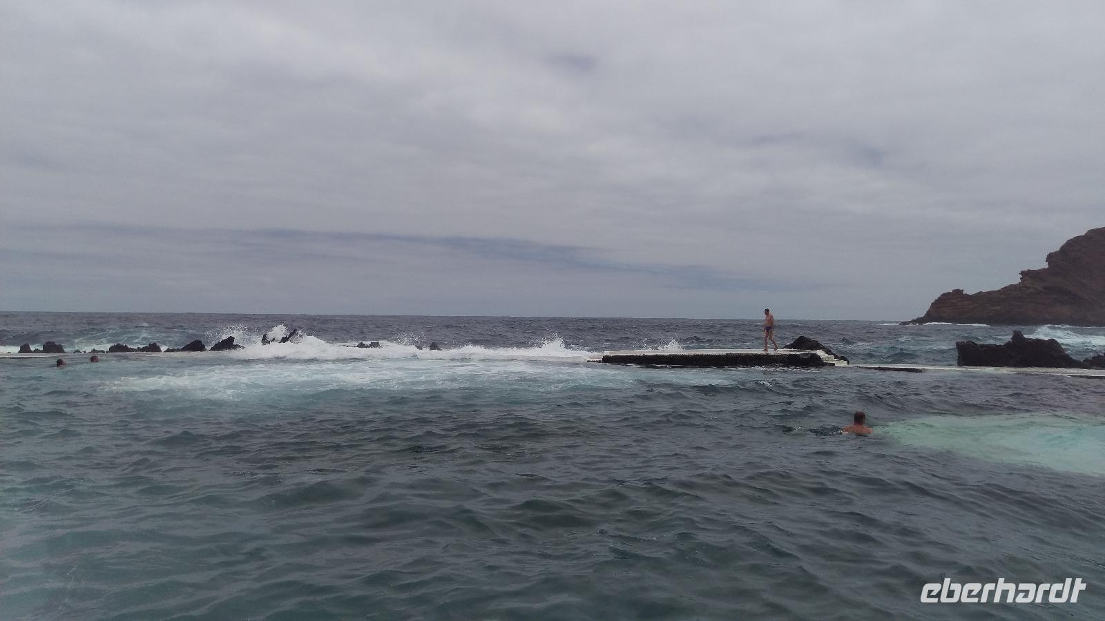 Unsere Wetteraussichten des heutigen Tages schauen wieder sehr gut aus :-) Auf unserem heutigem Reiseplan stehen die Ortschaften Ribeira Brava, Porto Moniz und São Vicente. Zuerst besuchen wir Ribeira Brava und schauen uns vor allem die schöne Kirche an. Dann fahren wir über Ponta do Sol und Arco da Calheta auf die Paúl da Serra. Und dann startet sie auch schon, unsere kleine Wanderung Levada do Paul. Von weiten können wir die Christus-Statue "Christo Rei" erblicken. Wir genießen bei strahlendem Sonnenschein die traumhafte Natur, eine wirklich wunderschöne letzte Wanderung unserer schönen Reise. Im Anschluss fahren wir nach Porto Moniz, wo wir auch unsere Mittagspause verbringen werden. Diese Ortschaft wurde nach dem portugiesischen Adligen Francisco Moniz benannt. Während einige Reisegäste den Ort erkunden, gönnen sich die anderen Gäste eine Abkühlung in den für diesen Ort bekannten Meeresschwimmbecken "Piscinas Naturais do Porto Moniz". Diese Becken werden von bizarren Felsformationen aus Vulkangestein umrahmt. Dann fahren wir entlang der Nordküste über Seixal nach São Vicente. Wir legen in Seixal eine Zwischenstopp bei einem Souvenirladen ein, wo wir auf Empfehlung von Silvia schöne Korkwaren erwerben können. In São Vicente besuchen wir die kleine barocke Pfarrkirche und begeben uns auf einen kurzen Rundgang durch den Ort. Dann geht es weiter über den Encumeada-Pass zu einer kleinen Kneipe, wo wir uns einen Poncha oder auch einen Nikita zum Abschluss unserer Reise gönnen werden. In der Bar "É Prá Poncha" trinken wir das zweite typische Getränk auf Madeira, einen "Nikita". Dieses Getränk besteht aus Weißwein, Bier, Vanilleeis, Ananas und Zucker. Es wurde erstmals in Sunny Bar in diesem Ort 1986 hergestellt. Zudem probieren wir den leckeren Lorbeerblütenhonig und kaufen vielleicht auch ein Glas als Andenken für unsere geliebten Daheimgebliebenen. Dann fahren wir schon zum Hotel zurück, welches wir gegen 17.15 Uhr erreichen. Wir verabschieden uns herzlich von Silvia und Anastácio, wir bedanken uns für die tolle Reise und auch die vielen kleinen Zwischenstopps und schönen Umwege :-) Wir werden beide zwar am nächsten Tag nochmals sehen, aber doppelt hält ja bekanntlich besser! Im Hotel entspannen wir bis zum Abendessen. Wir treffen uns wie gewohnt im Eingangsbereich und laufen ein weiteres Mal zum Restaurant "A Lareira". Das Essen schmeckt uns abermals sehr gut, obwohl wir dieses Mal ein wenig länger darauf warten müssen. Der Großteil der Gruppe gönnt sich nochmal den wohlschmeckenden schwarzen Degenfisch "Espada" :-) Nach dem Abendessen begeben sich einige Gäste noch zum Supermarkt, um Tomaten-Marmelade und Tomaten-Chutney als Souvenir zu kaufen. Unglücklicherweise sind die "guten" Sorten nicht vorhanden, so dass wir Silvia bitten, uns die leckeren landestypischen Sorten mitzubringen. Zum Abschied unserer Reise treffen wir uns wieder auf der Hotelterrasse und lassen die Highlights und wunderbaren Erlebnisse bei Madeira-Wein, Rotwein, Wasser, Bonbons, getrockneten süßen Früchten und Erdnüssen Revue passieren. Wir können gar nicht glauben, dass wir morgen dieses wunderschöne Inselparadies bereits wieder verlassen werden!