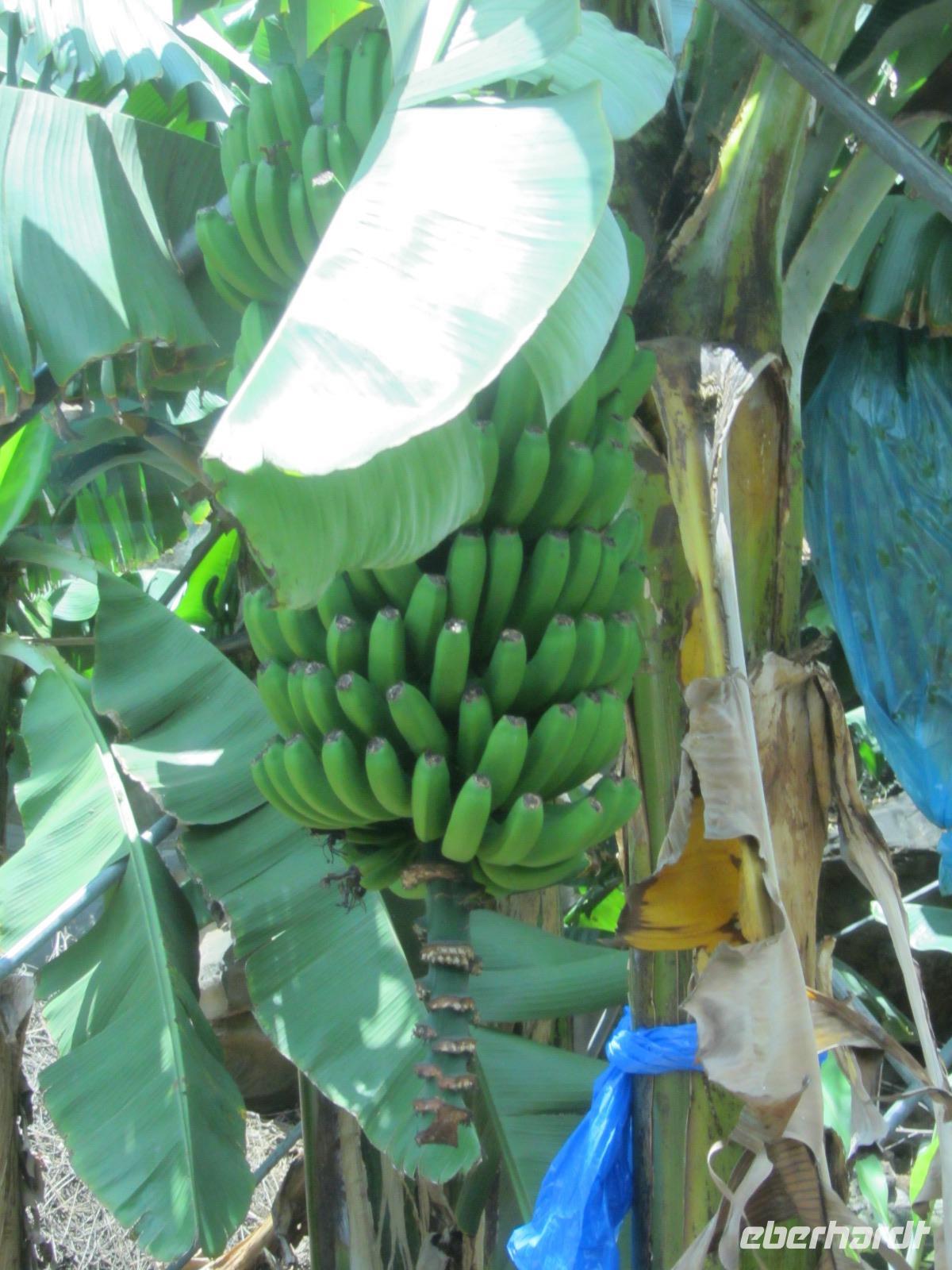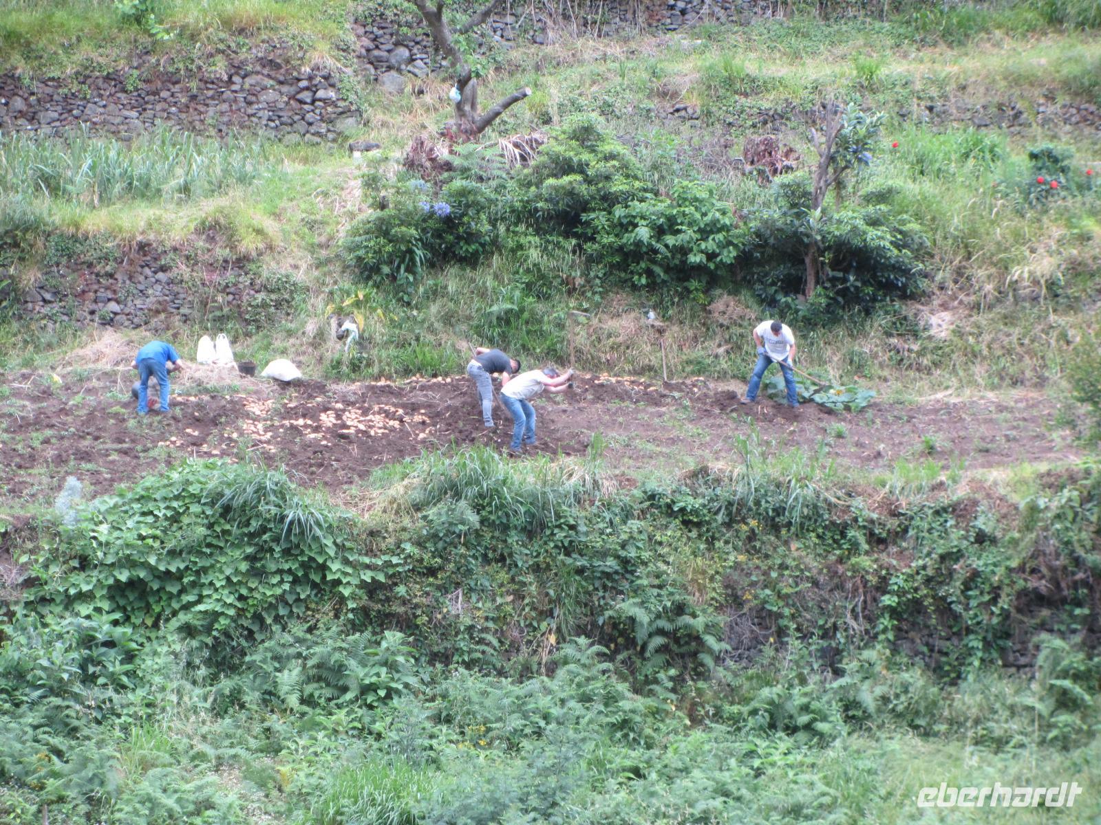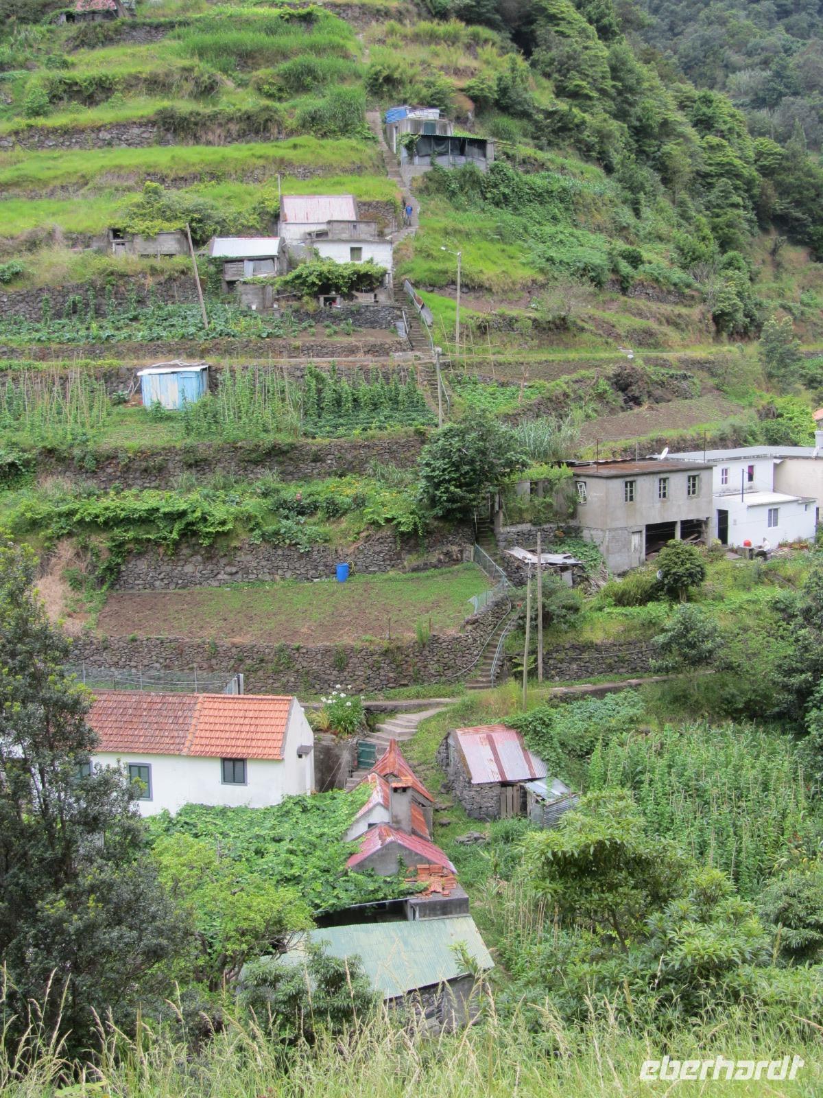 Unsere sehr leicht zu bewältigende Wanderung entlag der Levada führt uns durch zahlreiche Täler und "Bergdörfer", in denen die Lokalbevölkerung auf den zahlreichen Terassen Obst und Gemüse anbauen. Die Bewohner entlang des Weges sind extrem freundlich und so spendiert uns ein Madeirenser sogar Bananen für die ganze Gruppe - sie schmecken hervorrangend!