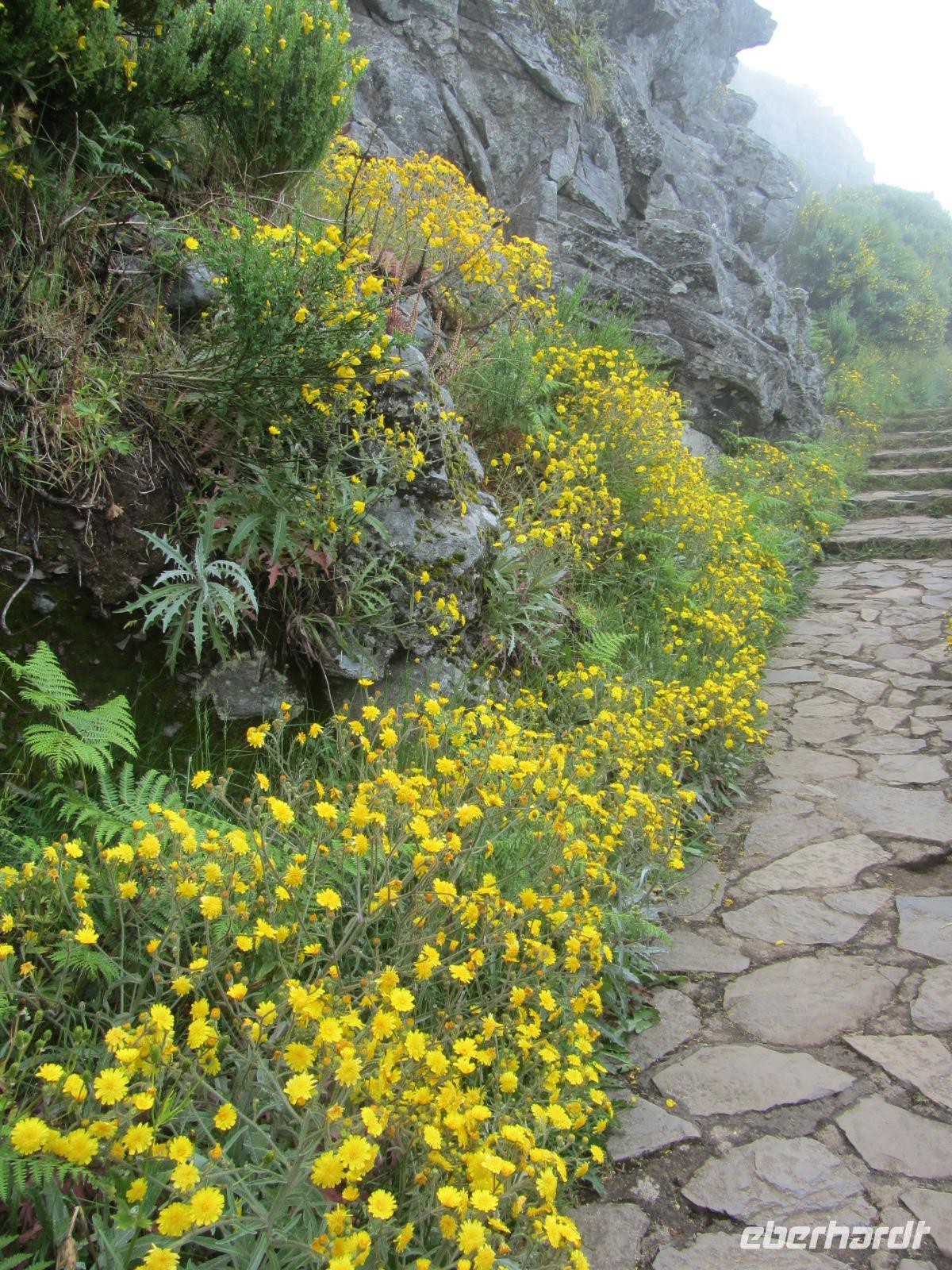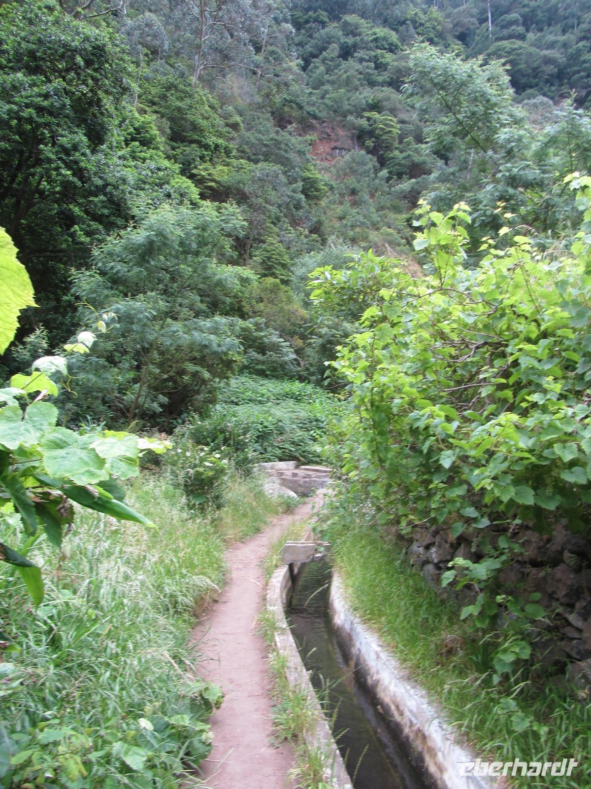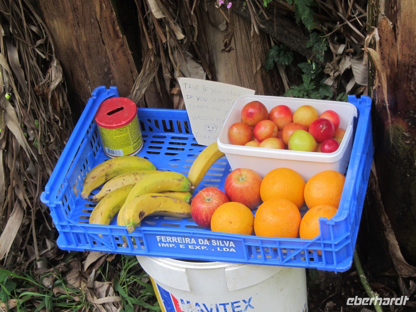 Unsere sehr leicht zu bewältigende Wanderung entlag der Levada führt uns durch zahlreiche Täler und "Bergdörfer", in denen die Lokalbevölkerung auf den zahlreichen Terassen Obst und Gemüse anbauen. Die Bewohner entlang des Weges sind extrem freundlich und so spendiert uns ein Madeirenser sogar Bananen für die ganze Gruppe - sie schmecken hervorrangend!